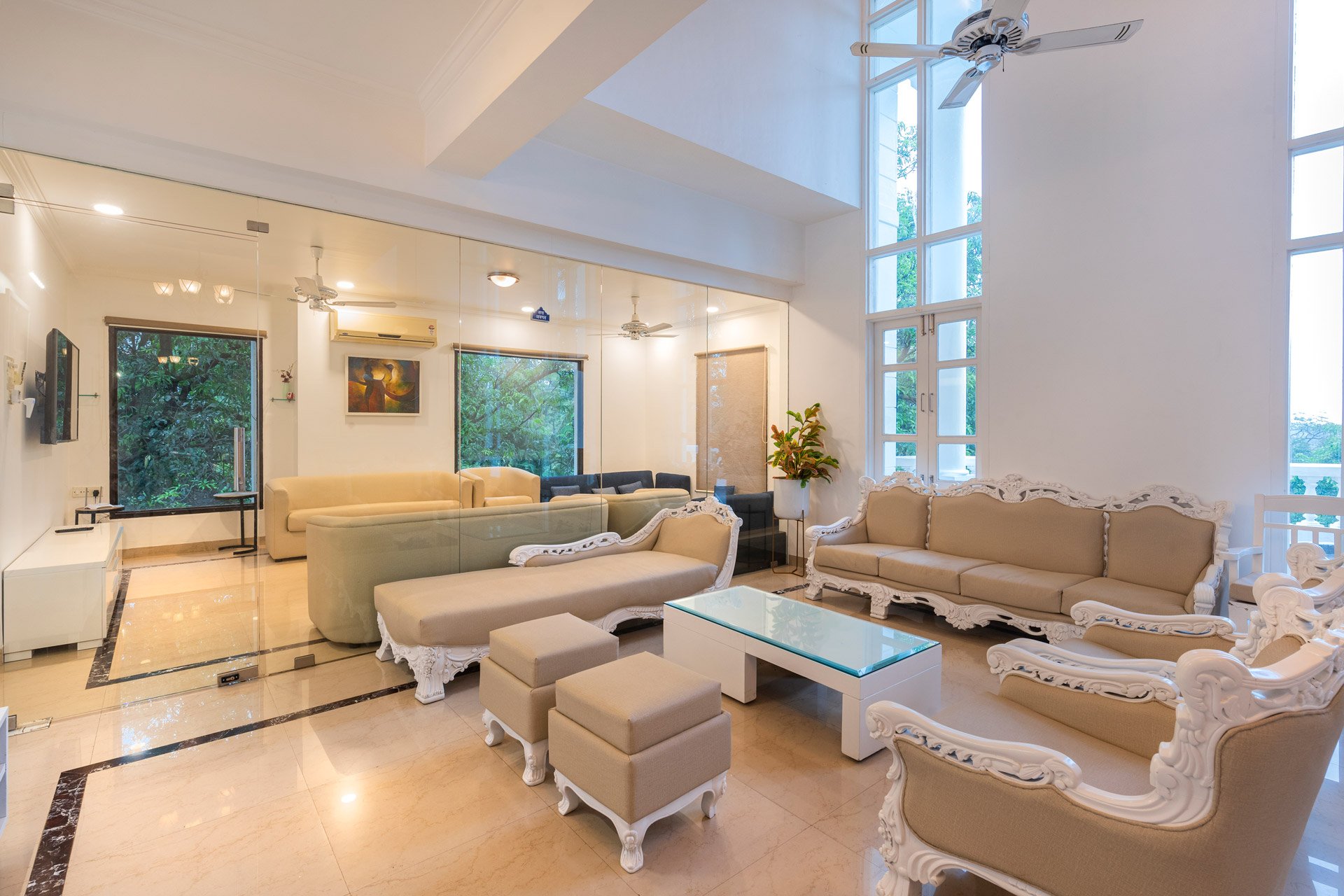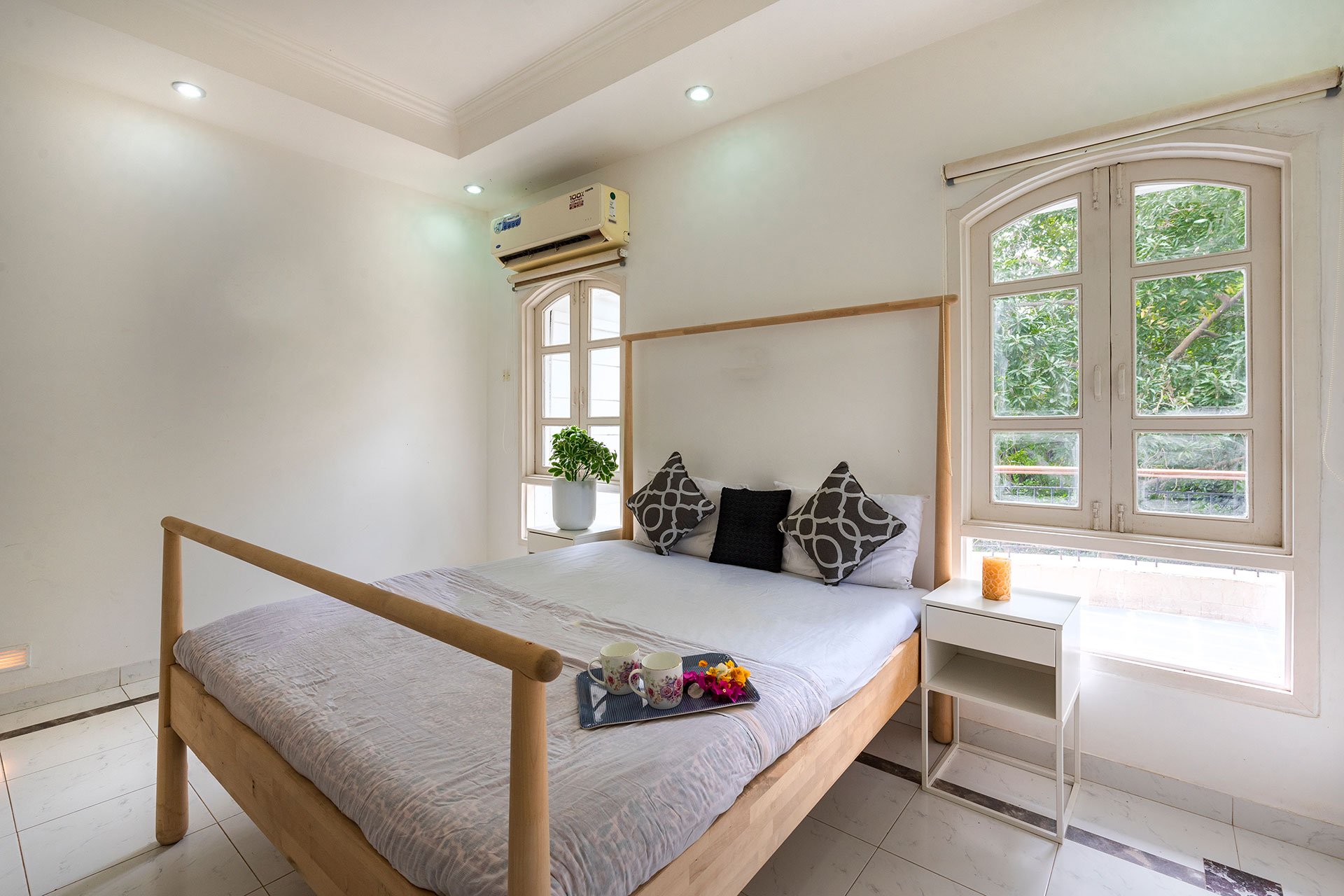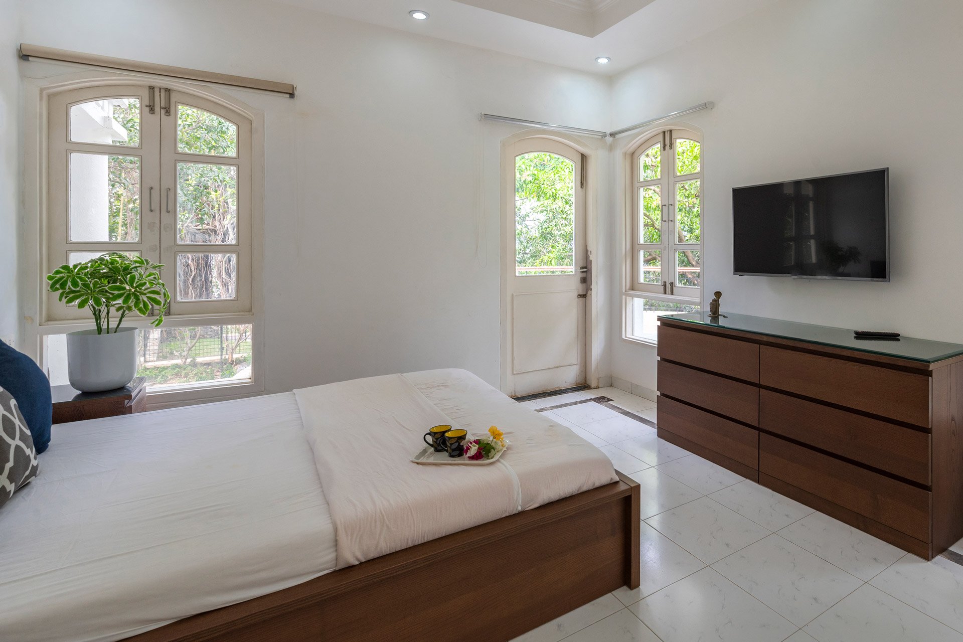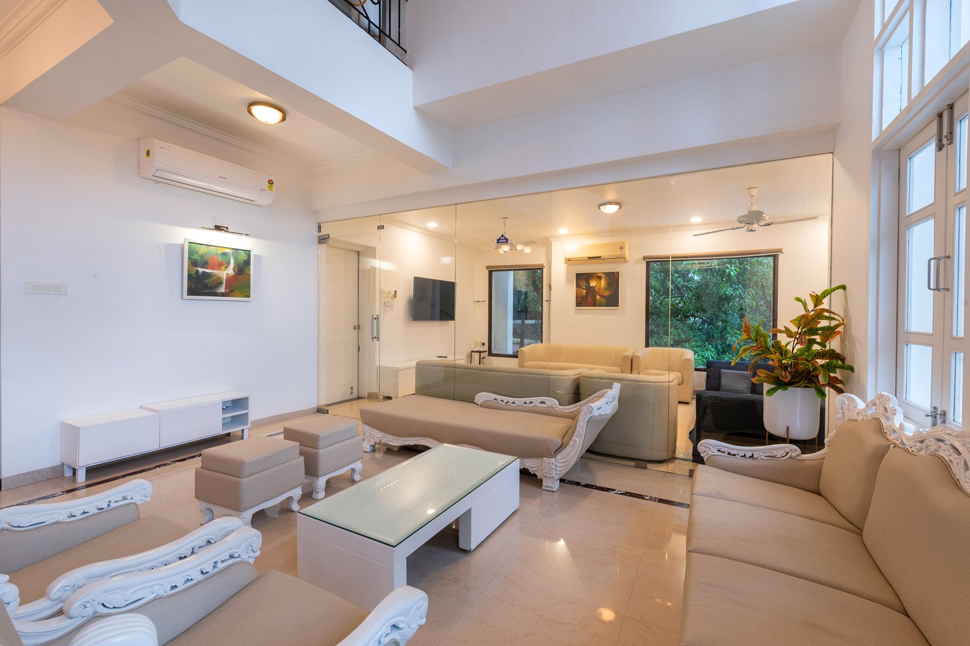Ivory Crest is a palatial 7BHK villa that exudes grandeur with its tall pillars, spacious interiors and roomy corridors. What will particularly catch your attention is the massive private pool with a waterfall, which is perfect for family stays with kids. The hall and lawn area has ample seating arrangement for a large group gathering. There is a children play area at the back lawn, overlooking the lake, which comprises swings. And, don’t miss the banyan tree for a great photo-op!