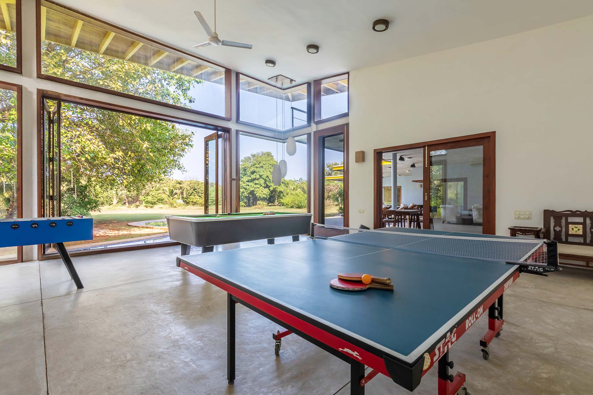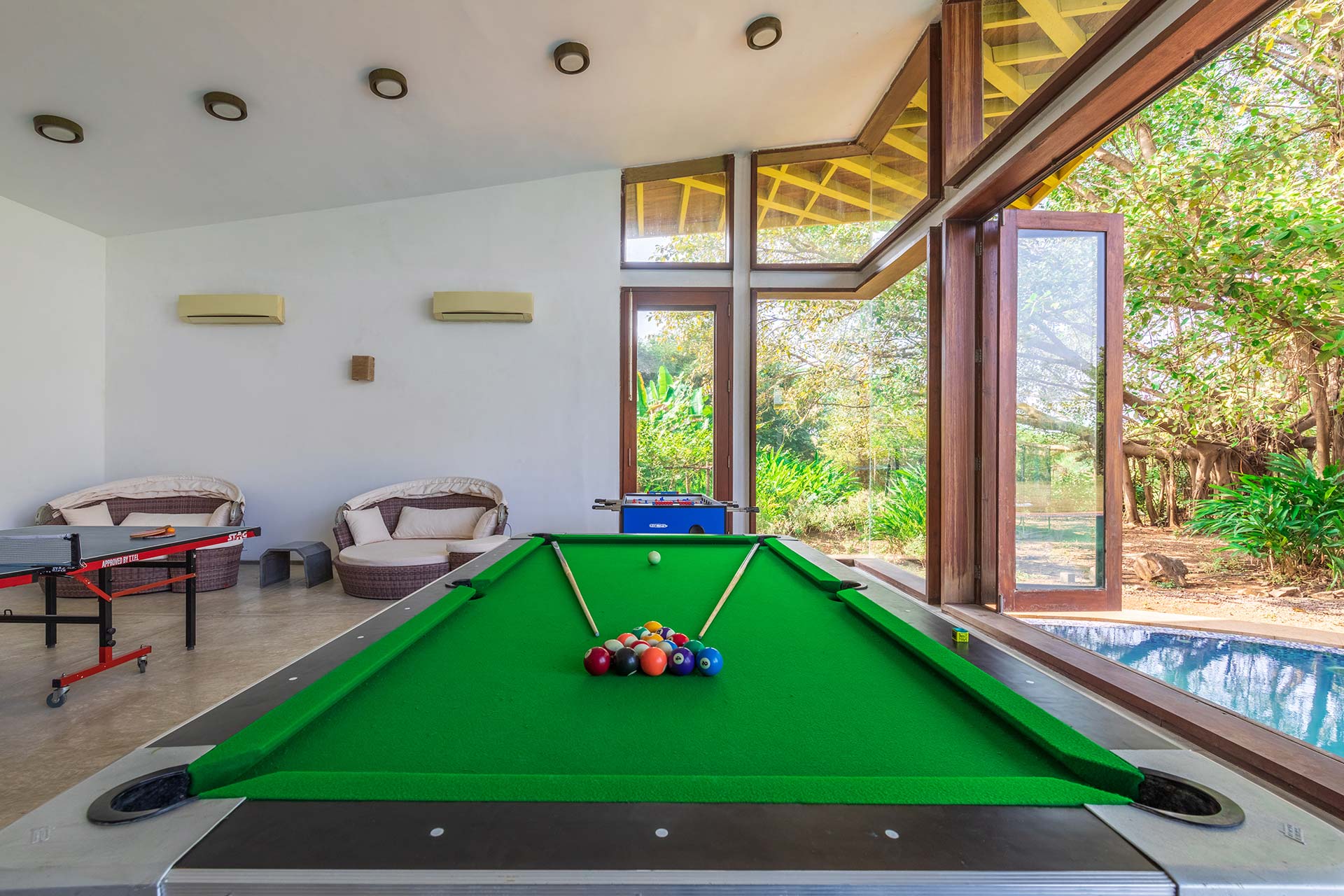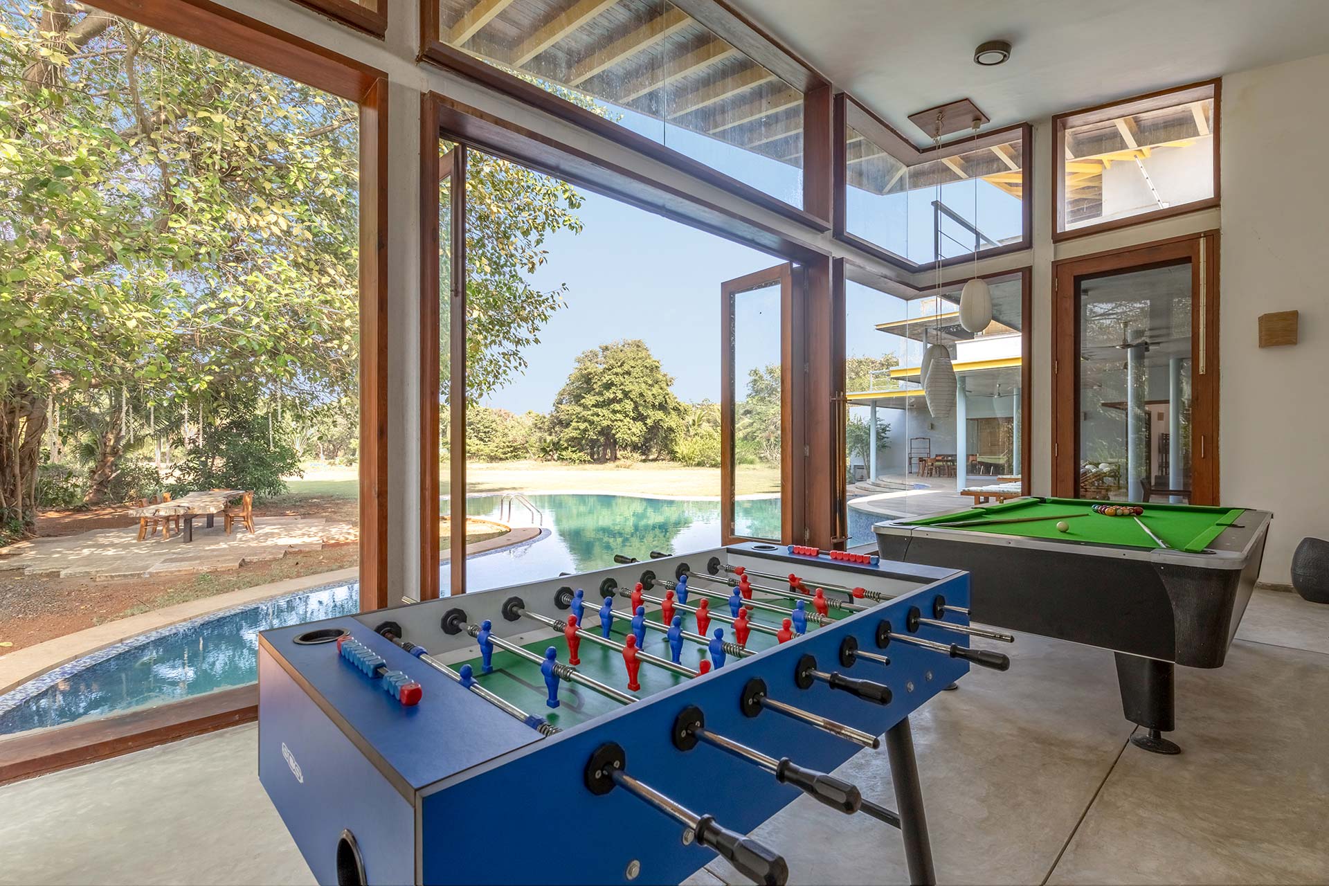 Games room that is equipped with a snooker table and foosball to keep the young and old entertained