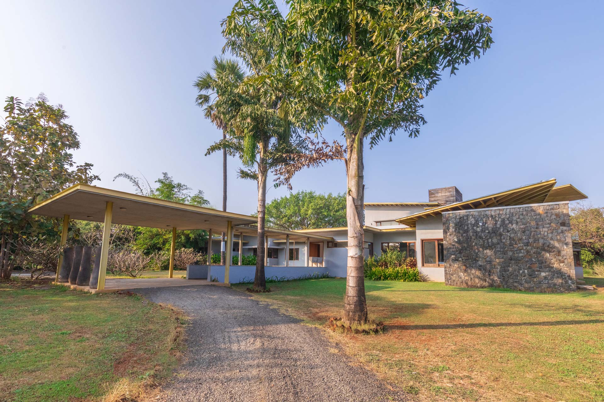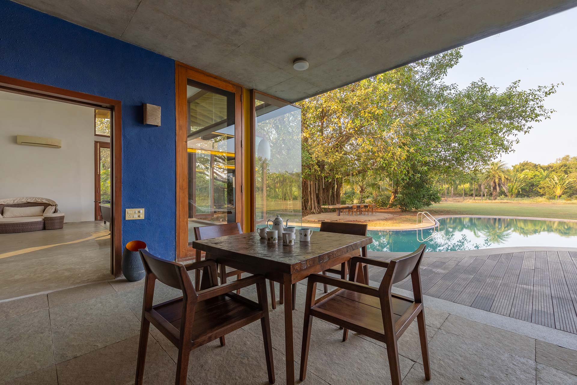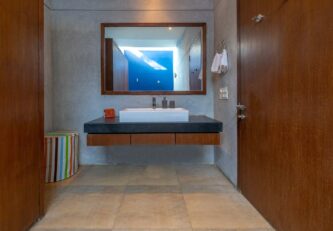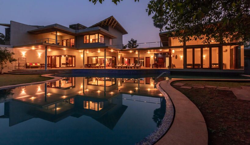 The house invites you to enjoy the joy of spending time with one another in a joyful environment. This property has an understated luxury that feels uplifting, whether you’re enjoying your morning coffee on the verandah, lounging by the pool, or entertaining your family there. This delightful property is the ideal break from the mundane routine and would make for a sun-kissed break in the coastal town of Alibaug.