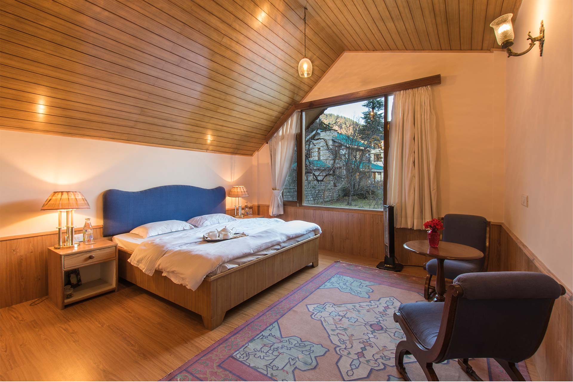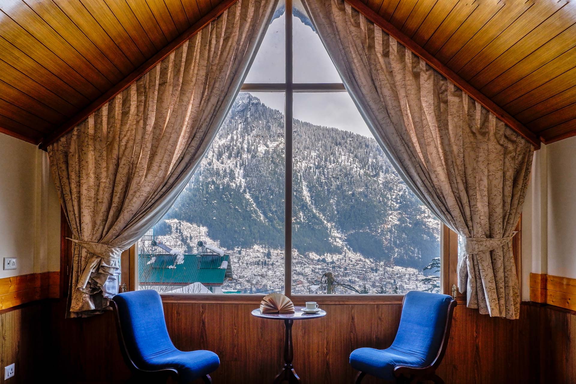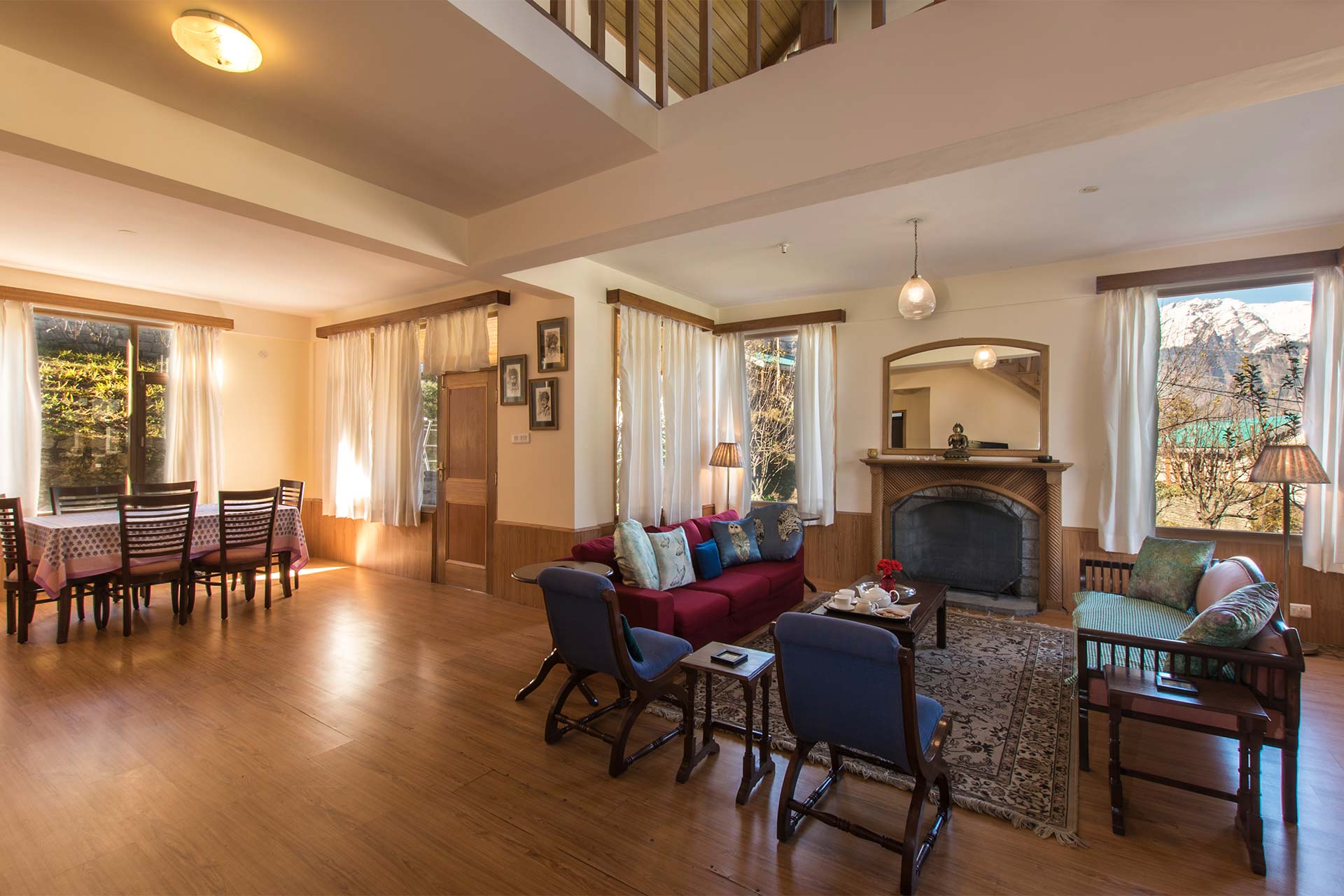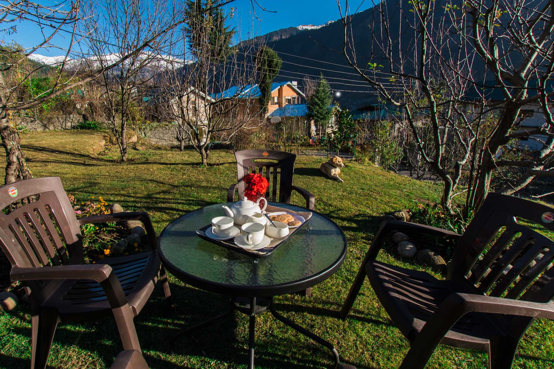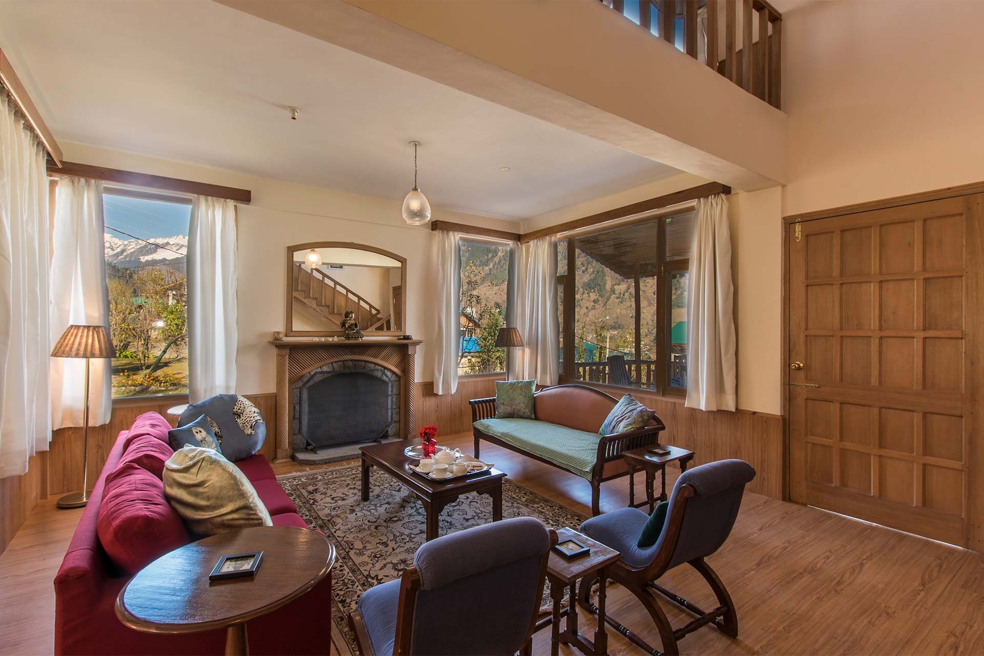 If you’re seeking peace and adventure, you’ve found yourself the perfect den – Picturesquely nestled 1000 meters above the colourful streets of Manali, Jodhpur House boasts of a vantage point view overlooking snowcapped Pir Panjal mountains in the front and the towering lush green Dolhadhars as its backyard along with an apple orchard lawn.