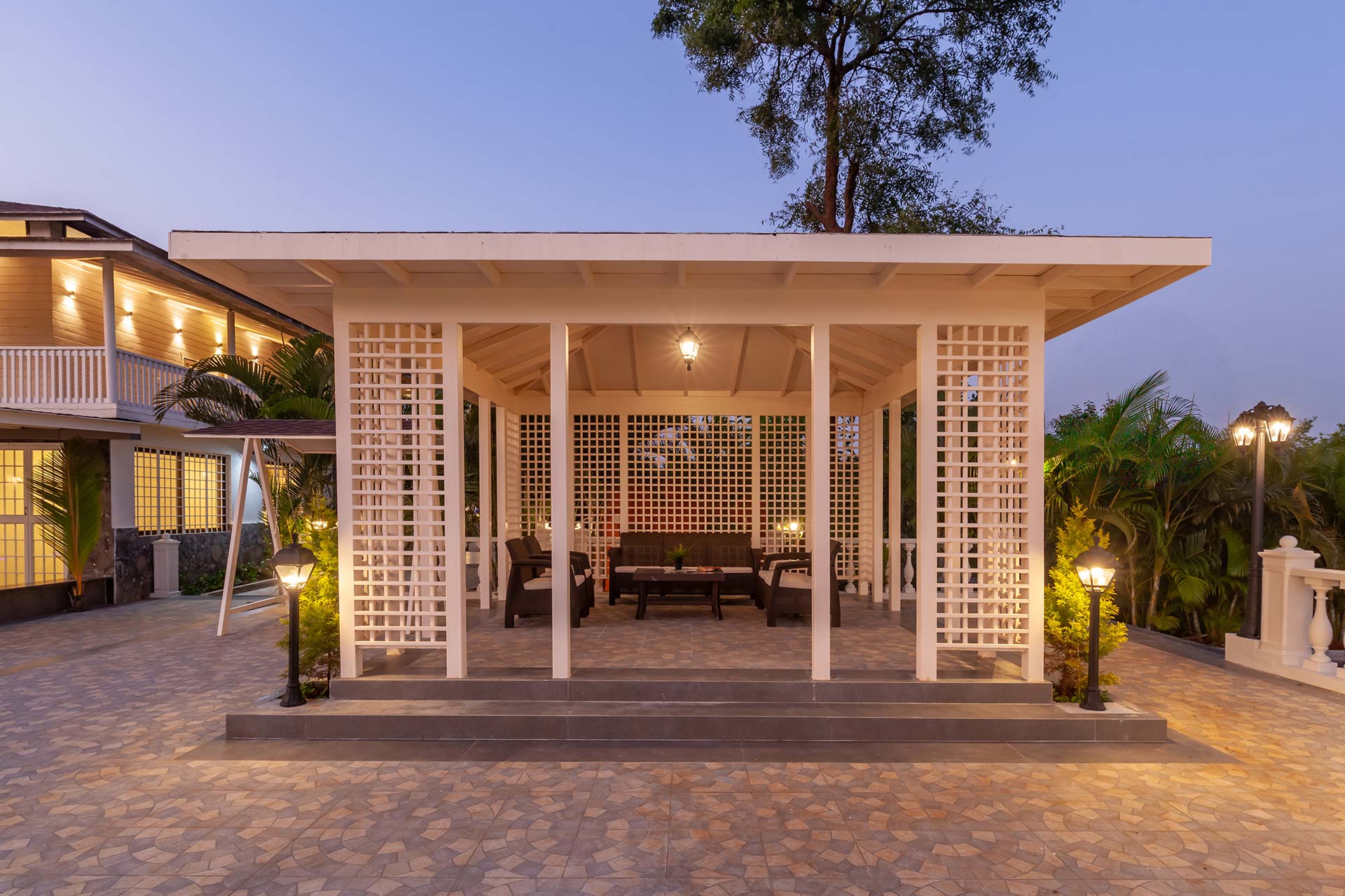 Within the property, guests may take a peaceful walk, light up a cosy bonfire or relish a delicious & hearty barbeque in the spacious green lawn. There is a seating space set under the canopy of lush trees and gazebos where guests can sip on to their favourite beverages or enjoy an al-fresco meal by the pool.