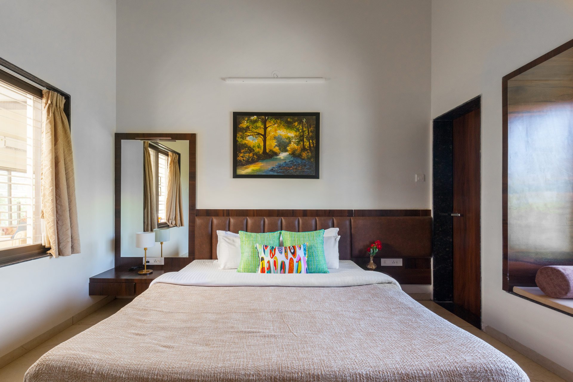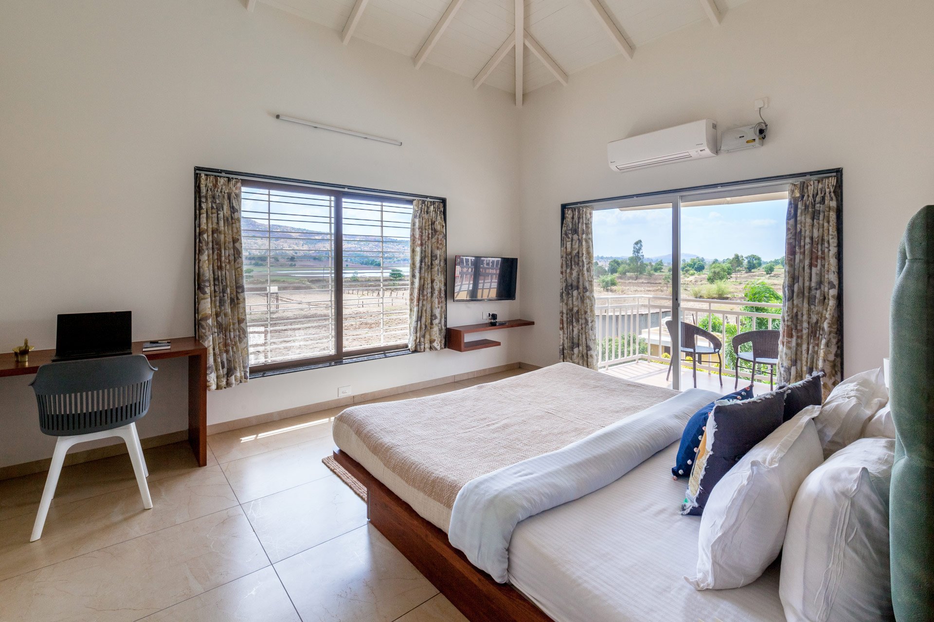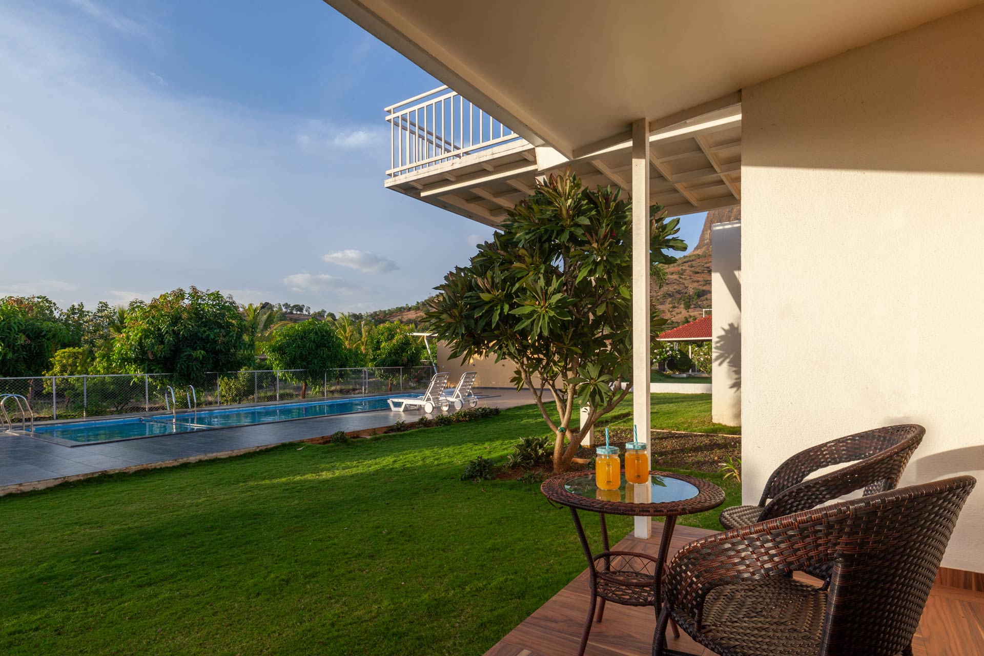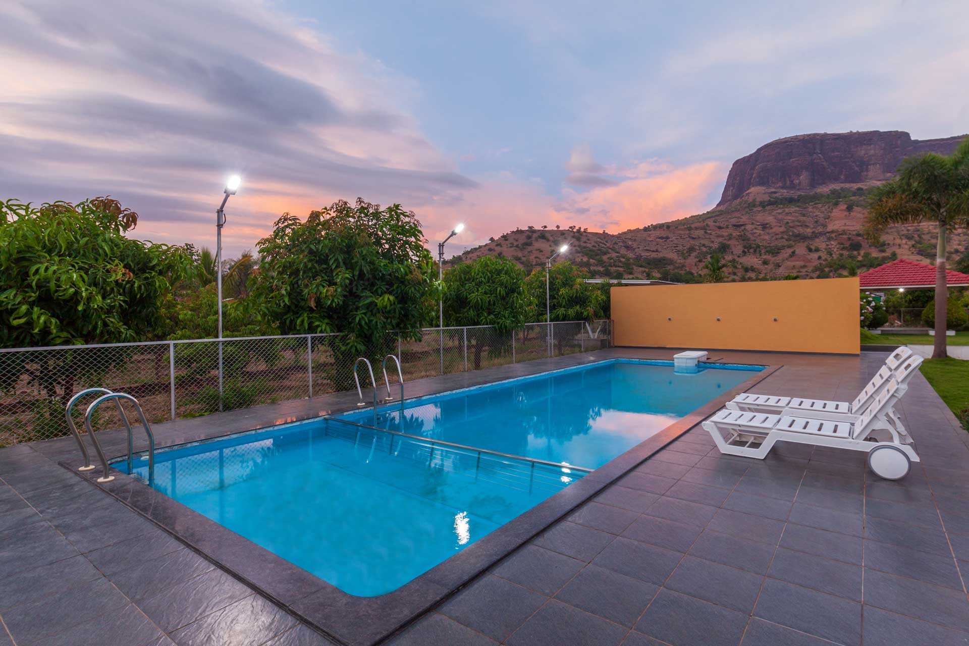 Relish the peaceful sensations that greet you at Lakeside Summers, a beautiful house tucked away in Nashik’s perpetually green locale. This house is a tranquil retreat from the busy city, with a wide range of thoughtfully chosen amenities that guarantee you’ll have a great time. This gorgeous abode appears to have come straight out of a film because of the pure lake’s blue and iridescent colours, as well as the hills and farms that surround it. So, while taking a relaxing plunge in the private pool or having a fantastic time chatting with your friends in the gazebo, you can also catch a glimpse of the starry sky.