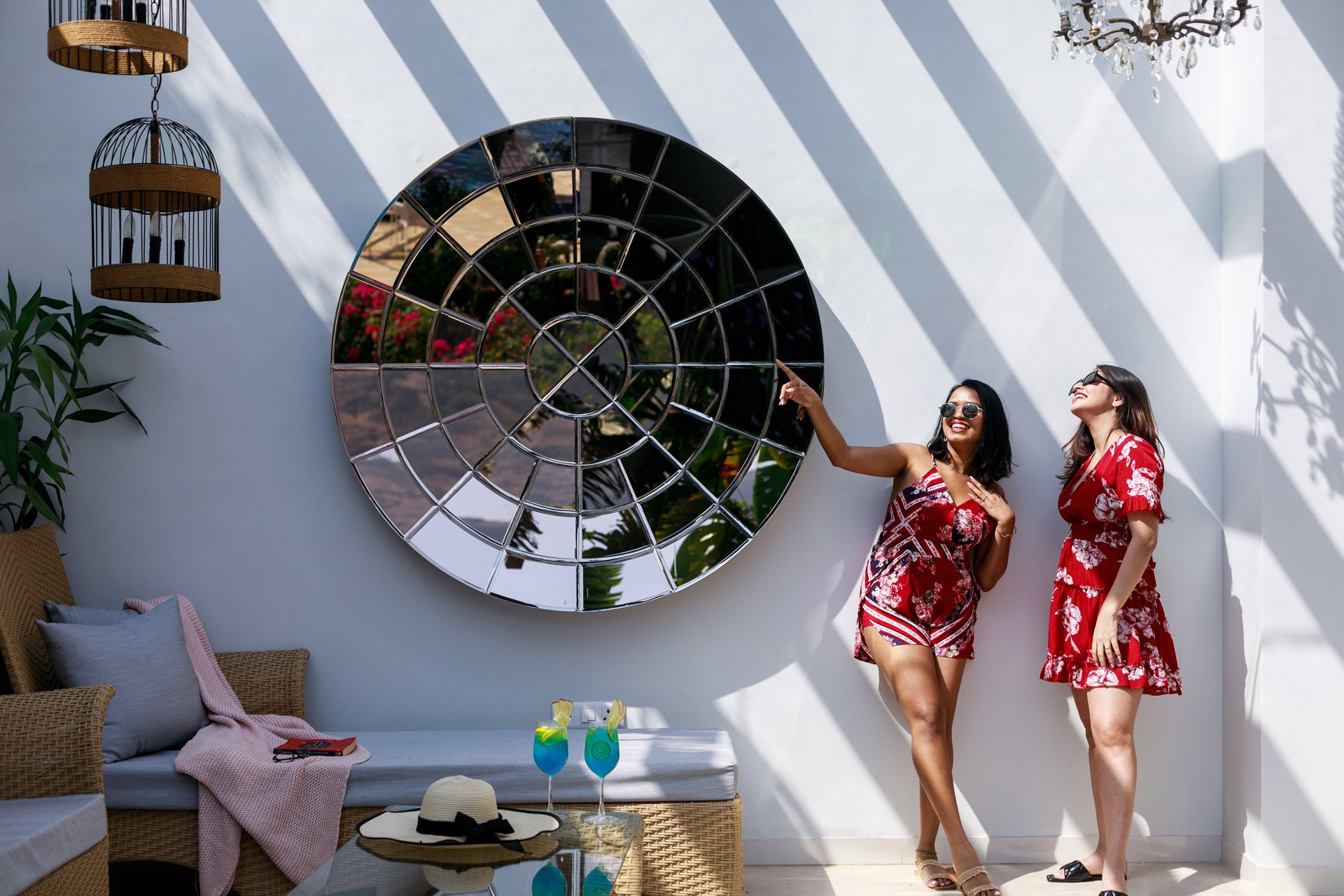 – Covered bar area with seating, glass roof and a maze of mirrors