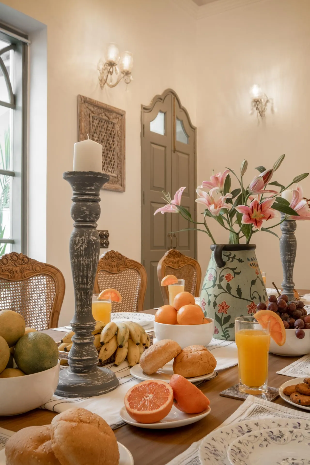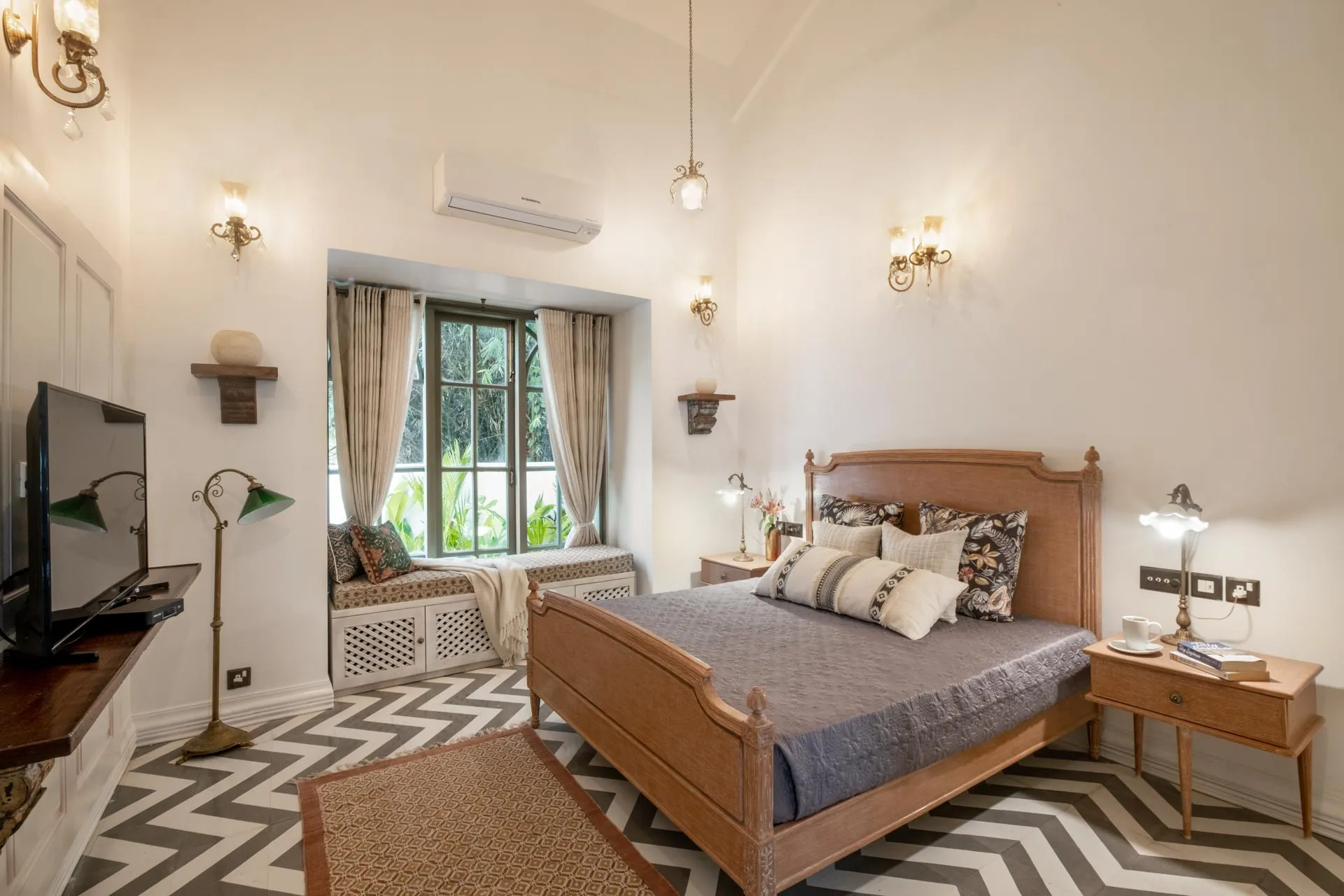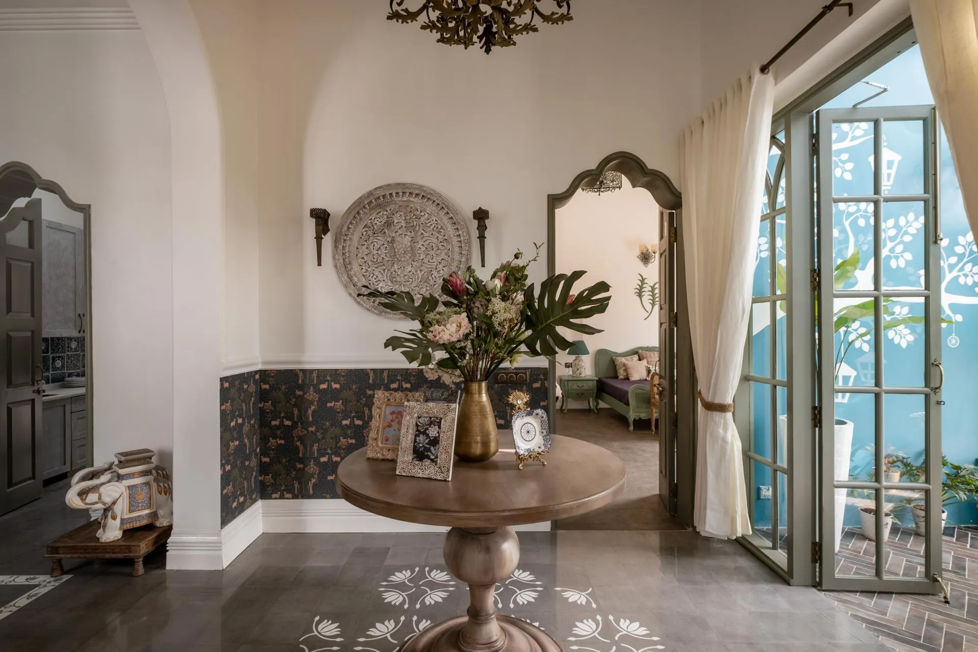 Step into your own private paradise as you enter the magnificent and luxurious Maison 9. Portuguese inspired architecture and vintage aesthetics blend harmoniously to offer a unique experience and bring the homeowner’s vision to life. A home built with love, every corner tells a unique story—from antiques collected from all over the world to traditional hand painted wallpapers and striking wooden carvings. With 6 spacious bedrooms, an opulent living and dining area, a delightful patio, lush lawns, and not one, but two serene private pools, Maison 9 is nestled near the serene Anjuna beach. Surrounded by picturesque paddy fields and offering awe-inspiring views, this residence is your perfect retreat, whether you seek pure relaxation or wish to host an intimate soiree with cherished ones. Anjuna itself is a vibrant tapestry, boasting local markets, chic eateries, a pulsating nightlife, and renowned beaches, catering to diverse tastes. Yet, should you prefer to revel in the villa’s allure, our dedicated Experiences team ensures an unforgettable stay. From exclusive restaurant pop-ups to delightful cocktail evenings, your desires become our curated experiences.