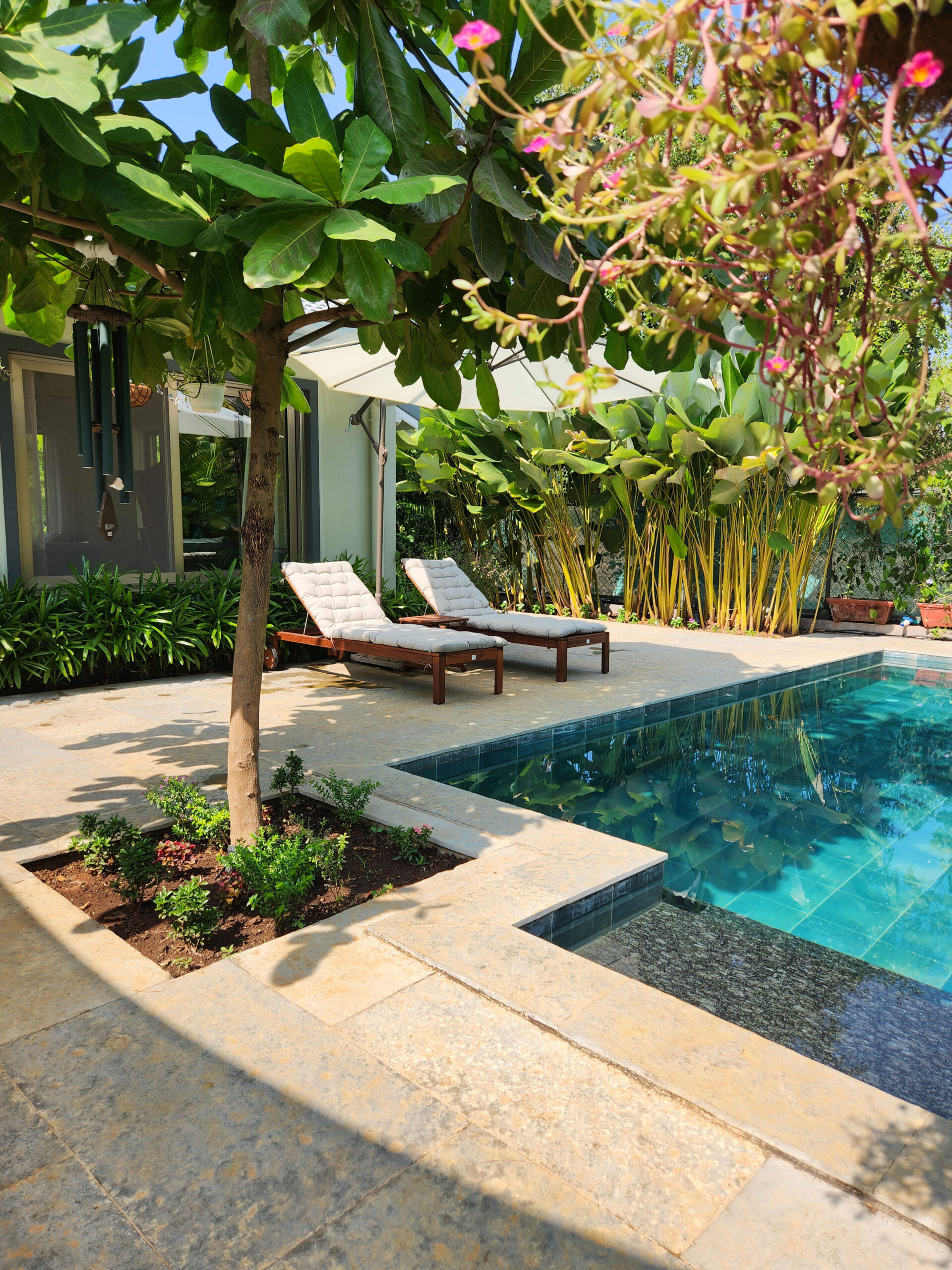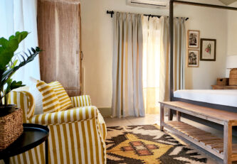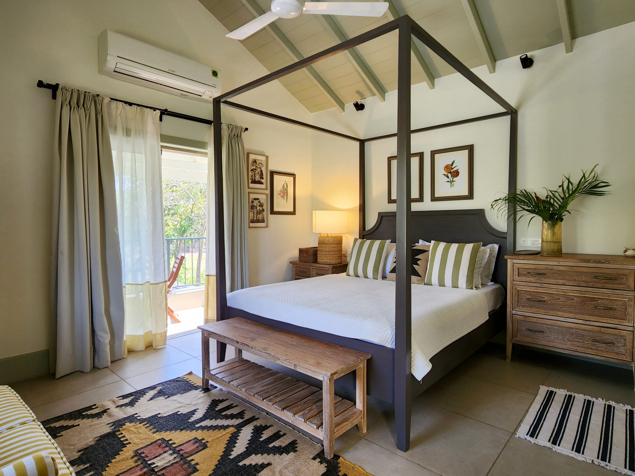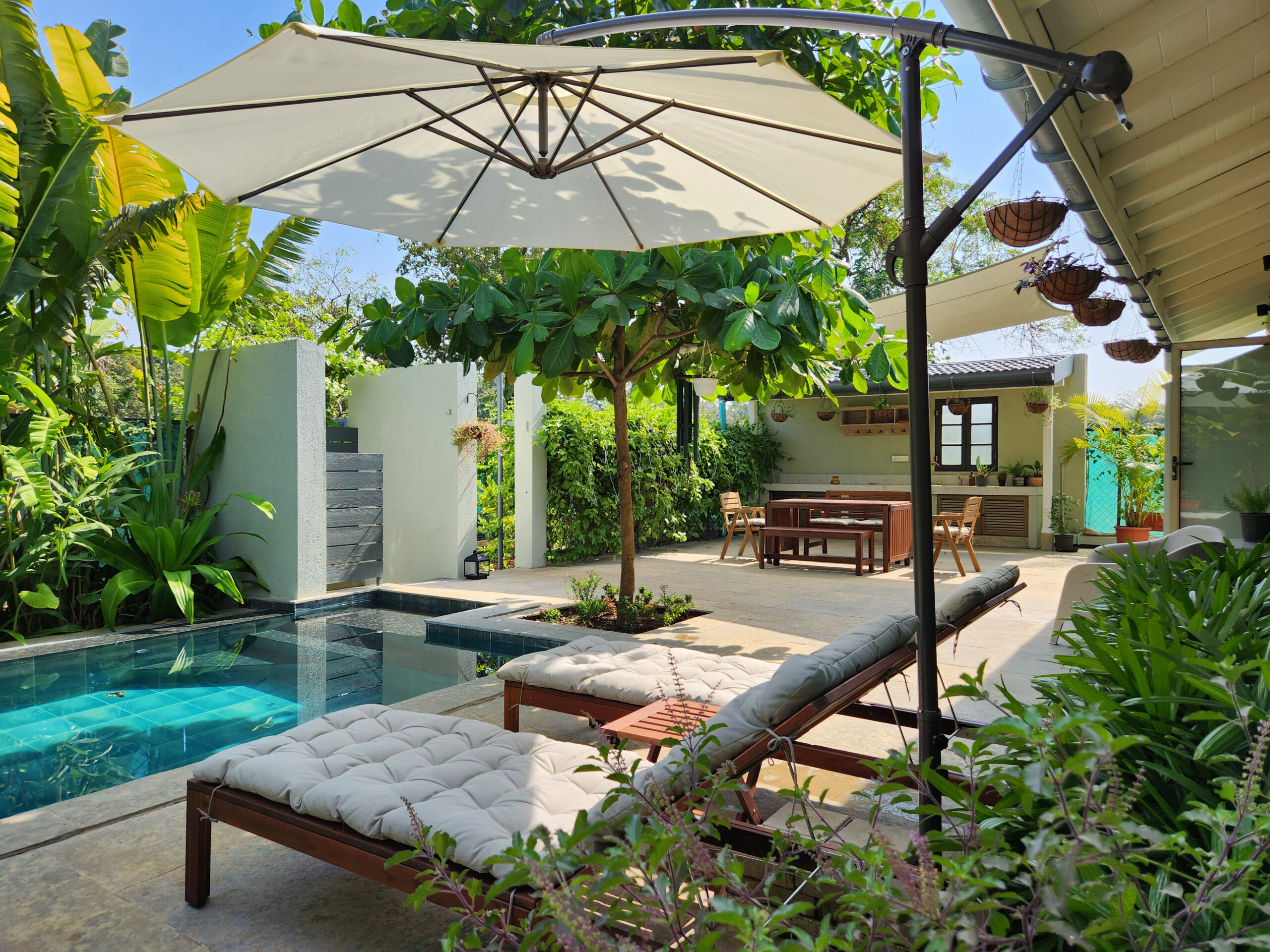 A short ride away from the popular Mandwa Ferry, Meher is a magnificent villa surrounded by the lush green landscape of Alibaug. Crafted with contemporary interiors in warm earthy tones, the villa has an exquisite verandah, a private pool and a vine-shaded corridor that opens to the garden, perfect for an early morning stroll.