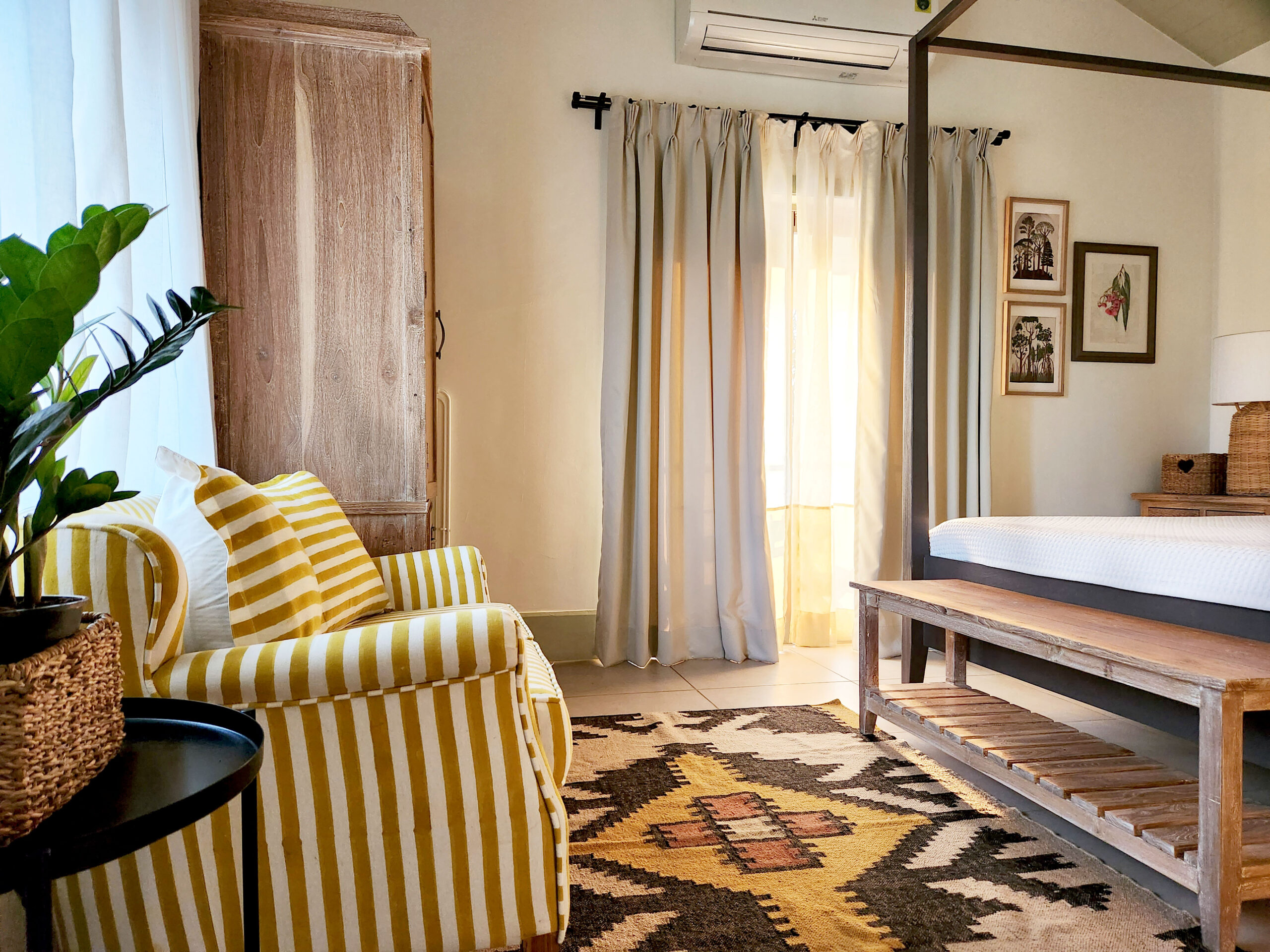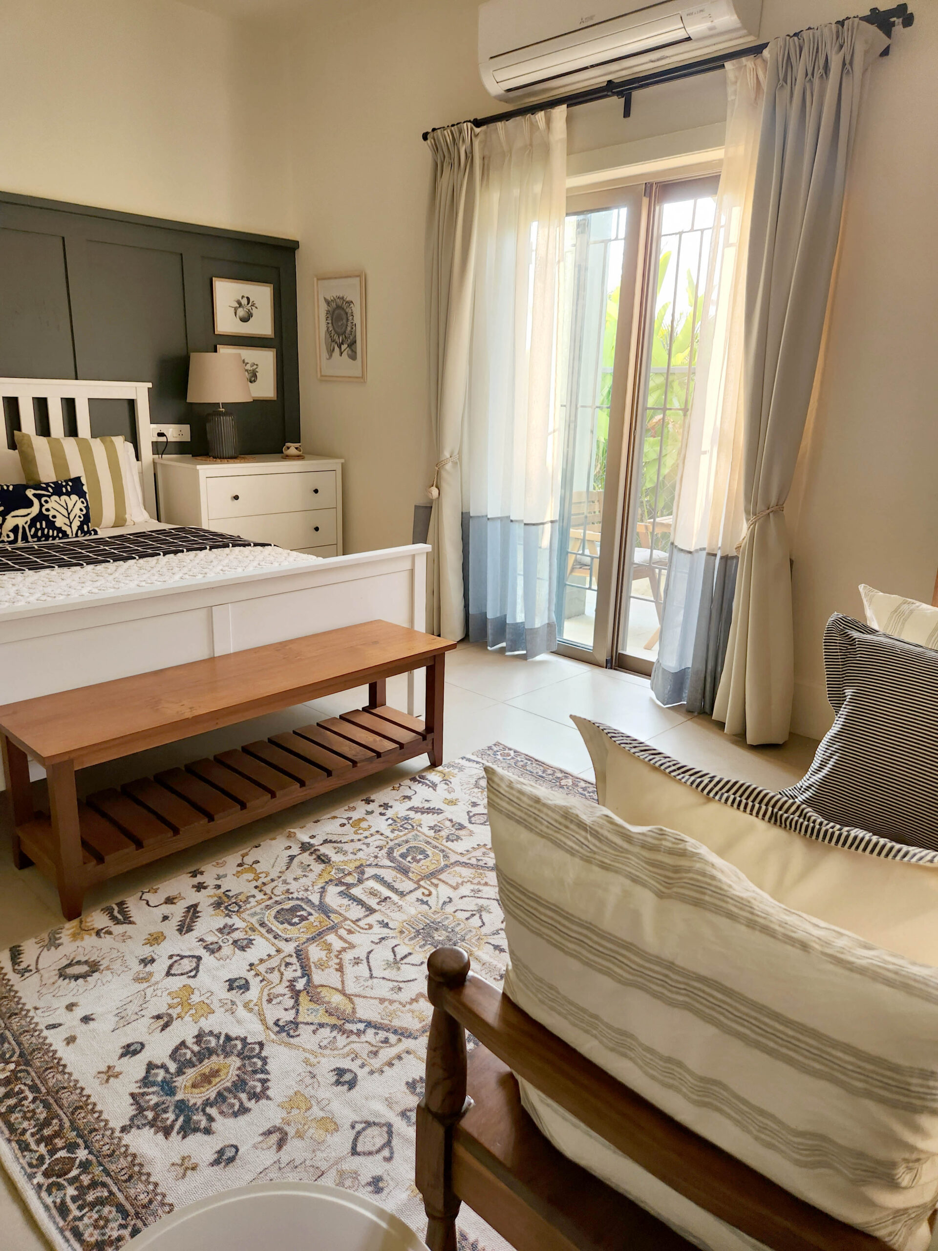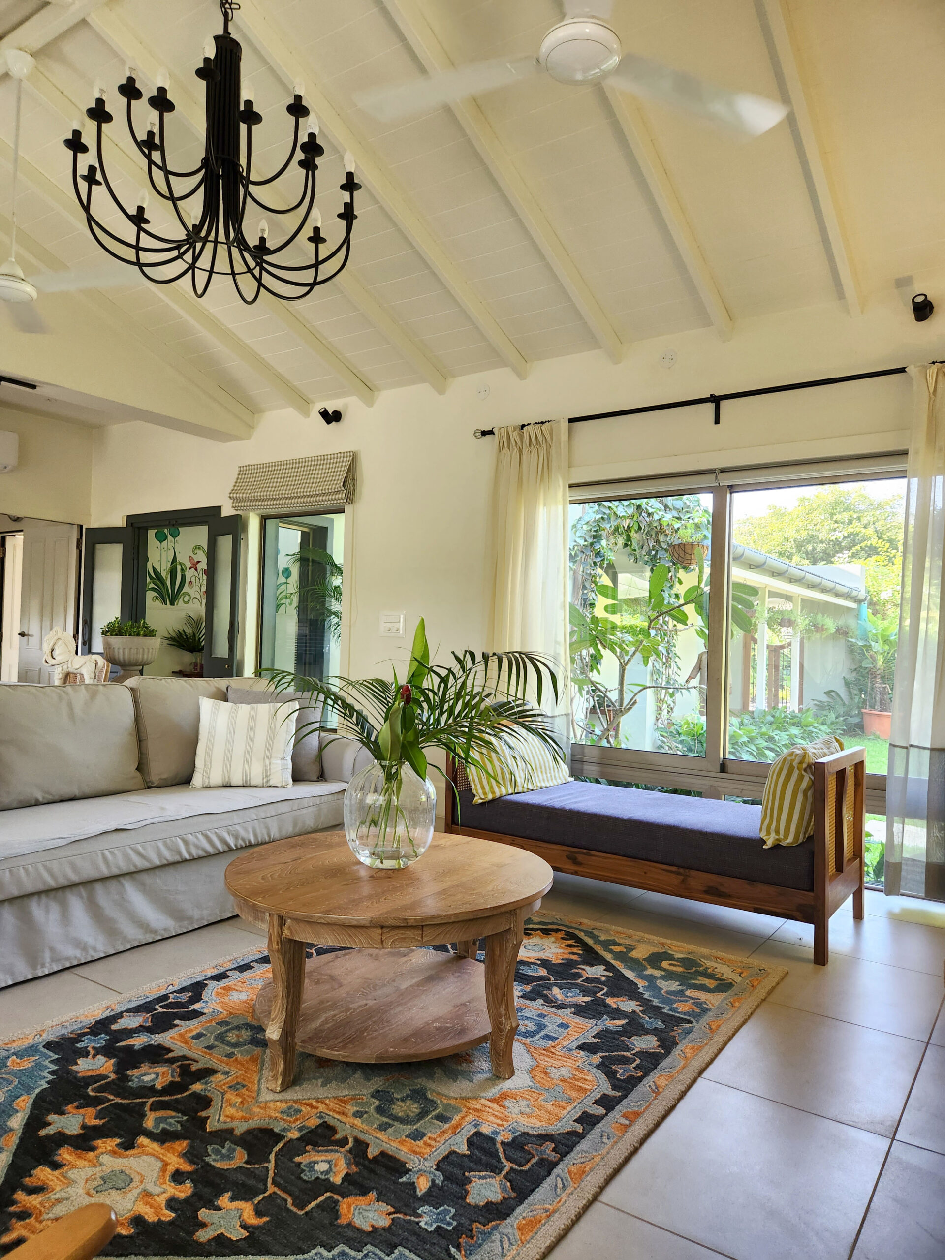 A short ride away from the popular Mandwa Ferry, Meher is a magnificent villa surrounded by the lush green landscape of Alibaug. Crafted with contemporary interiors in warm earthy tones, the villa has an exquisite verandah, a private pool and a vine-shaded corridor that opens to the garden, perfect for an early morning stroll.