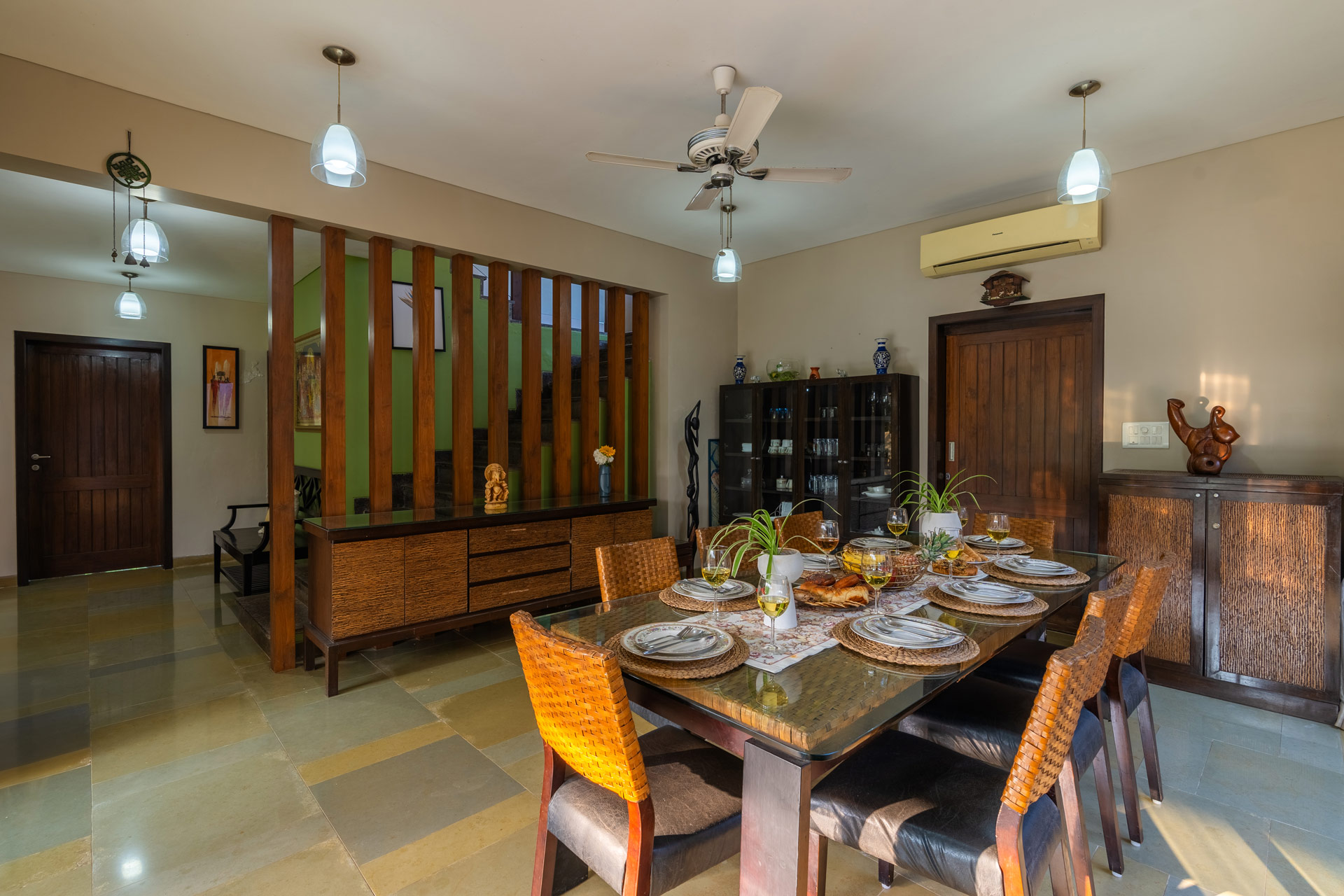 – There is an 8-seater dining table.