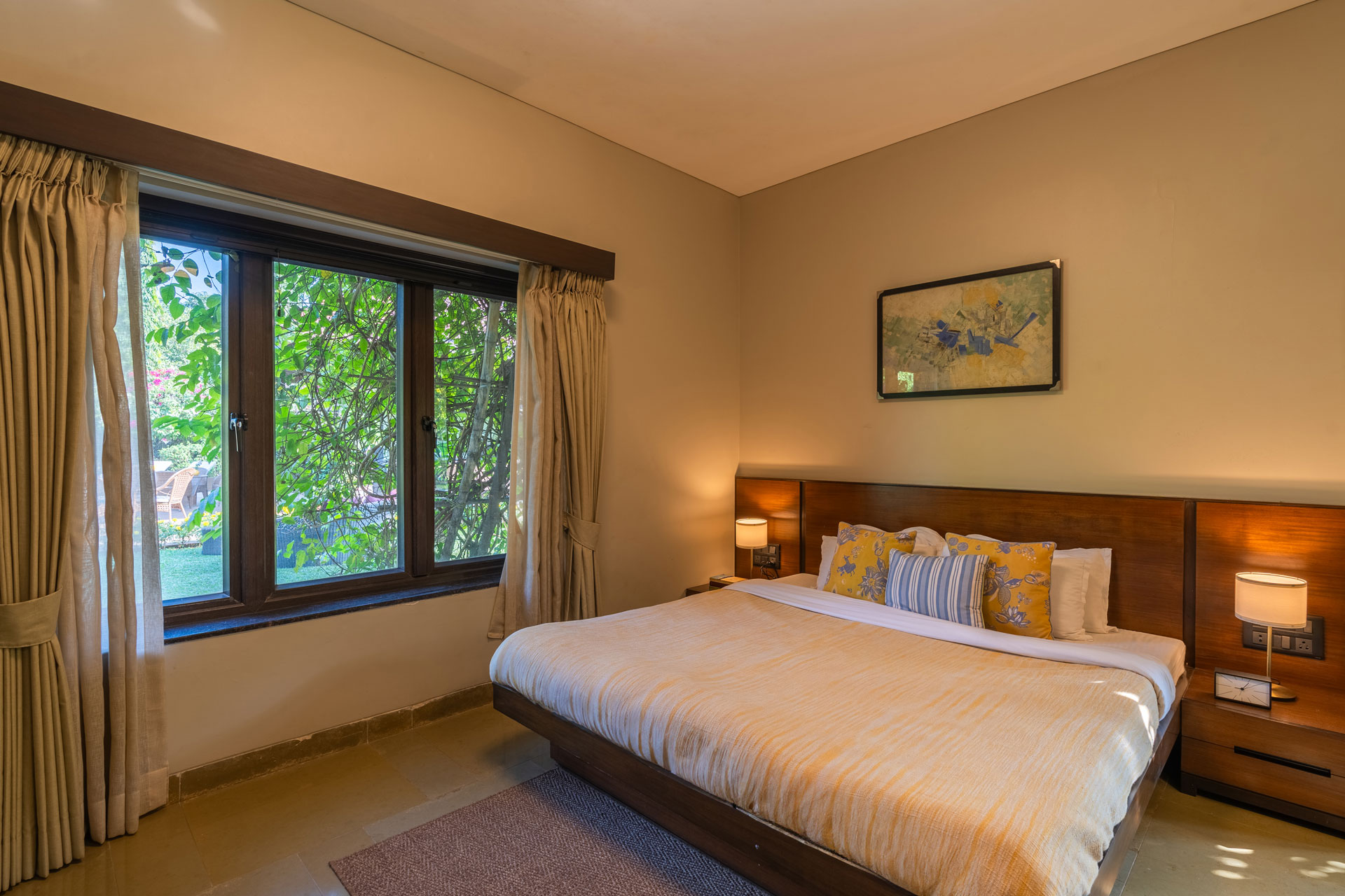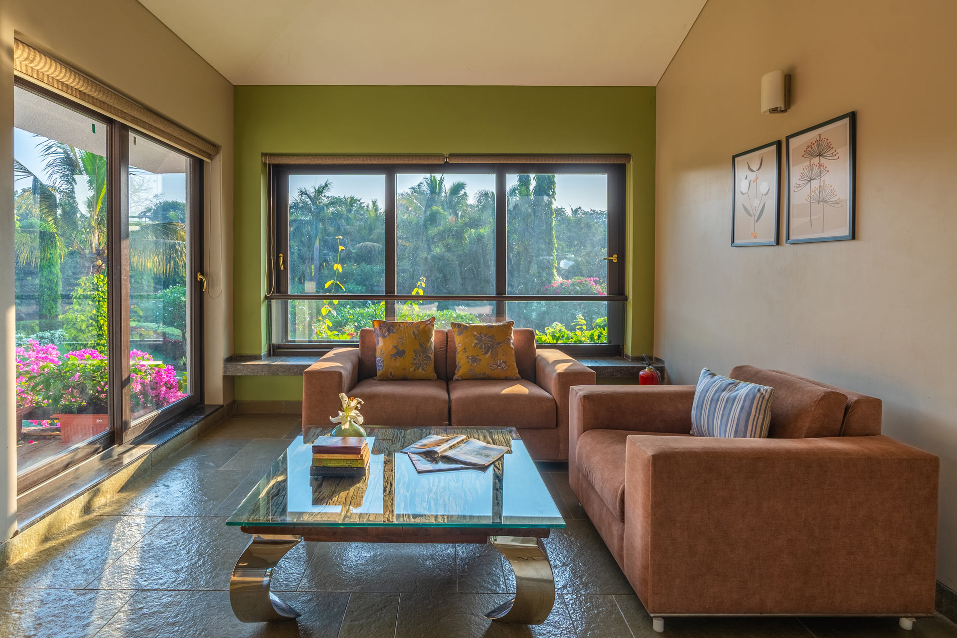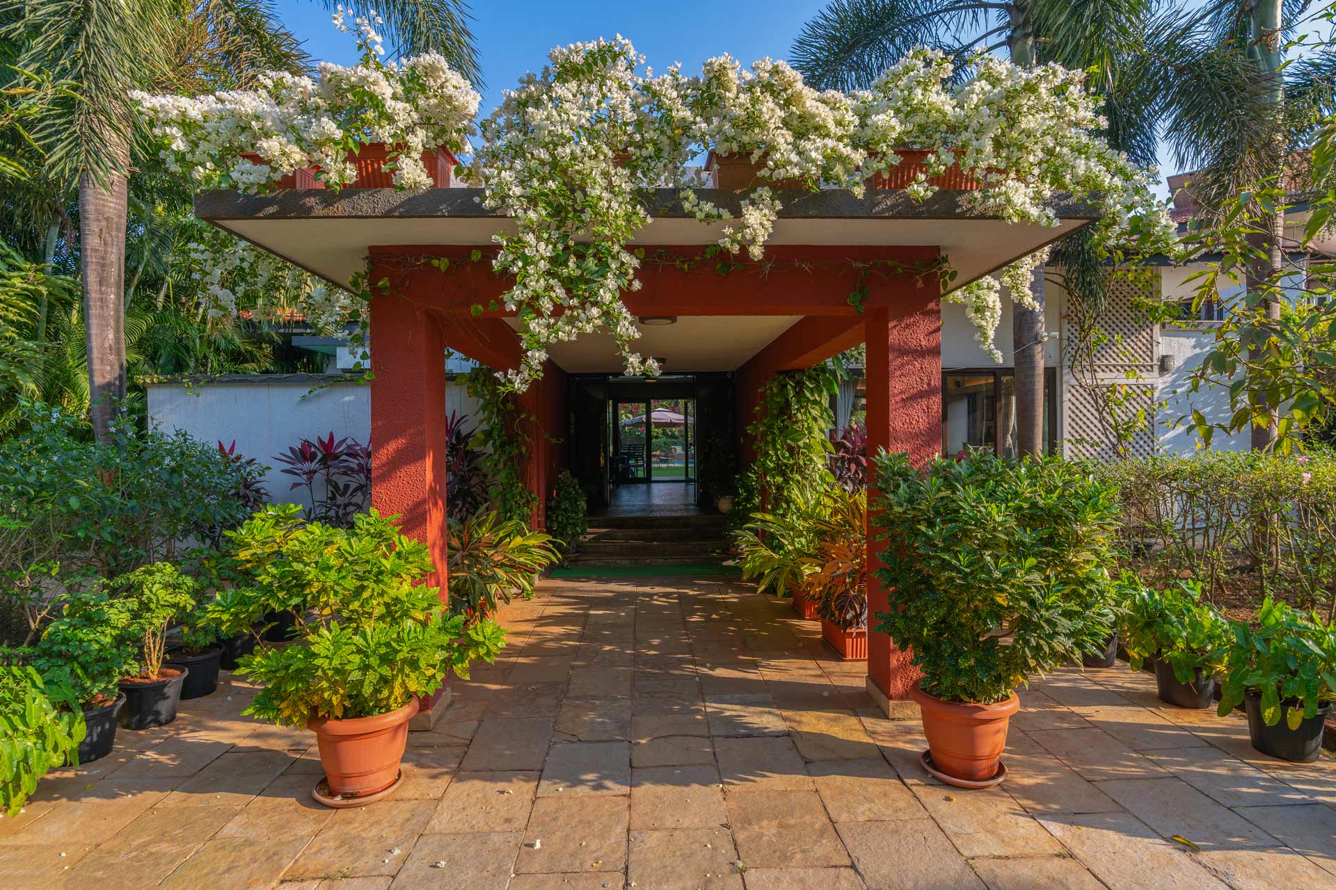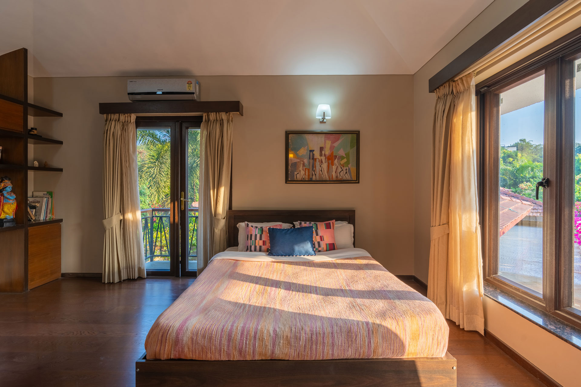 Replete with the beauty of orchards and greenery, enjoy the spectacular interiors and surroundings of this beautiful villa. Don’t get too comfortable with your solitude, as you can expect some company in the form of chirping birds and blooming bougainvilleas while the waterfalls form a soothing background score.