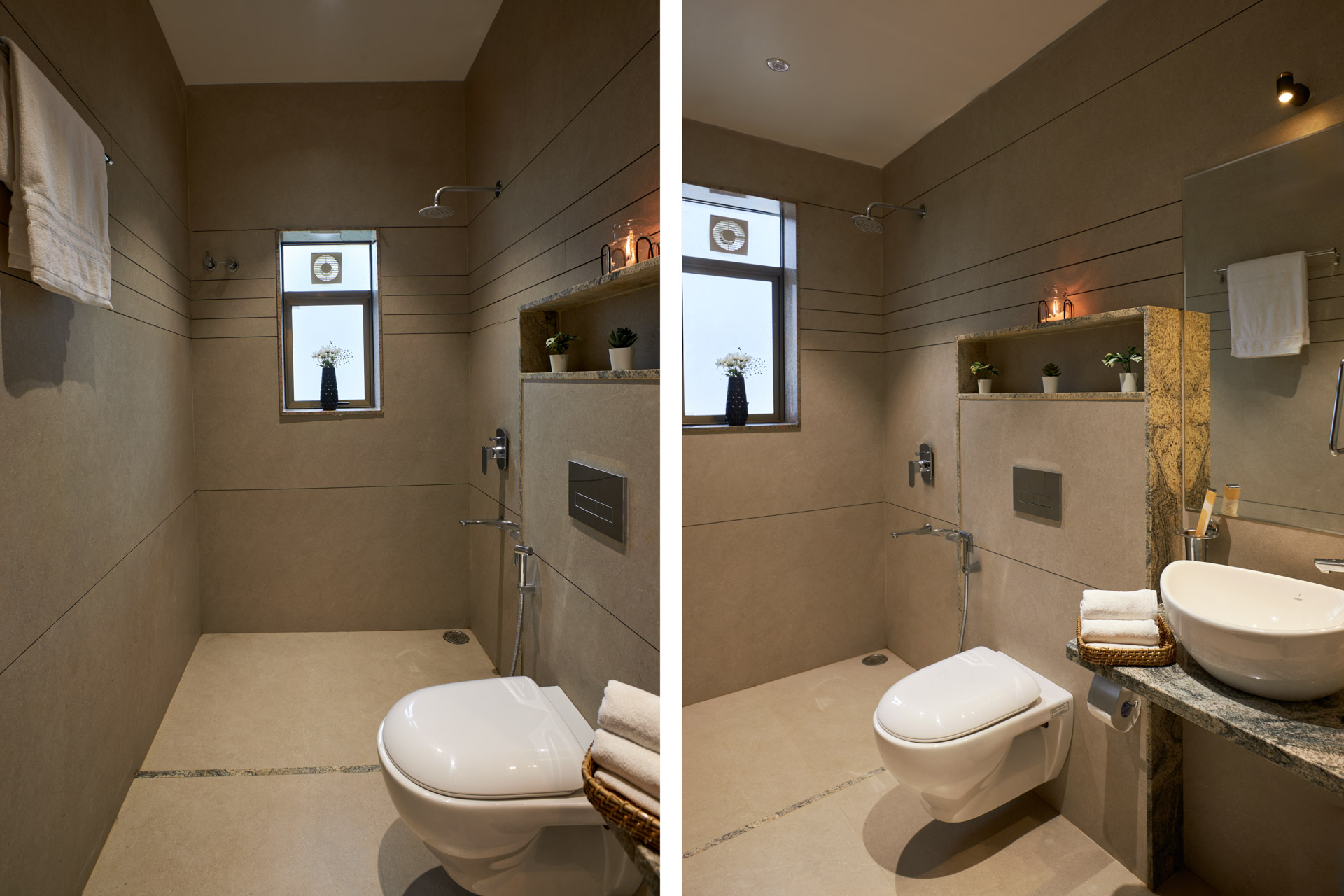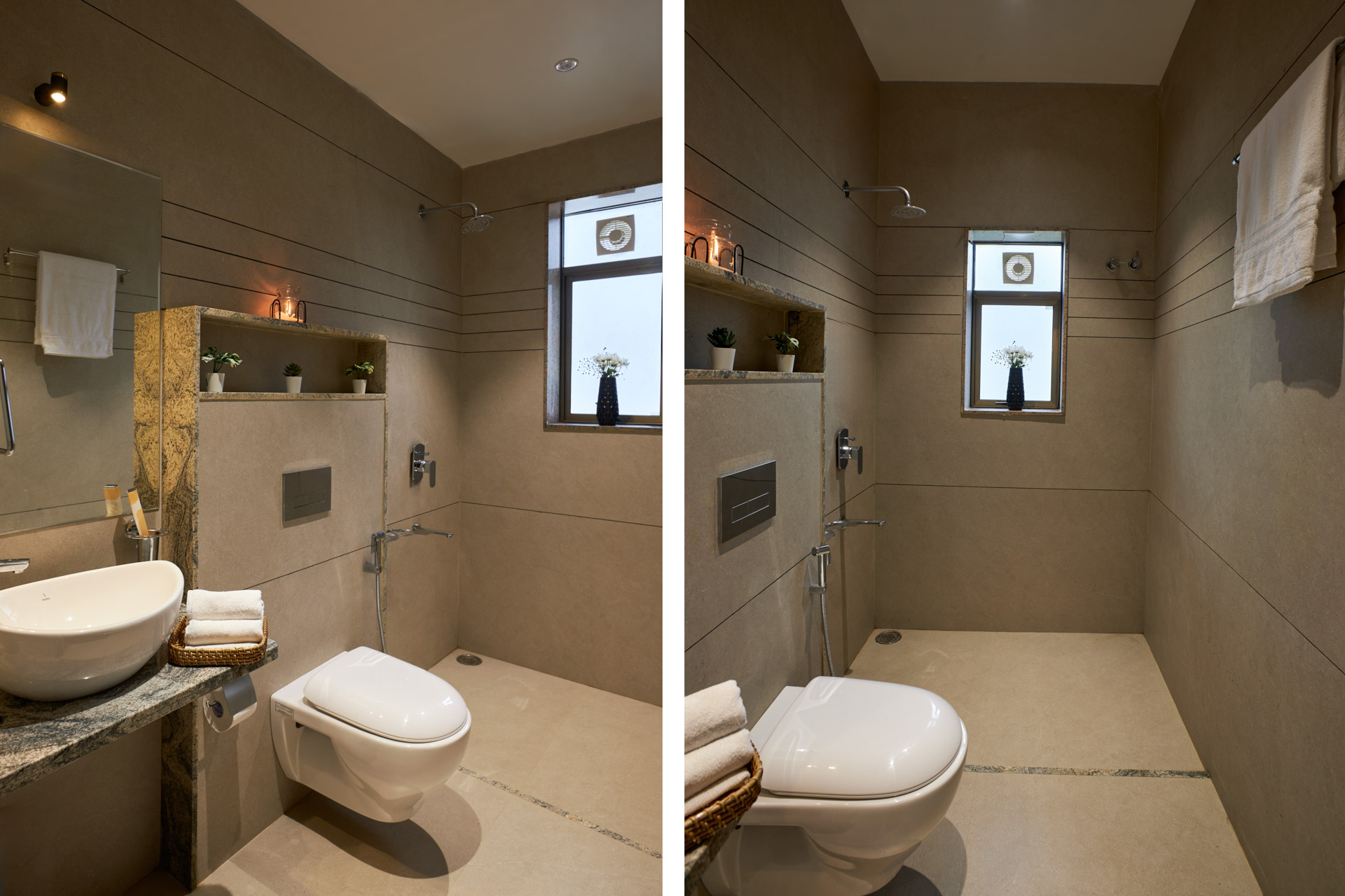 All bathrooms have geysers, towels, and basic toiletries.