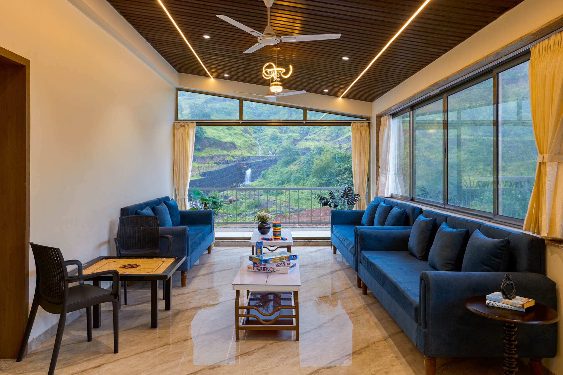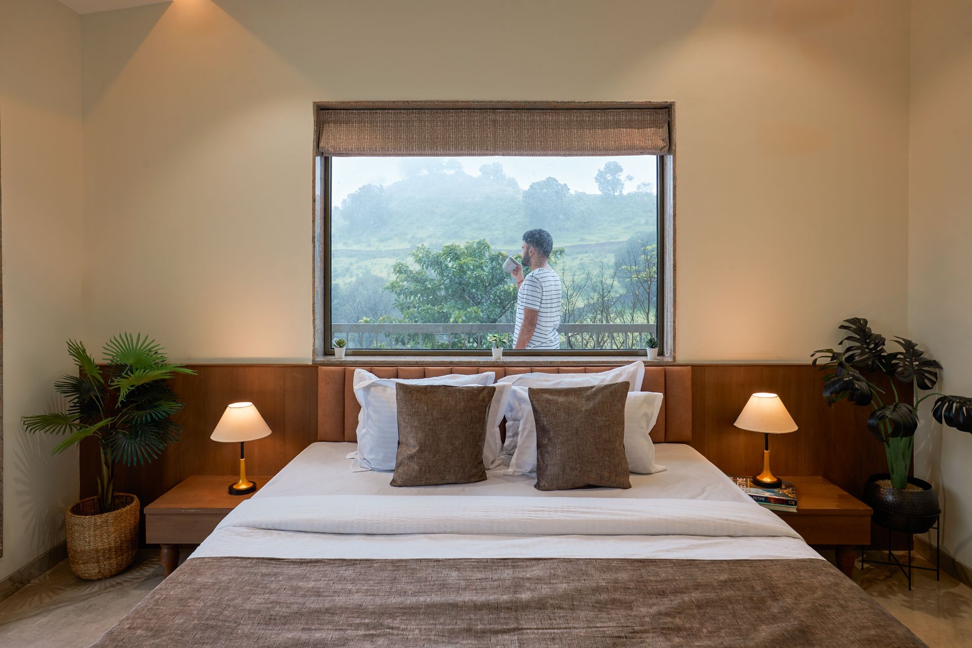 Mornings here begin slow — with sunlight streaming through your window and birdsong in the background. You grab a hot cup of chai and step outside to take in the view: rolling hills, lush greenery, and the calming sound of waterfalls nearby.