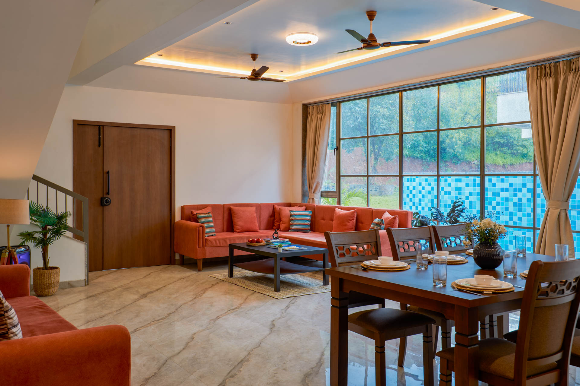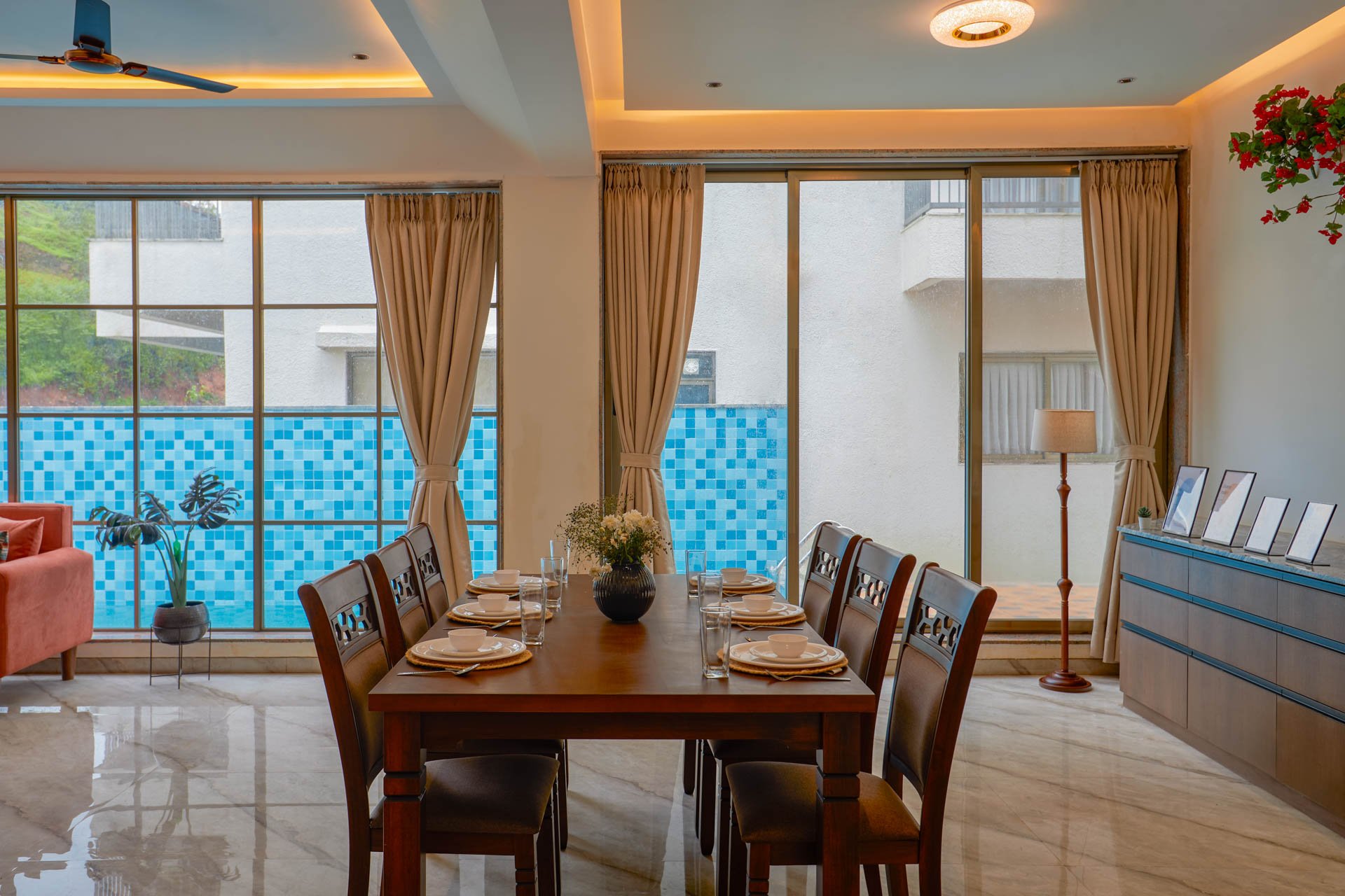 Breakfast is shared with your favourite people around the big table which is full of food, laughter, and plans for the day. Some head to the pool for a refreshing dip, others unwind on the lawn or dive into a board game inside. Afternoons are meant for naps, books, or a round of indoor games. By evening, you’re gathered around the bonfire, watching the sky turn shades of pink and gold. Dinner is relaxed, stories are flowing, and as the night sets in, you’ll wonder why every day can’t feel just like this.