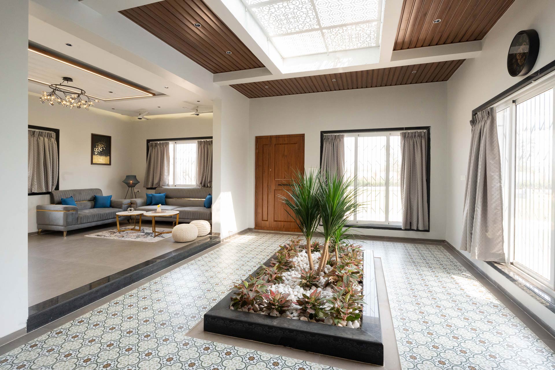 Upon entering Oasis of Solace, you will be welcomed by an expansive lawn including a play area that is sure to occupy the younger ones for an extended period of time. This home, which is surrounded by beautiful vegetation, welcomes you to a world of luxury and tranquillity with its modern cubical facade decorated in serene, elegant neutral tones. With views of the open sky and surrounding vegetation, the gorgeous outdoor pool provides a refreshing respite for kids to play and giggle. Picture-perfect moments are waiting to be captured. The football turf calls out to the sports fans, enticing both family pleasure and friendly games. In the meanwhile, children will have plenty of room to run about and unleash their ideas thanks to the designated play area.