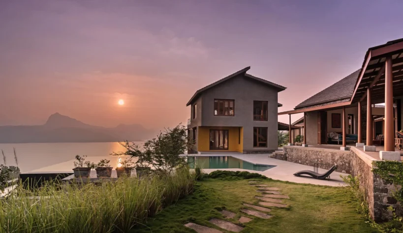Overlooking the Sahyadris and the serene Pawna Lake, Om Anantha rises up inconspicuously with its soothing, earth-toned structure. The home comprises an independent living area and a splendid infinity pool that will simply take your breath away. The living and dining area, with its double-height ceiling, allows the sun to filter in and cast warm shadows throughout the day while offering picture-perfect views of the outdoors. Infinitum, a luxurious addition, sits next to the elegant Om Anantha villa. With an independent structure that inches closer to the banks, Infinitum assures the utmost privacy. The home boasts beautiful elements, such as a quaint wooden stairwell that leads you to the first floor. The wide, breezy bedroom with its own living area and terrace gives you unhindered views of the surreal sunsets and lake, no matter where you stand. The private den is also tastefully furnished and is ideal for reading or spending a relaxed morning. Enjoy a cup of tea while reading a book and taking in the beauty of Pawna Lake or take a leisurely shower in the palatial bathroom. Envelop yourself in optimum comfort on the beautiful patio or curl up in the inviting lounge, perfect for cozy afternoons. Unwind and disconnect from city life at Om Anantha and Om Anantha – Infinitum as you bask in the peaceful atmosphere and make the most of stellar service. Simply put, Om Anantha – Infinitum is truly designed to delight.