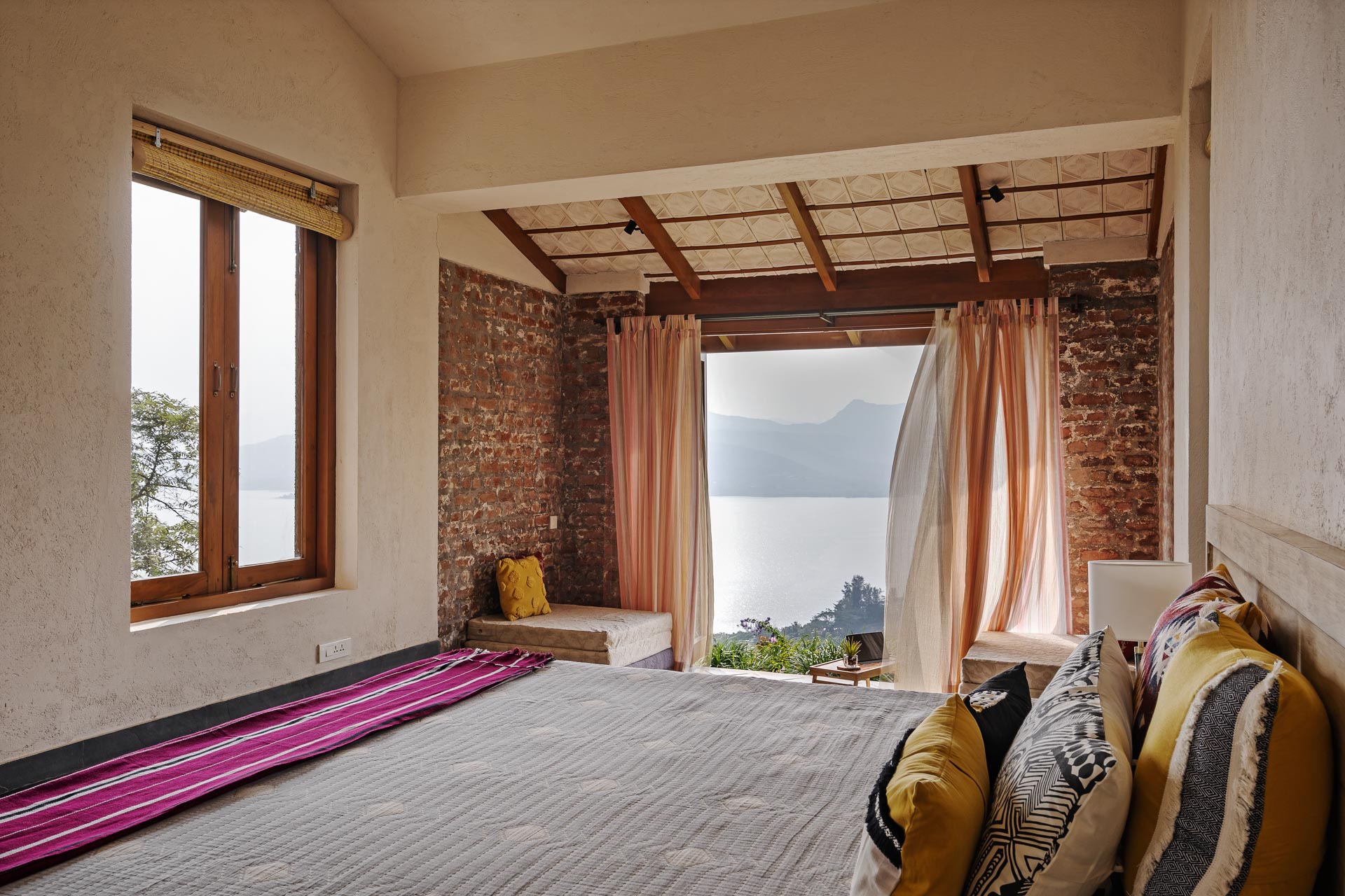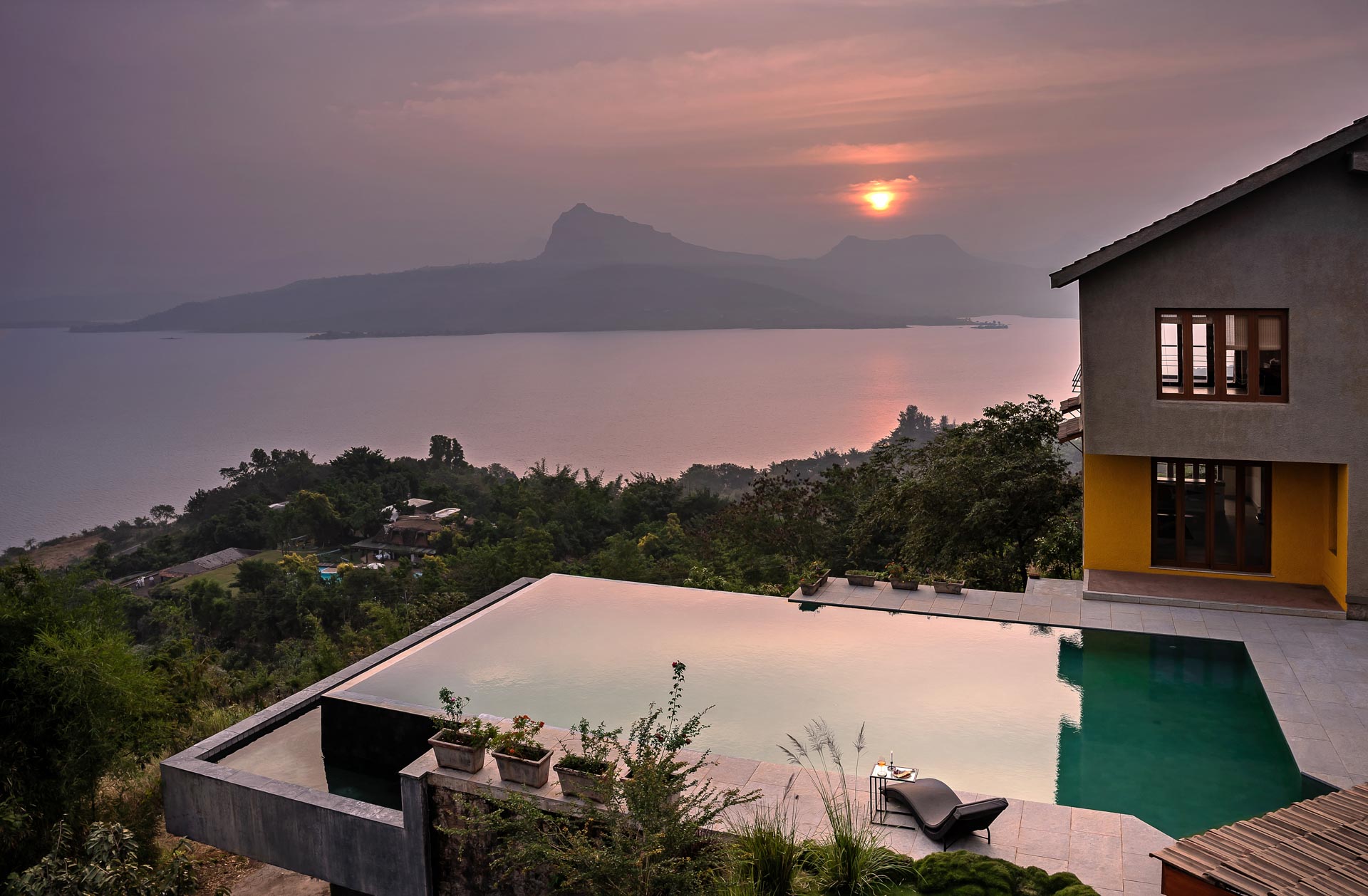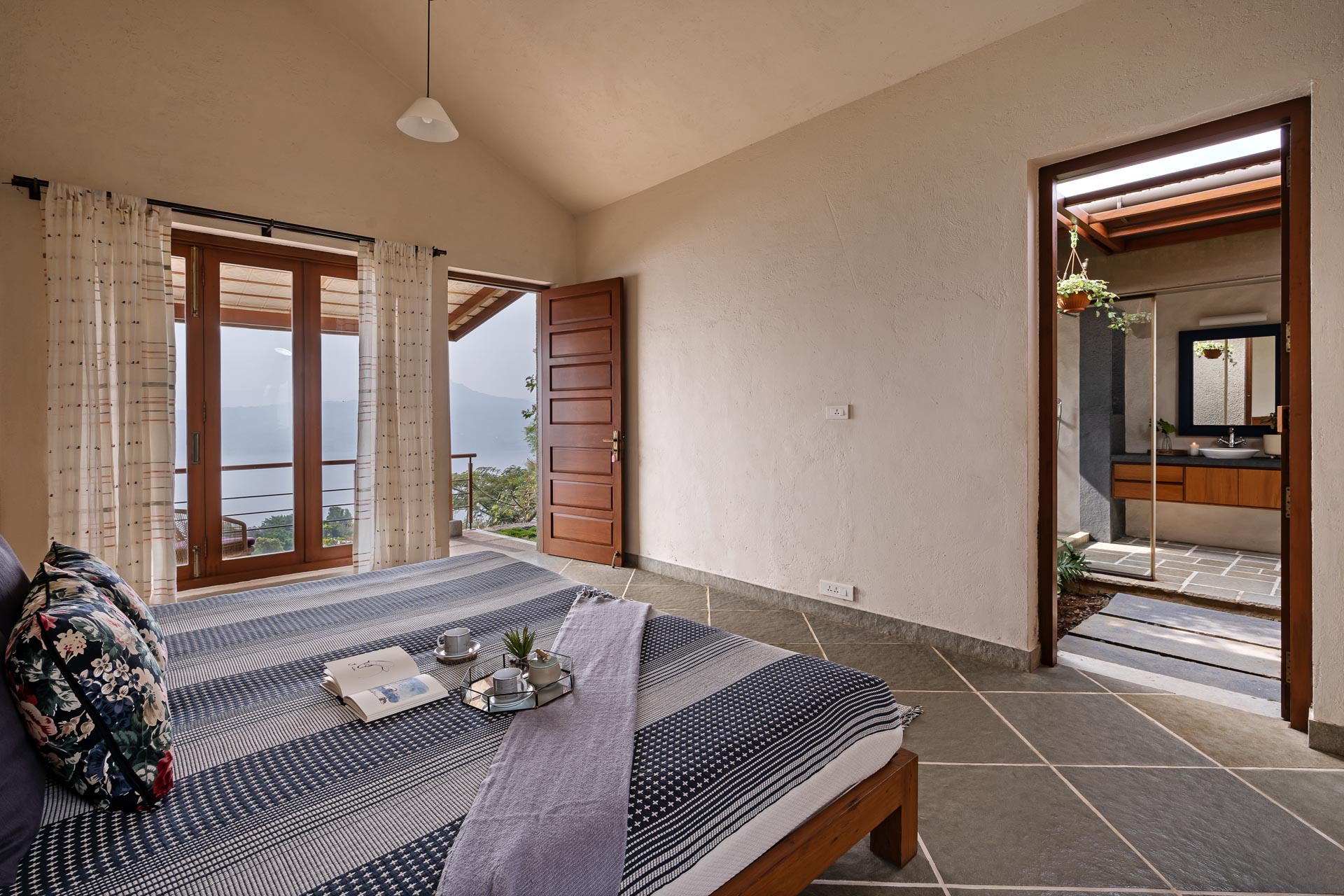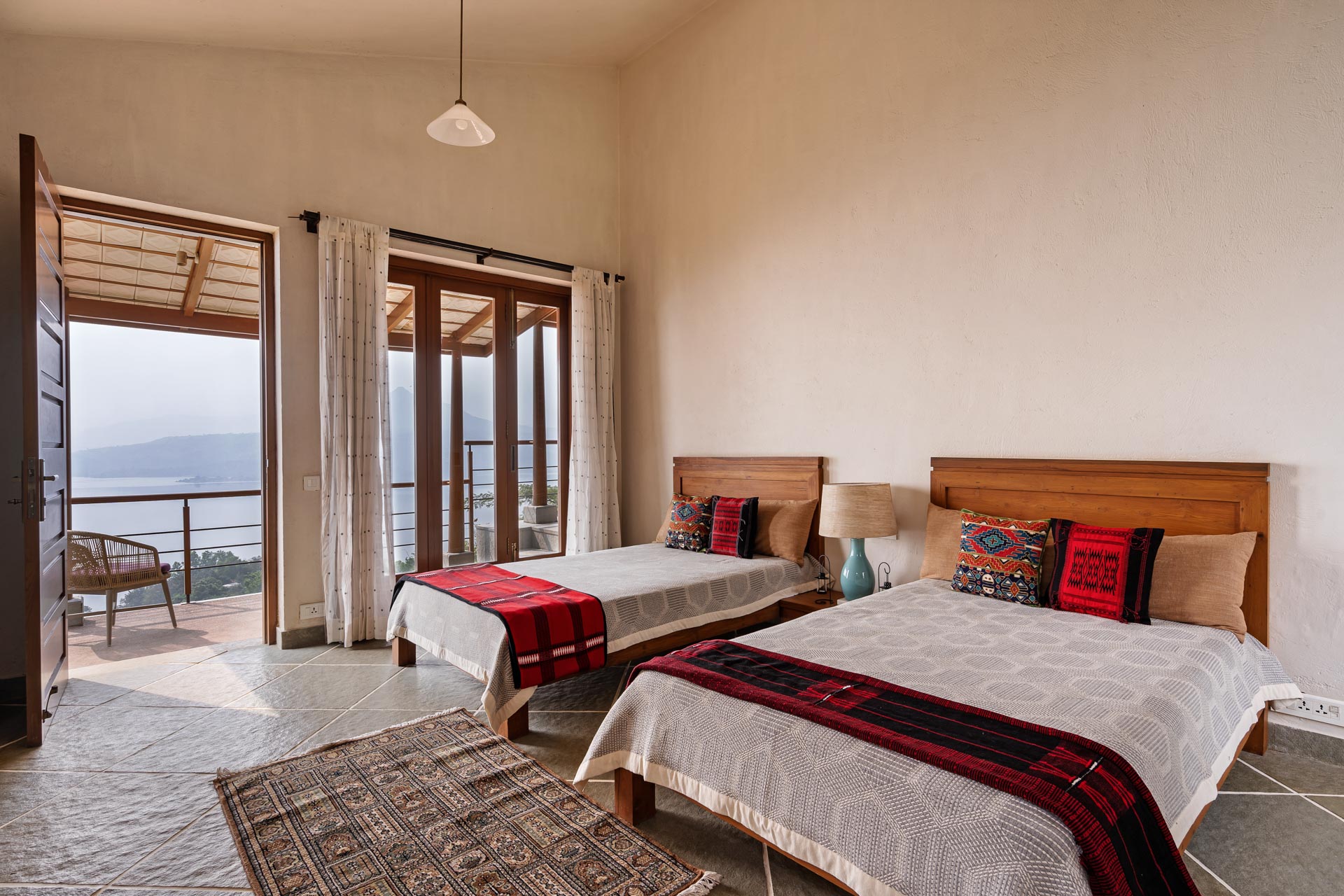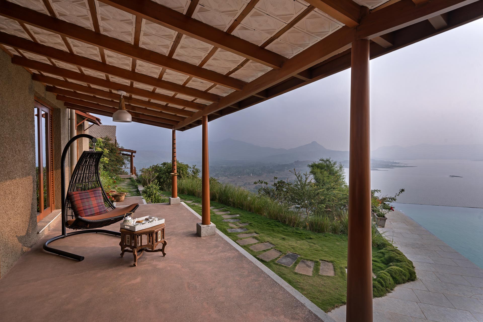 Overlooking the Sahyadris and the serene Pawna Lake, Om Anantha emerges inconspicuously with earth-toned structures. Following the meandering terrain, the 4-bedroom home comprises independent living and bedroom blocks that allow for maximum privacy and a splendid infinity pool that will take your breath away. The living and dining area, with its double-height ceiling, allows the sun to intermingle and cast beautiful shadows throughout the day while offering picture-perfect views of the outdoors. From open-air bathrooms to beautiful decks and patios, the bedrooms are perfect for those lazy, breezy afternoons. Truly unwind and disconnect from city life at Om Anantha as you bask in the peaceful atmosphere and make the most of stellar service. And if you’re looking for some excitement, you can head out to conquer the nearby forts of Tungi, Tikona or Lohagad.