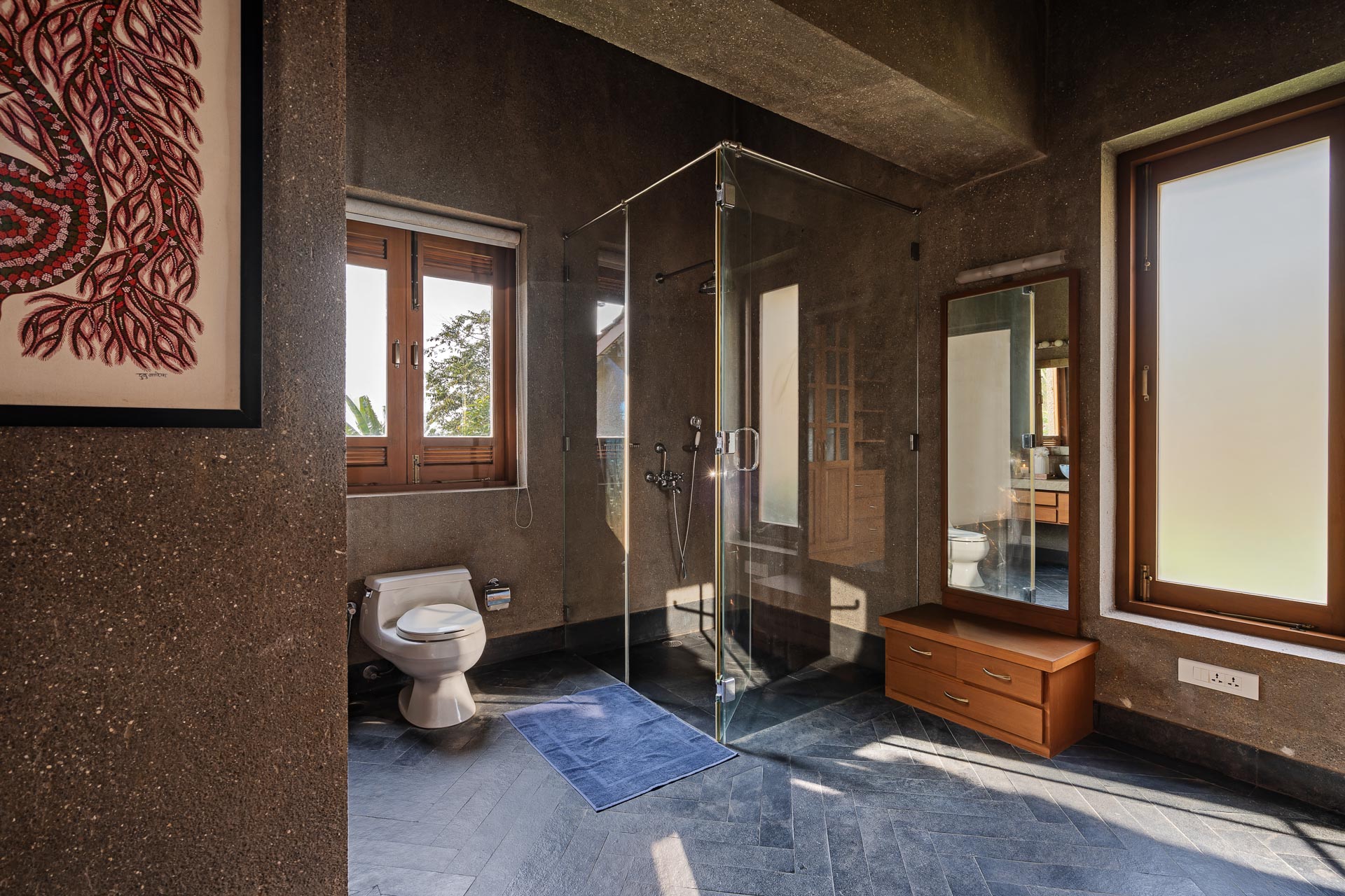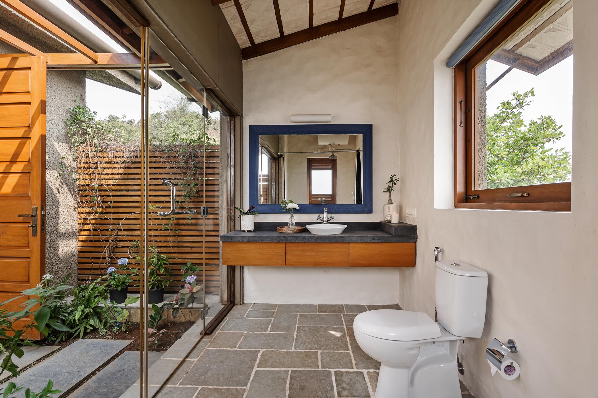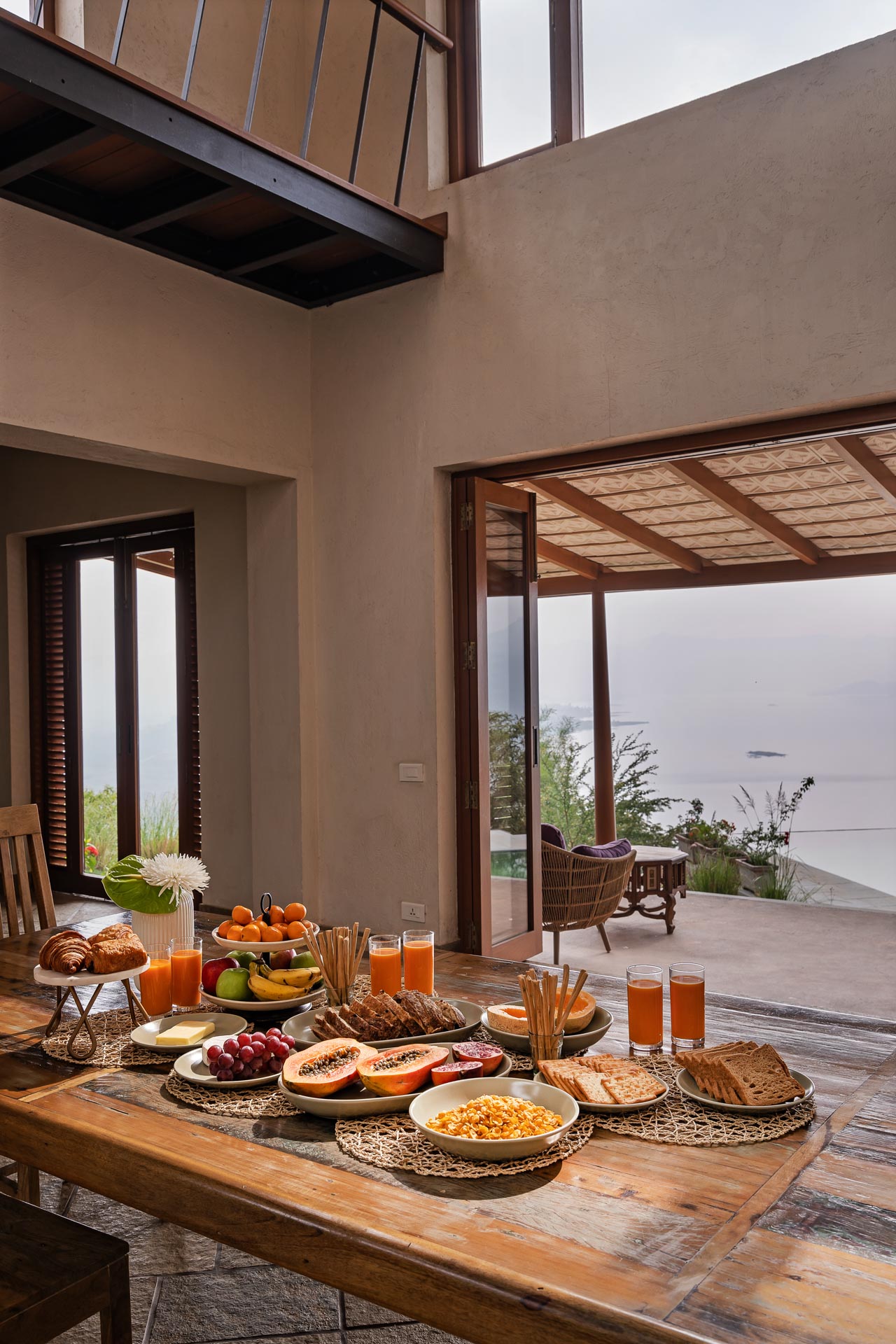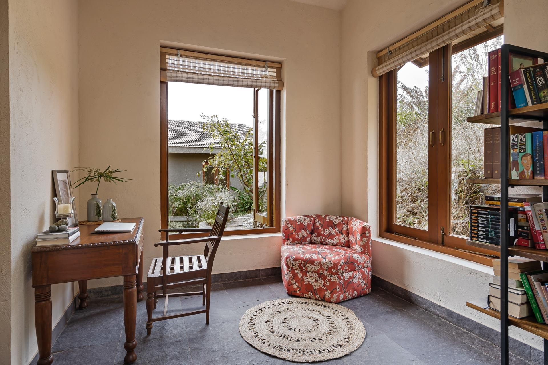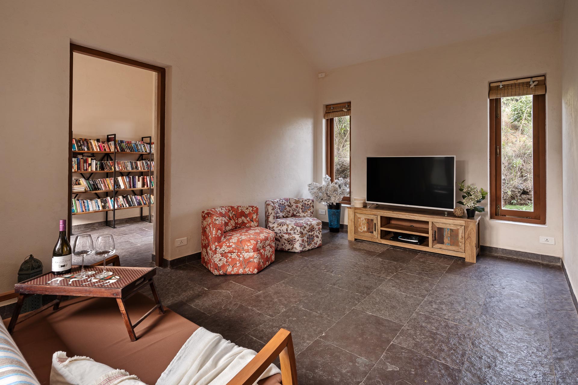 Overlooking the Sahyadris and the serene Pawna Lake, Om Anantha emerges inconspicuously with earth-toned structures. Following the meandering terrain, the 4-bedroom home comprises independent living and bedroom blocks that allow for maximum privacy and a splendid infinity pool that will take your breath away. The living and dining area, with its double-height ceiling, allows the sun to intermingle and cast beautiful shadows throughout the day while offering picture-perfect views of the outdoors. From open-air bathrooms to beautiful decks and patios, the bedrooms are perfect for those lazy, breezy afternoons. Truly unwind and disconnect from city life at Om Anantha as you bask in the peaceful atmosphere and make the most of stellar service. And if you’re looking for some excitement, you can head out to conquer the nearby forts of Tungi, Tikona or Lohagad.