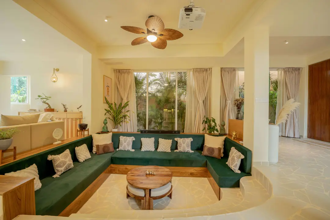 A Chic 4-Bedroom Pet-Friendly Villa with Sunken Seating, Projector & Bathtubs
