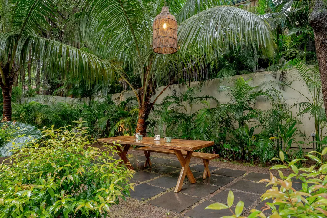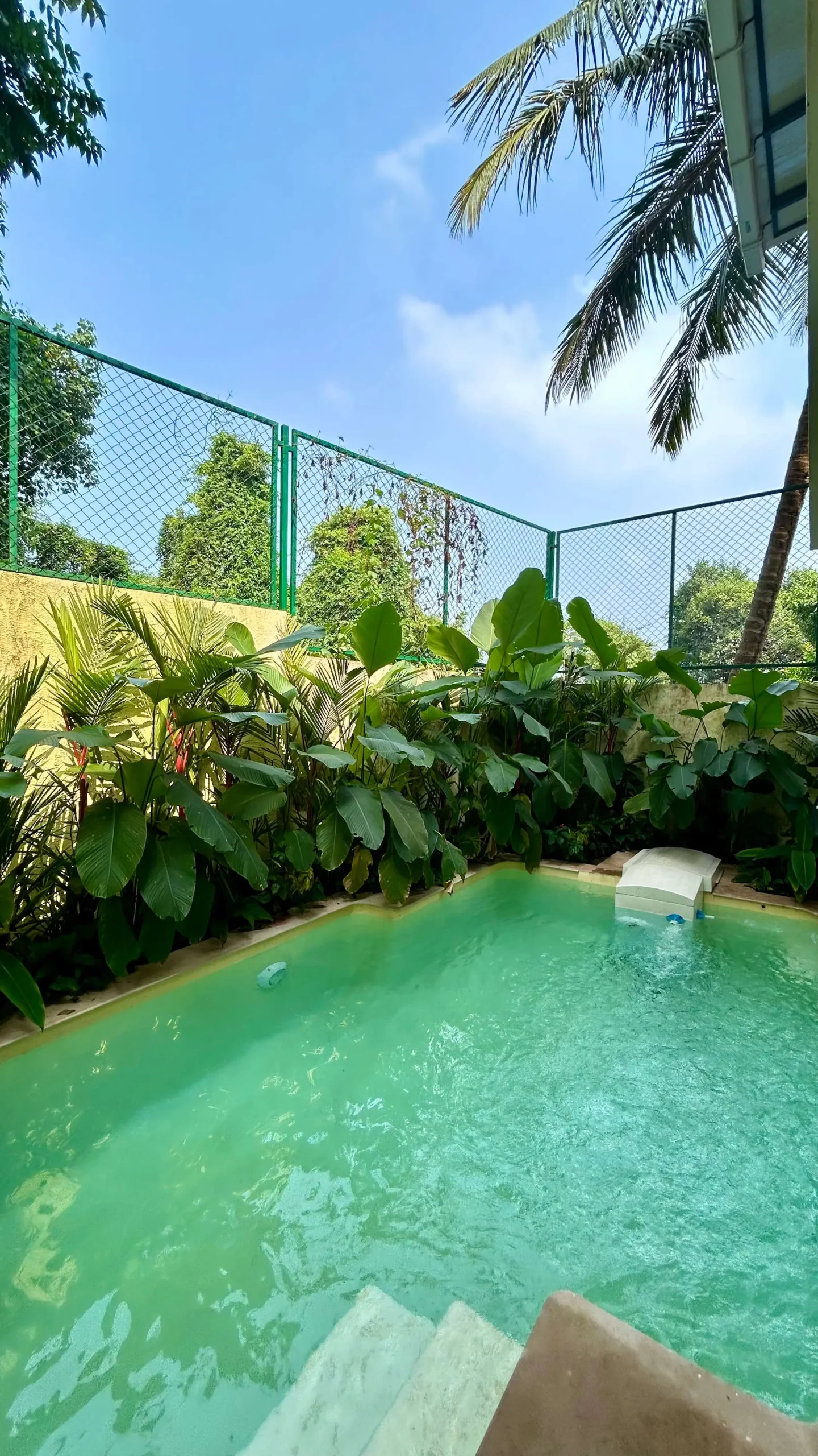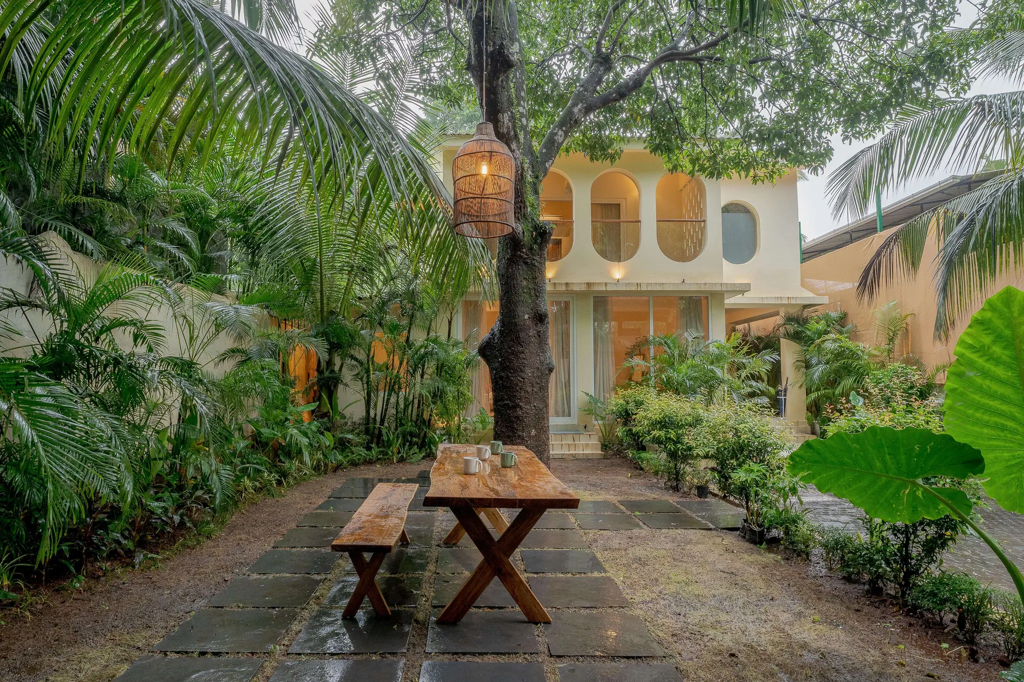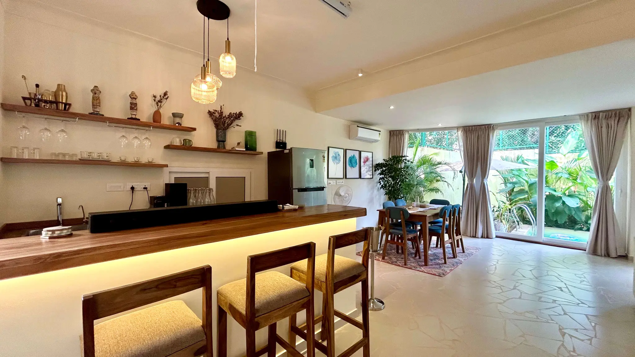 Just 800 meters from Vagator Beach and 900 meters from Chapora Fort, Oslo is a stylish, pet-friendly luxury villa offering warm Pinterest-inspired interiors, a glowing tropical pool, and sunken seating with a projector for unforgettable movie nights.