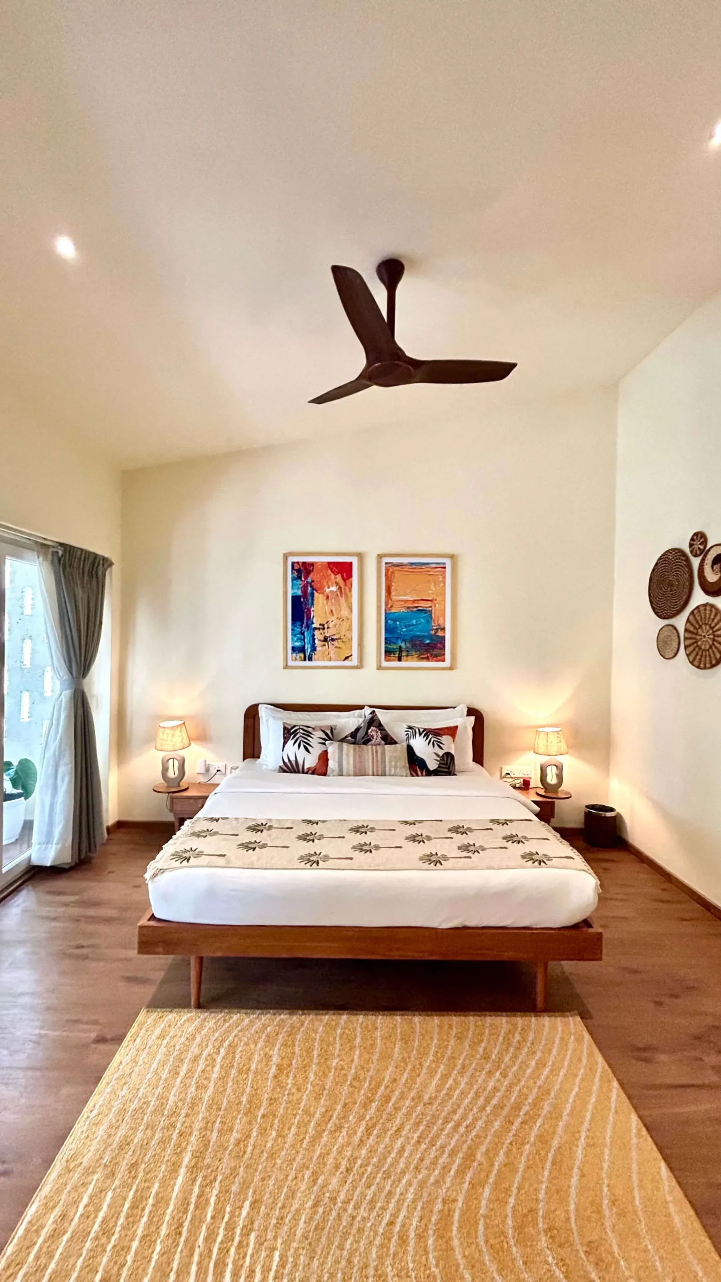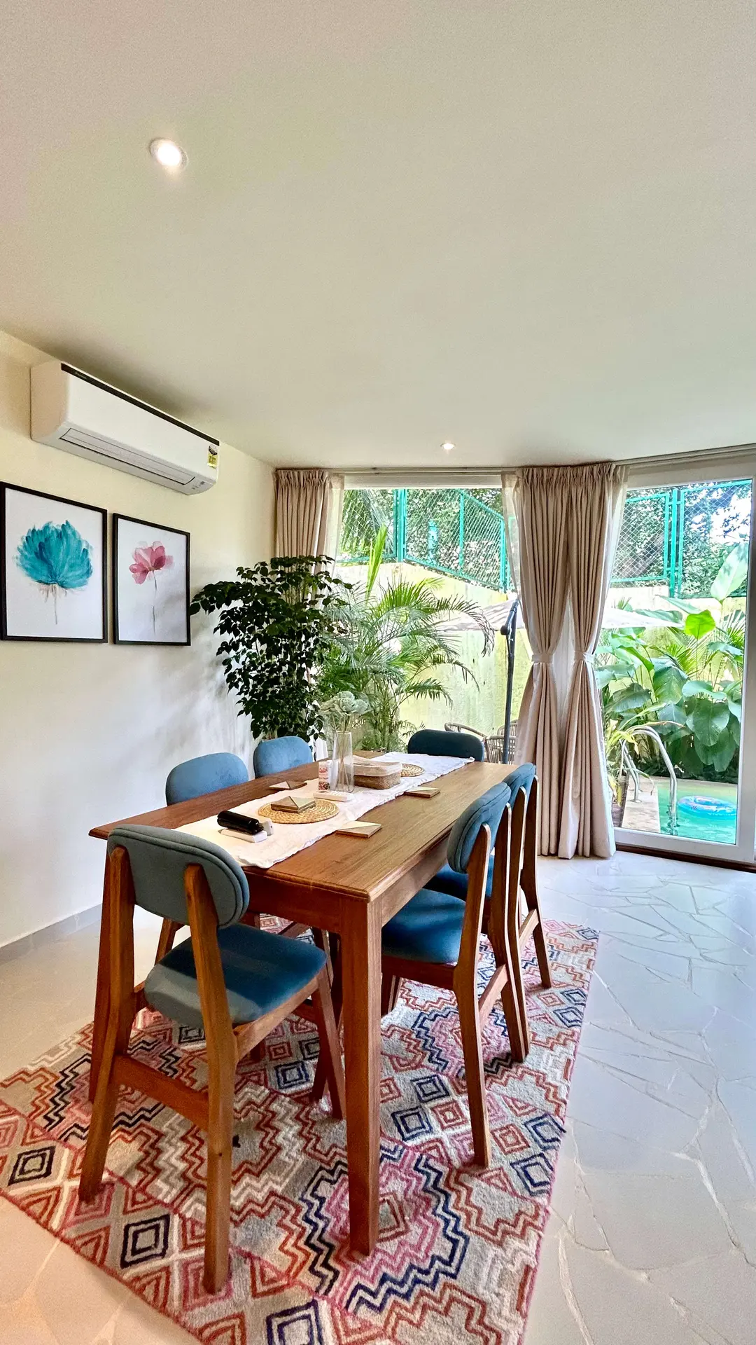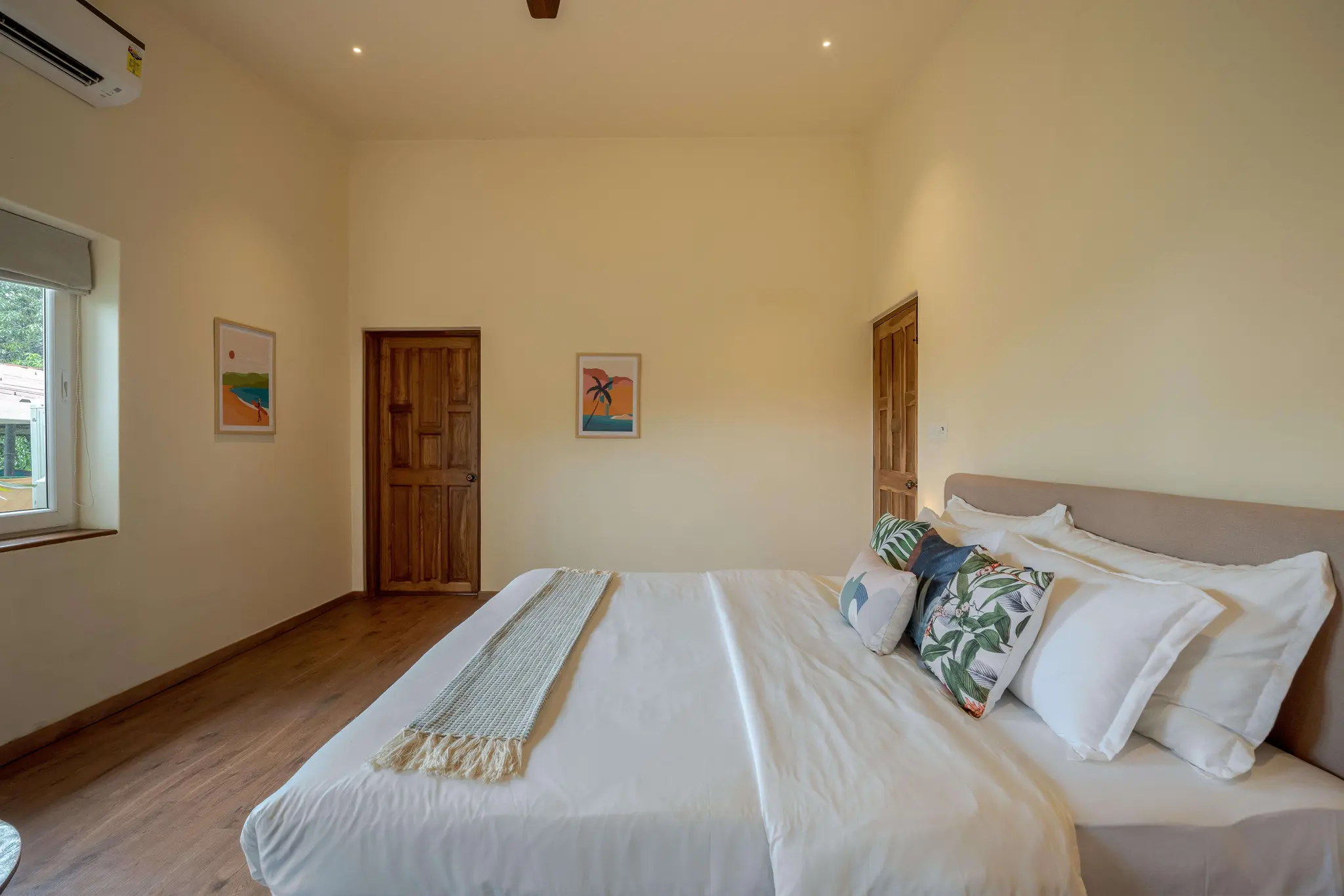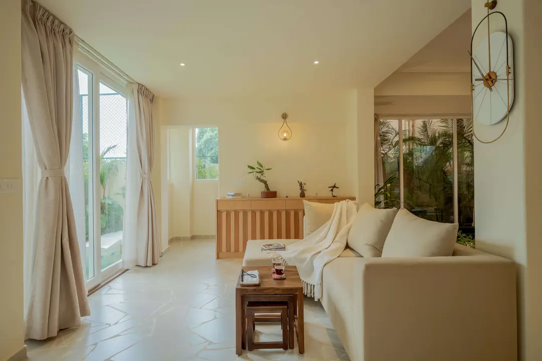 Just 800 meters from Vagator Beach and 900 meters from Chapora Fort, Oslo is a stylish, pet-friendly luxury villa offering warm Pinterest-inspired interiors, a glowing tropical pool, and sunken seating with a projector for unforgettable movie nights.