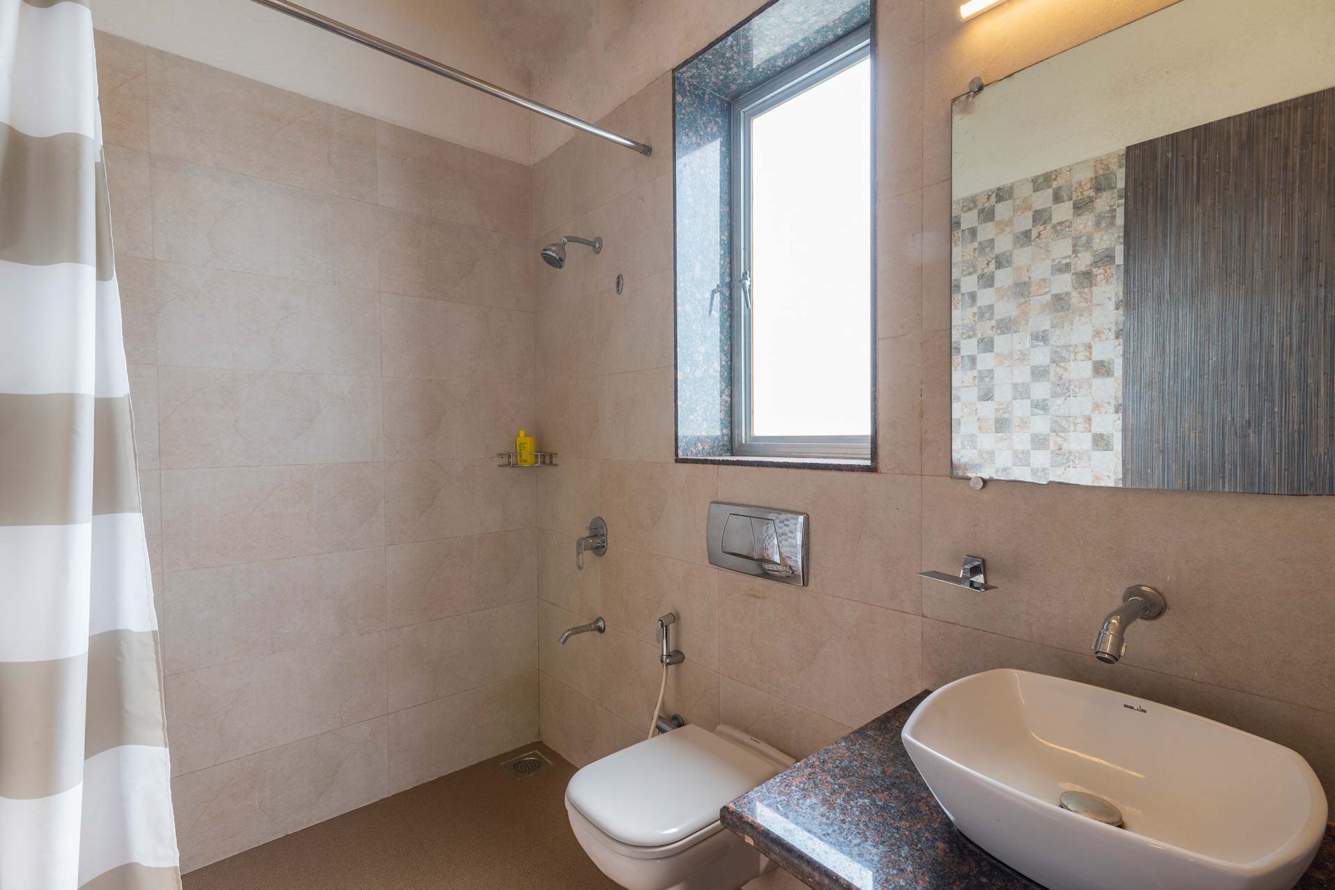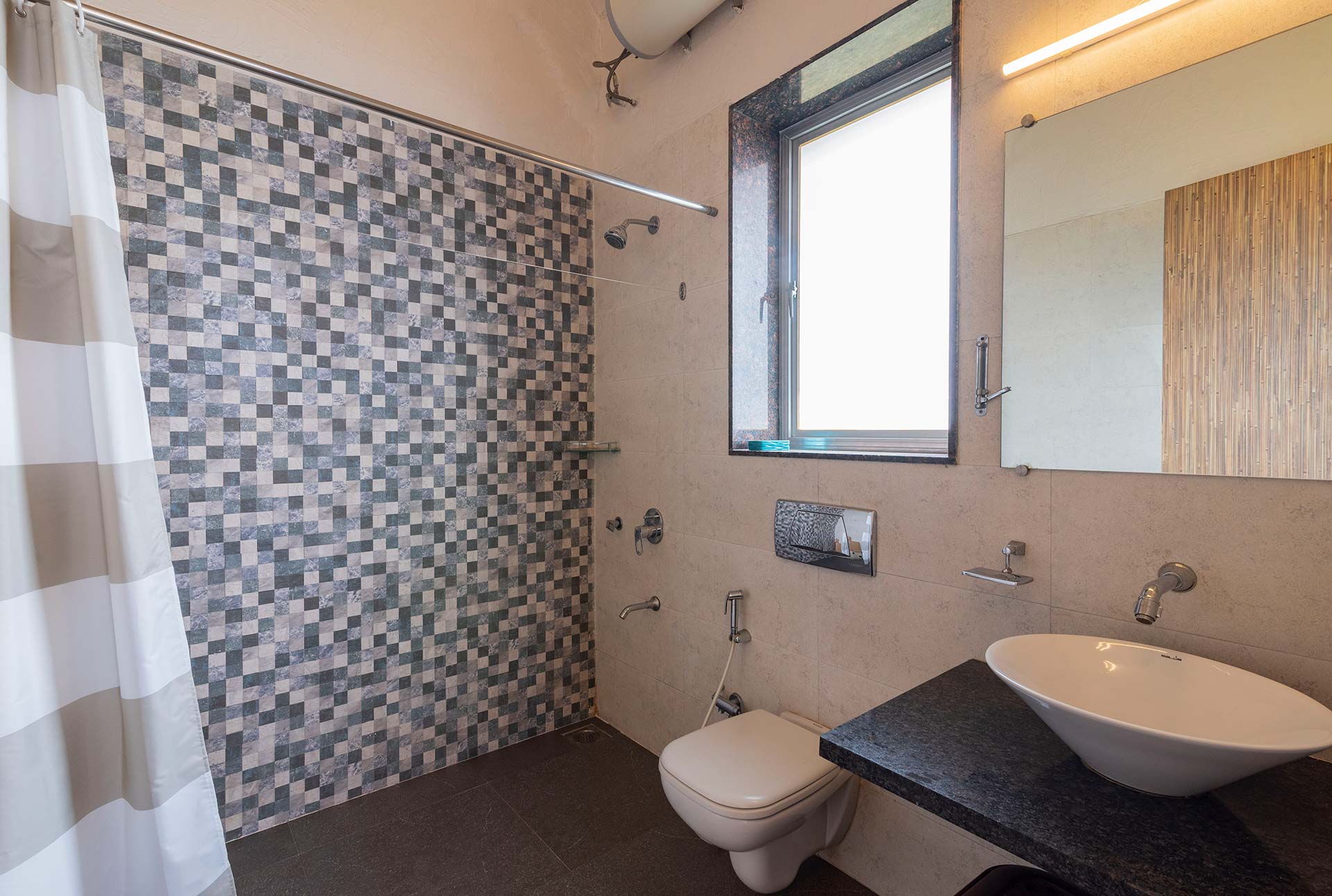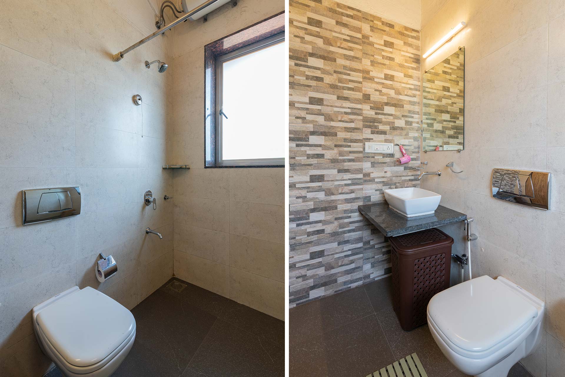 – The bathrooms are modern and have geysers for hot water supply