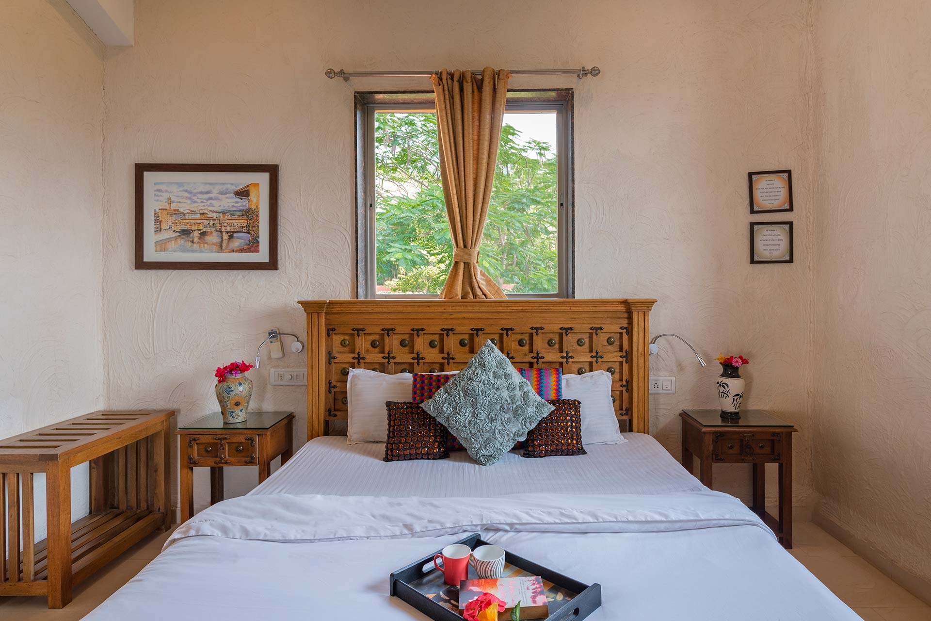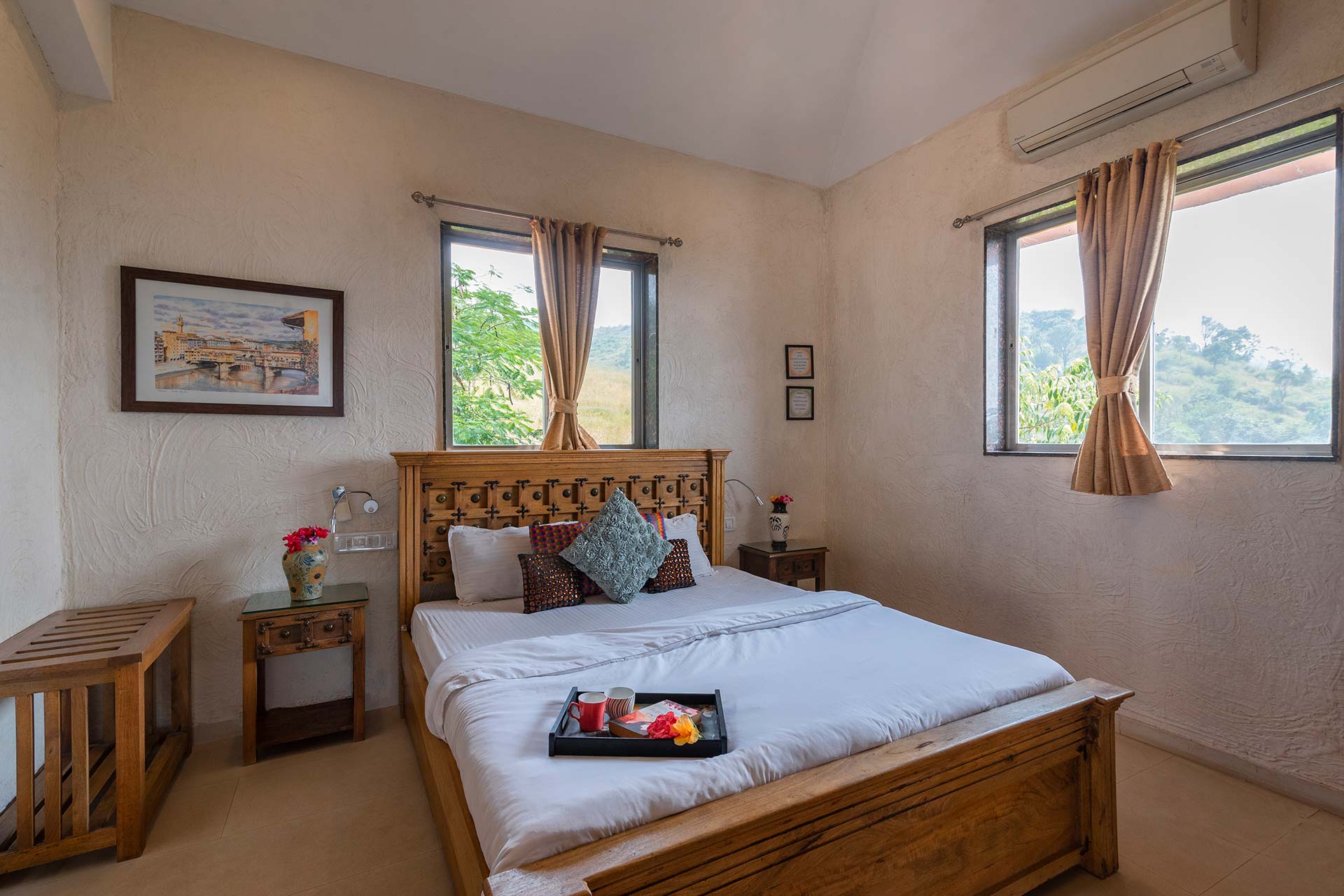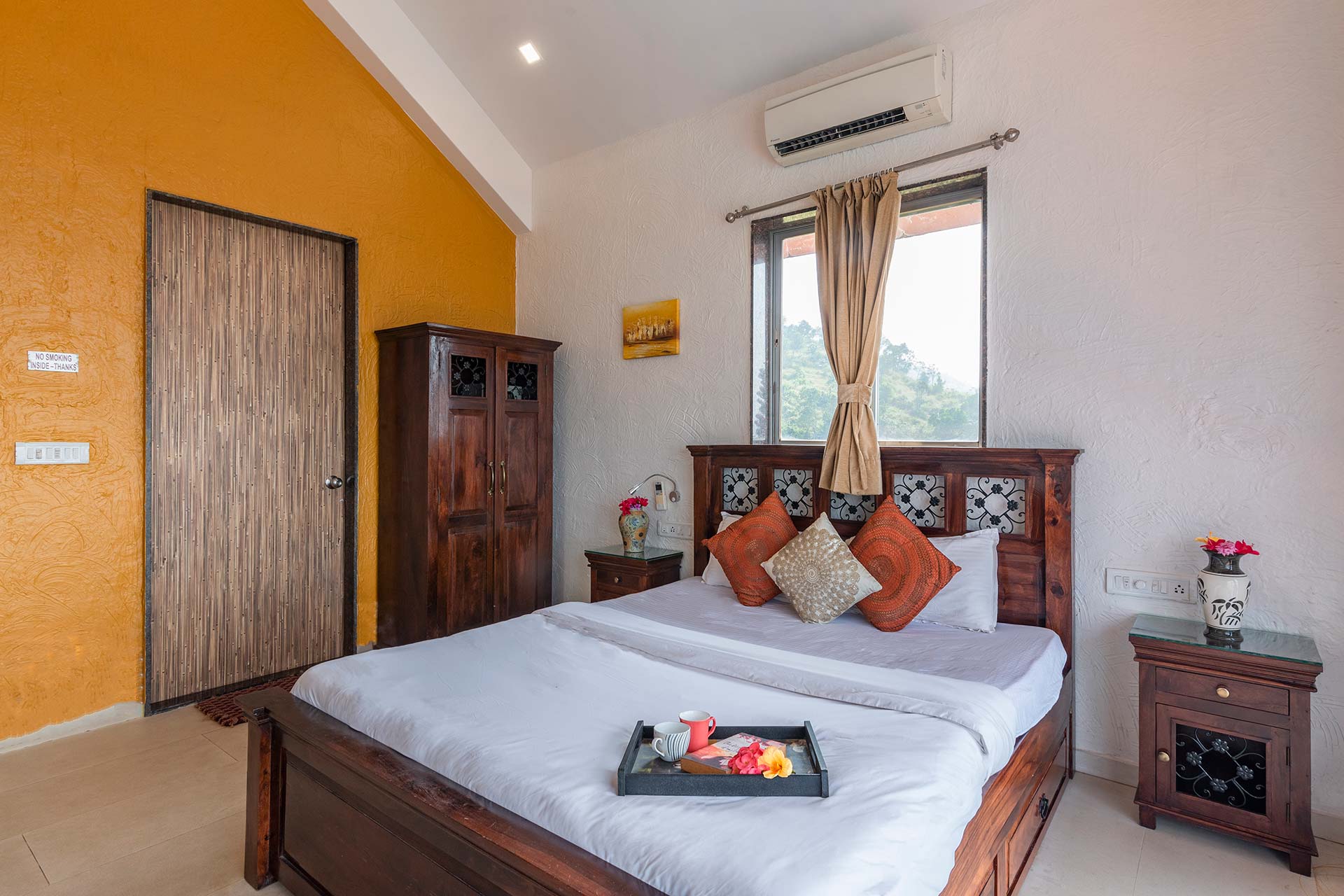 – Each room has a double bed and can accommodate upto 3 people in each room with an extra bed (extra mattresses would be provided)