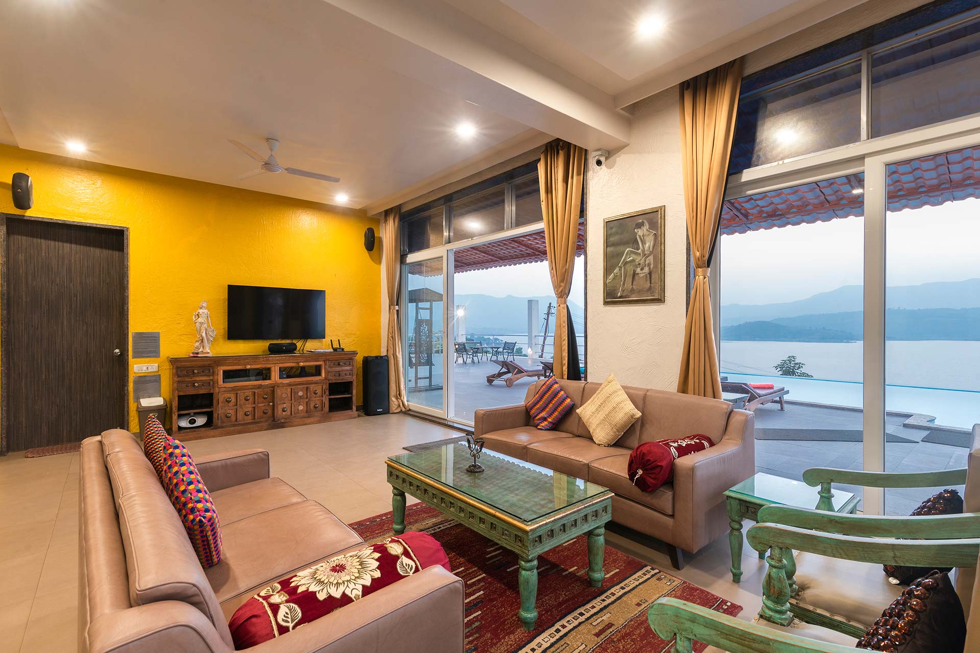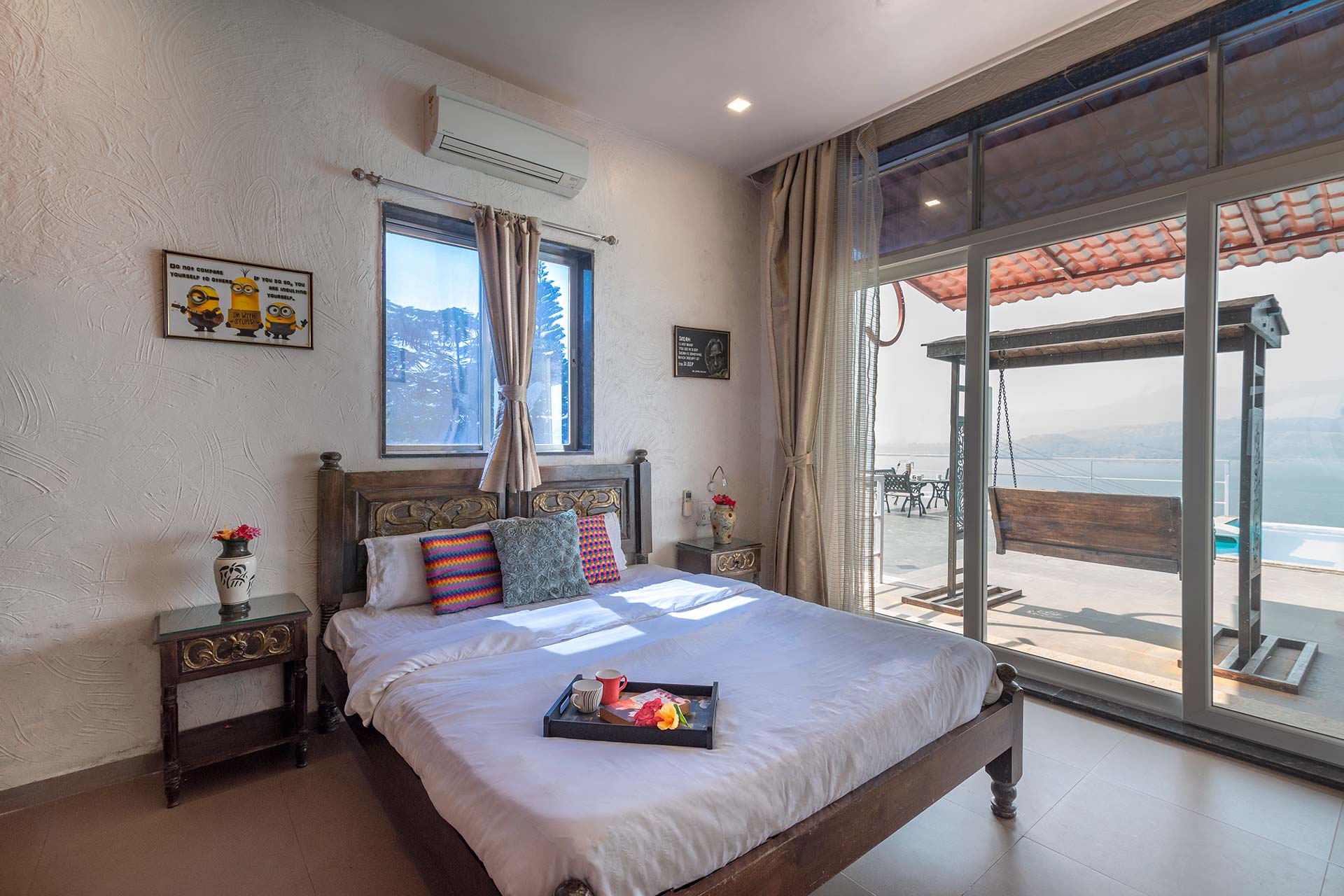 – The villa has a private Infinity pool overlooking the Pawna lake and can easily accommodate upto 10 people