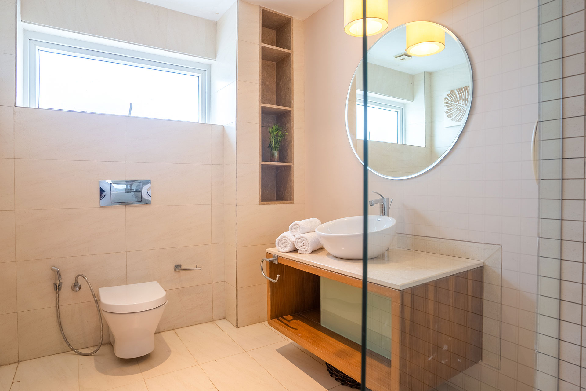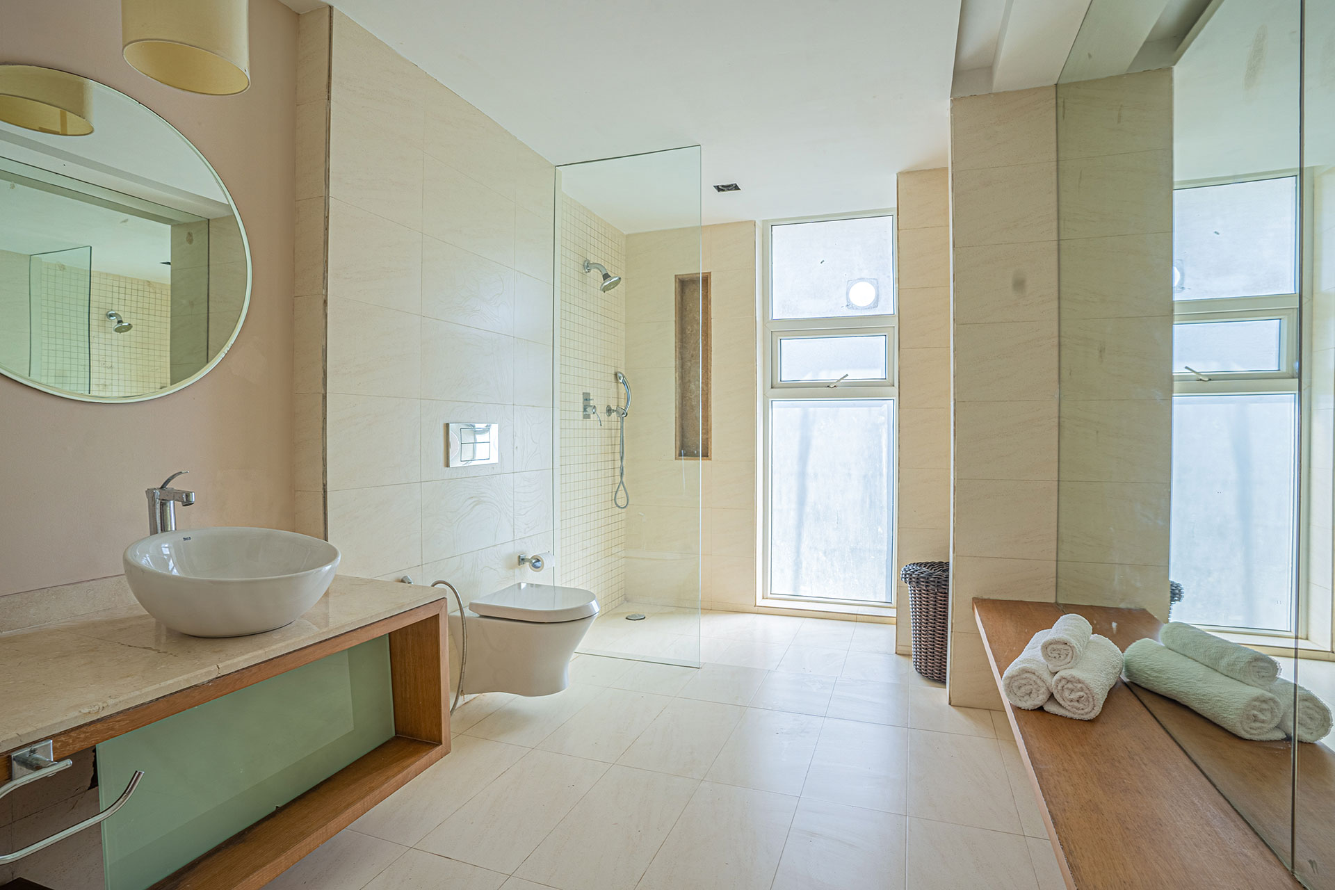 – There are 3 bathrooms in the apartment – all attached.