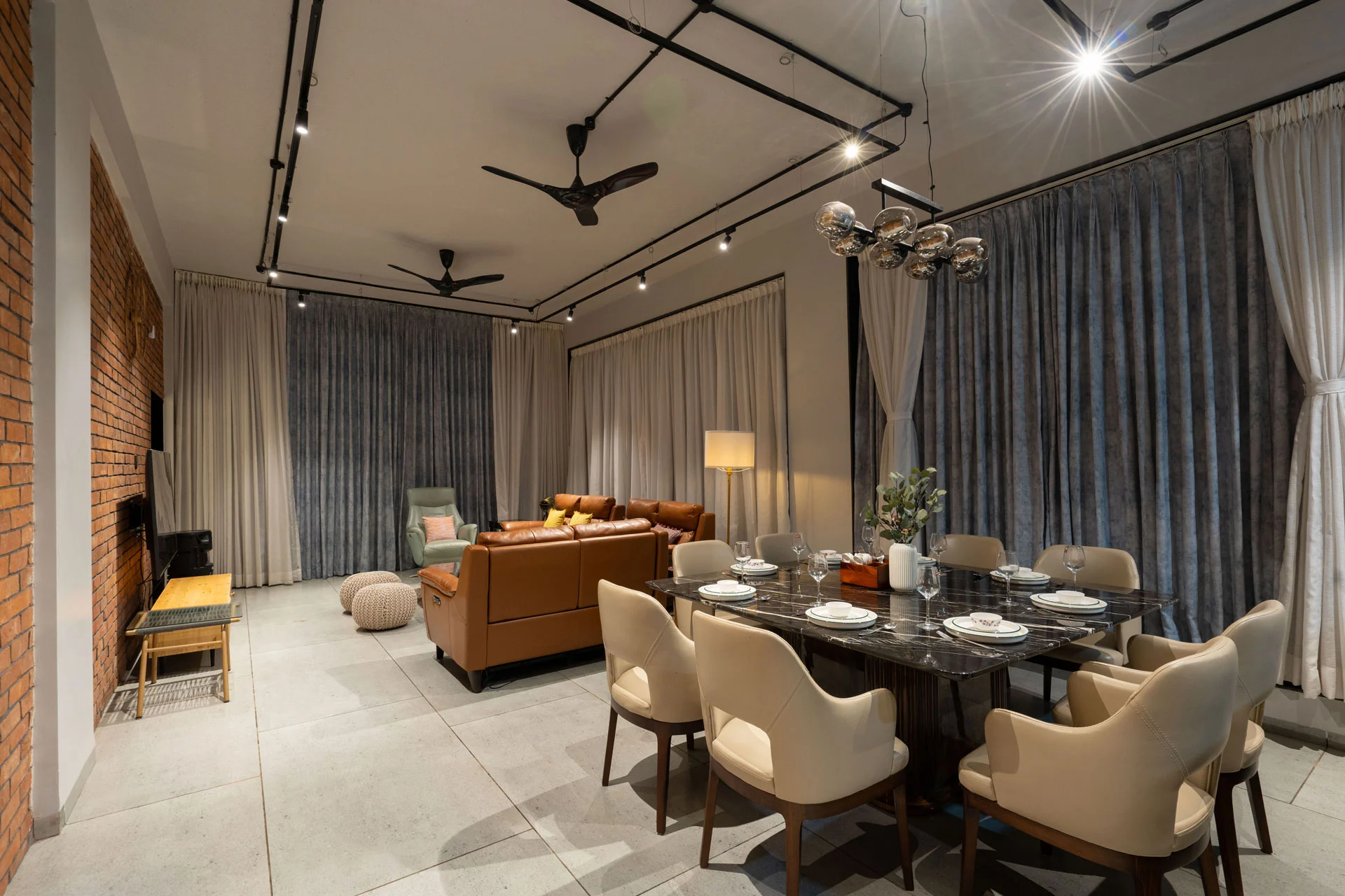 This space has beautiful chandeliers installed that illuminate the areas as you munch on some grubs.