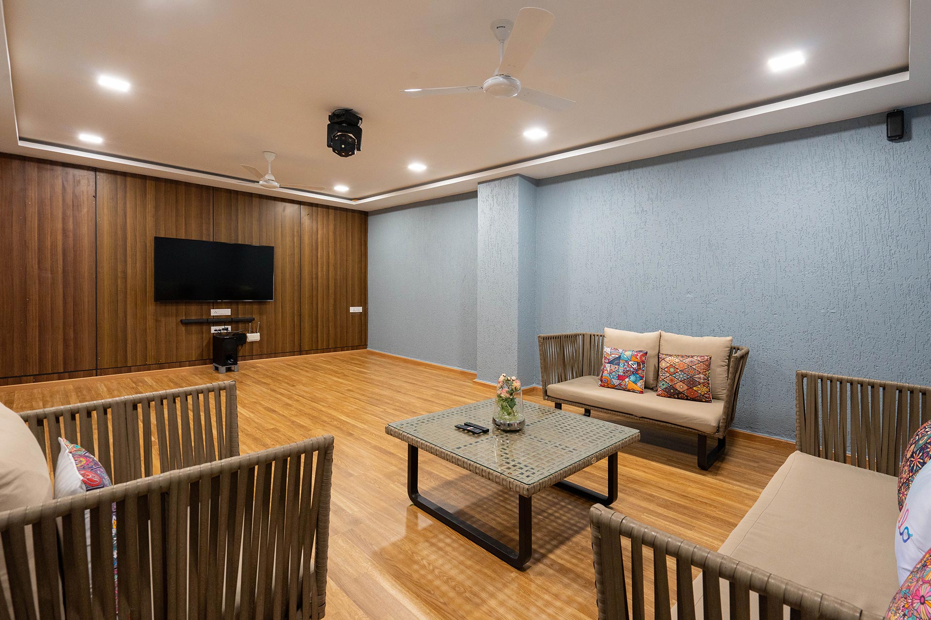 – Theatre-cum-disco room that has ample amenities like disco lights and a home theatre system to keep the young and old entertained.