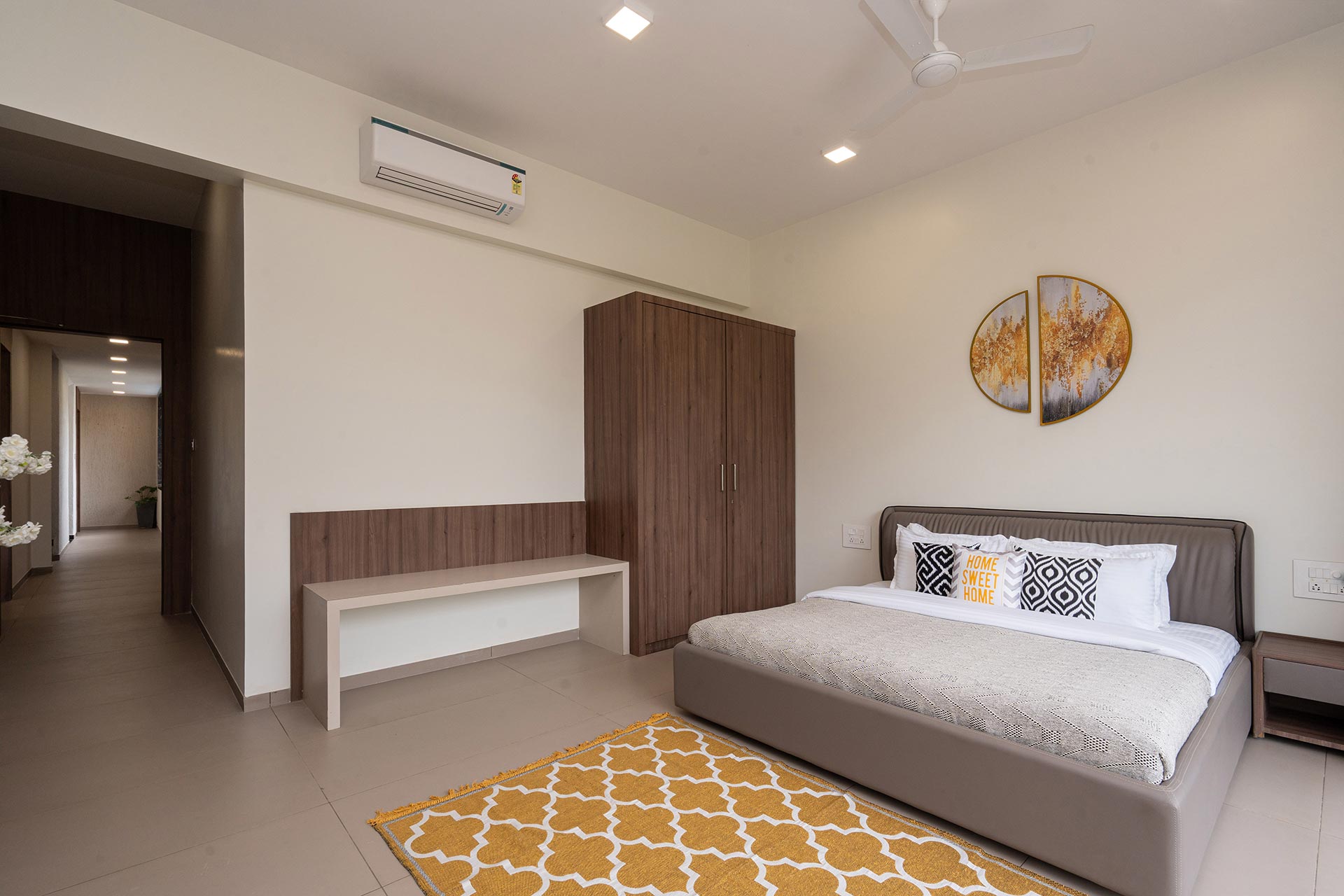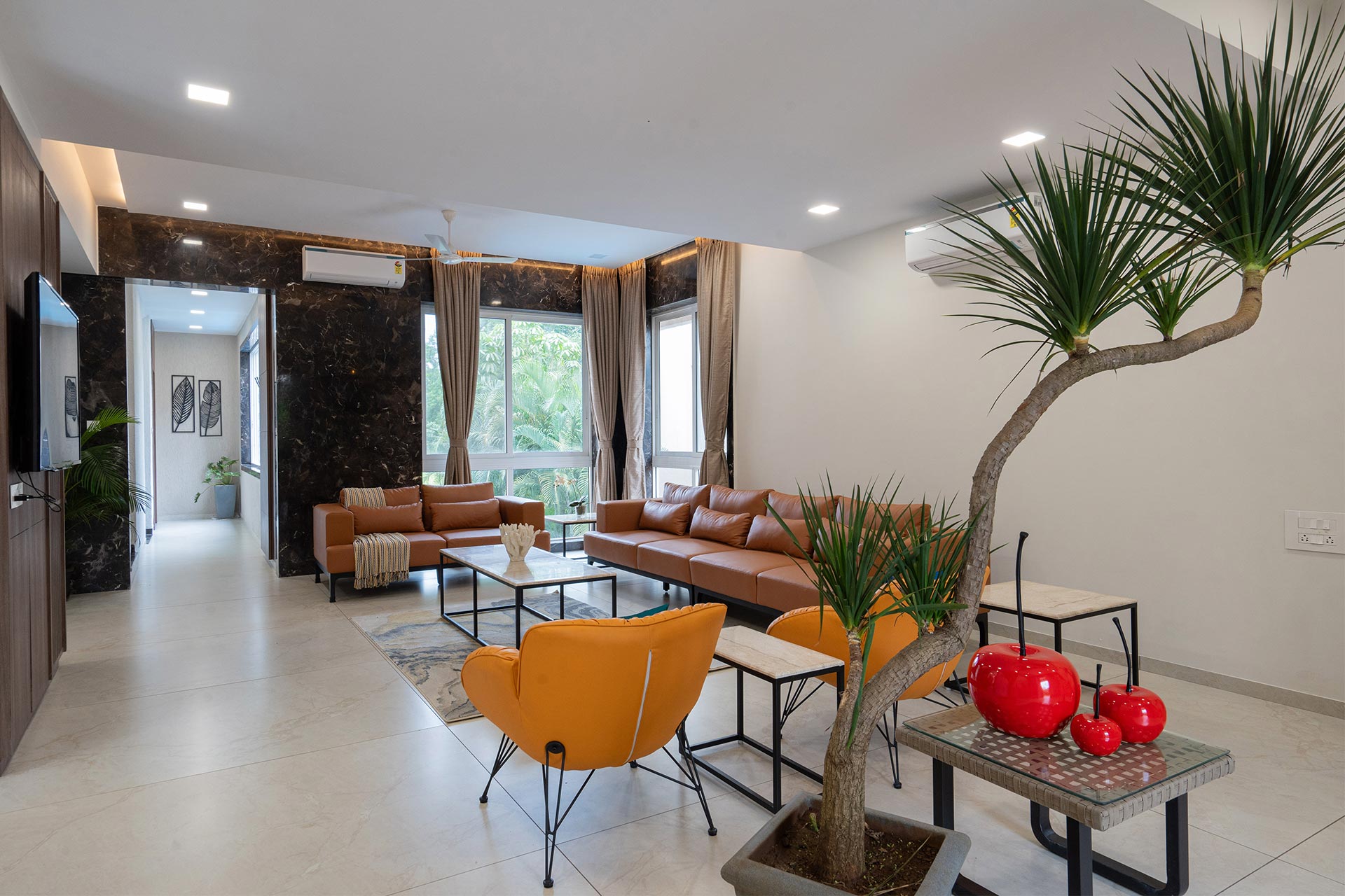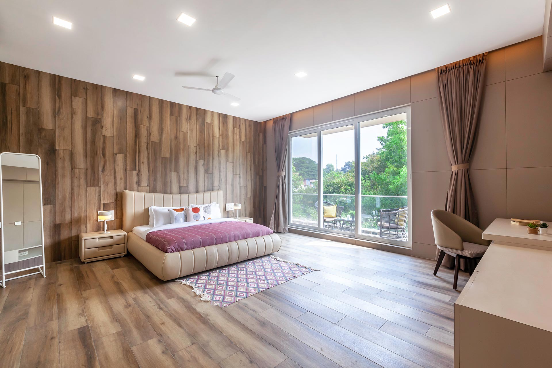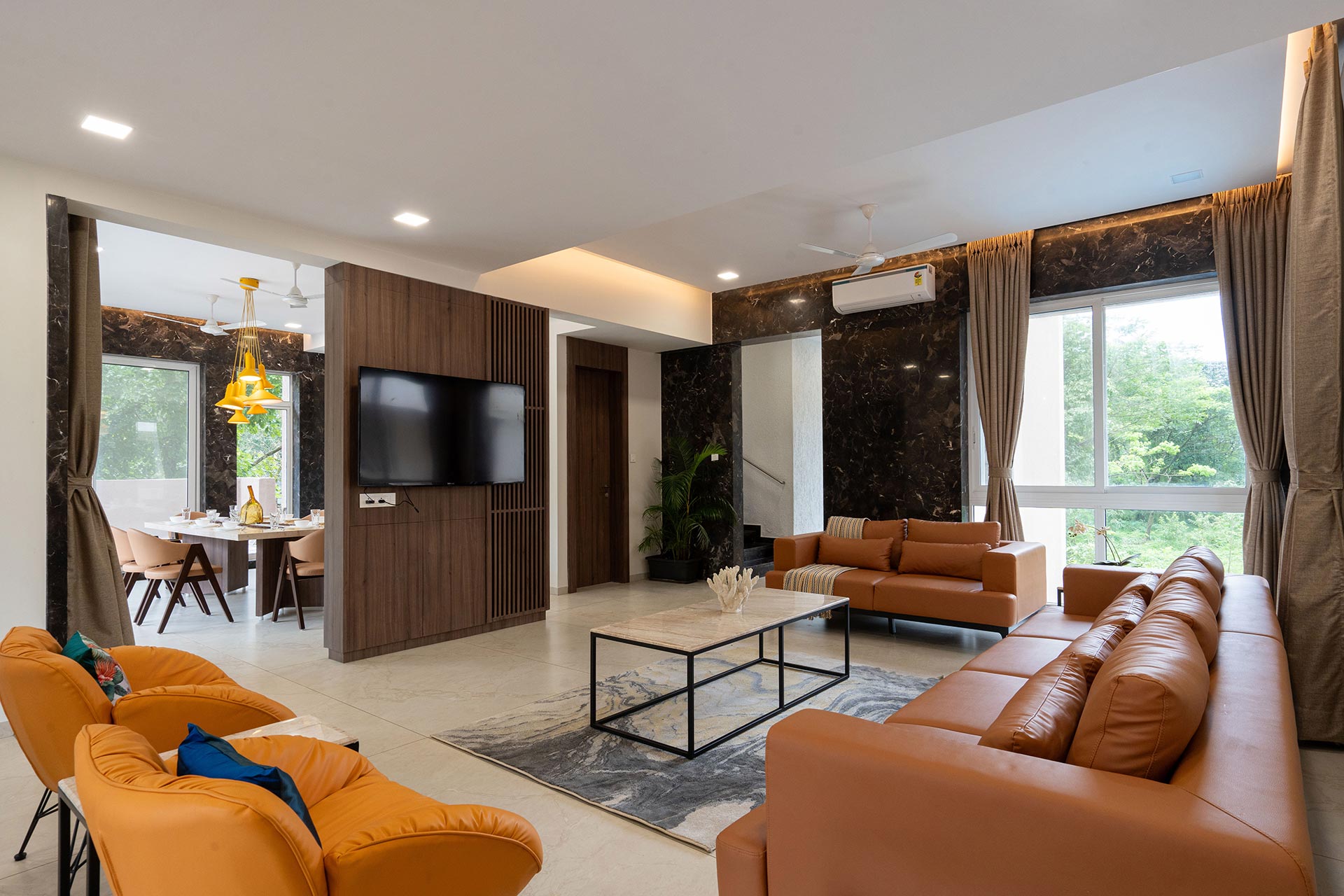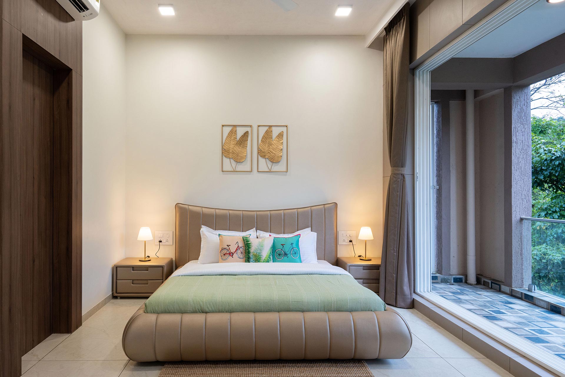 Rosso offers a striking blend of contemporary interiors and decor that perfectly complements its elegant facade. Nestled amidst lush greenery, the villa boasts a spacious lawn that’s not just a feast for the eyes but also ideal for fun games or group yoga sessions, allowing you to connect with nature while enjoying your stay. For entertainment, look no further than the stunning theatre-cum-disco room. Here, everyone can immerse themselves in a world of music, movies, and dancing, ensuring that there’s never a dull moment.