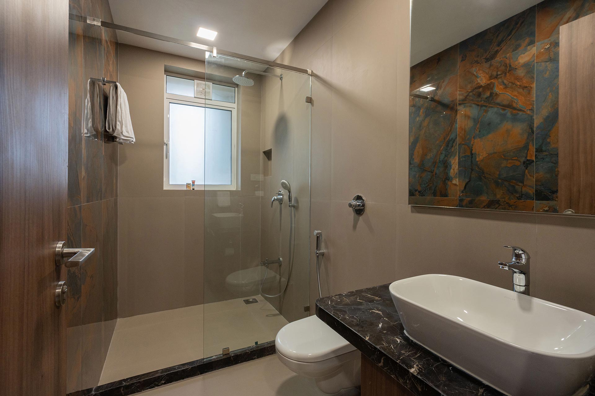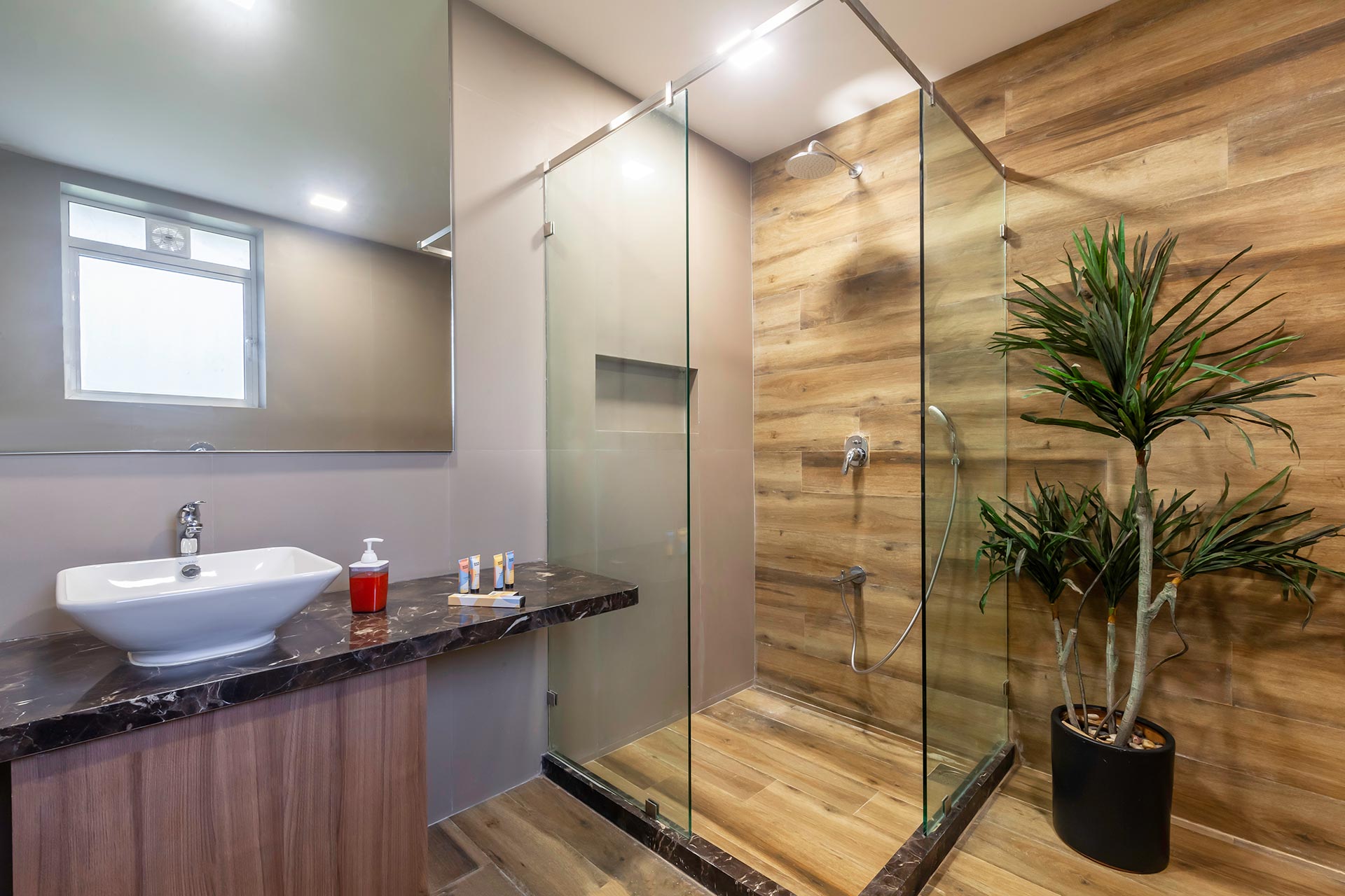 – Elegant facade that compliments the contemporary interiors and decor.