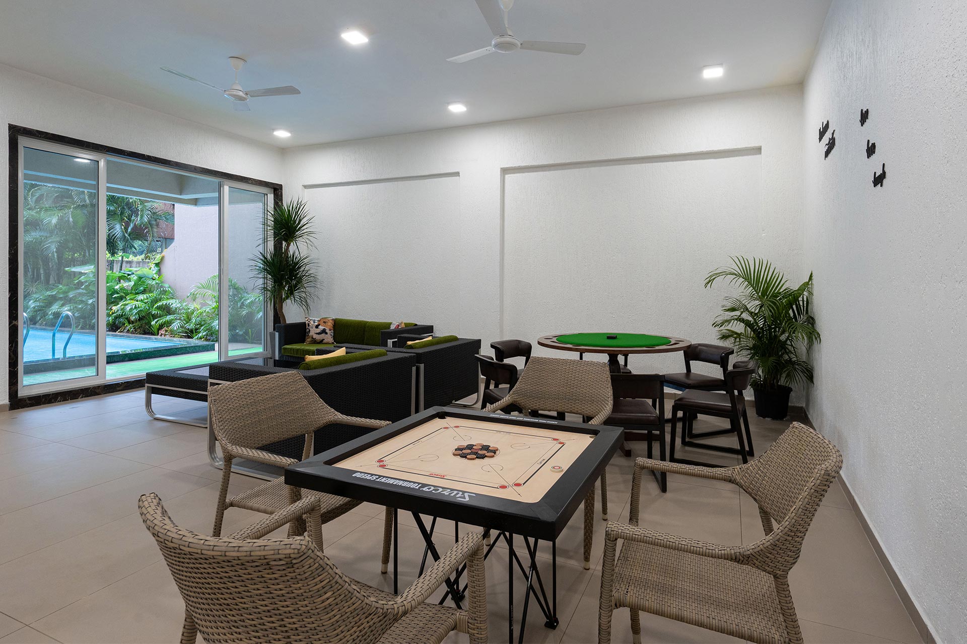 – Game room with poker table, carrom and pool table for challenging activities.