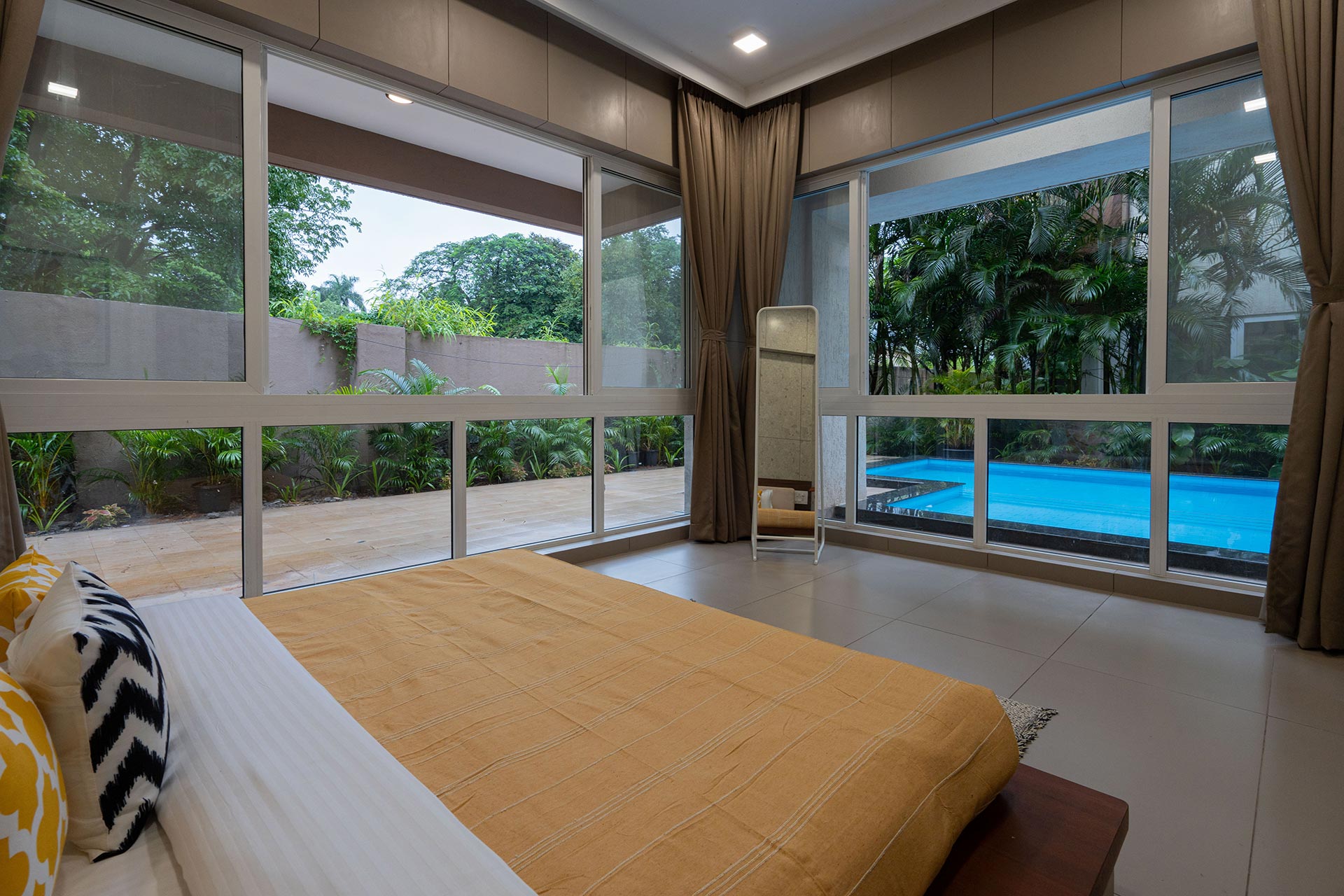 Beyond its classy facade and contemporary decor, this villa is a haven of entertainment and relaxation for guests of all ages. The sprawling lawn beckons for outdoor fun and relaxation. Gather your friends and family for exciting games or embark on a group yoga session, breathing in the crisp mountain air. Enjoy the blissful outdoor swimming pool, whether you want to soak up the sun during the day or float beneath the starry night sky. It’s an oasis of relaxation and rejuvenation. For outdoor enthusiasts, a scenic cycling track surrounds the villa. Explore the picturesque beauty of Lonavala while enjoying an invigorating ride.