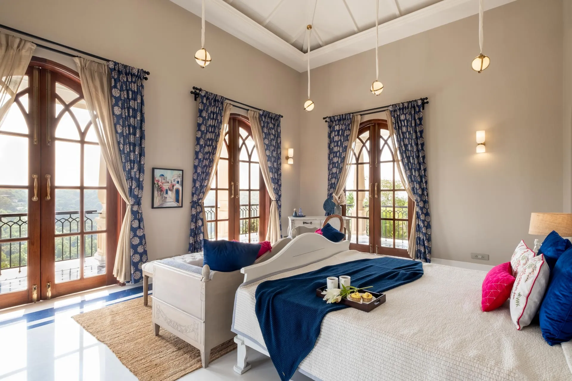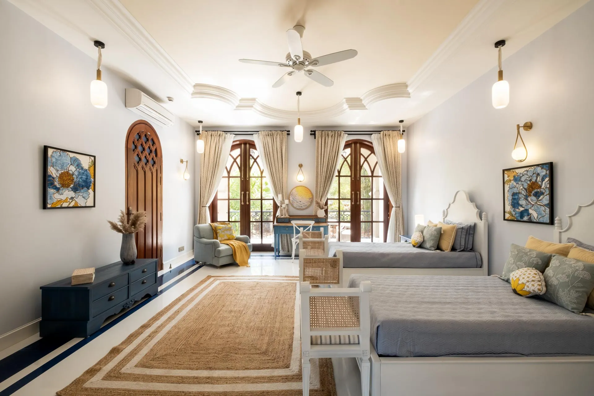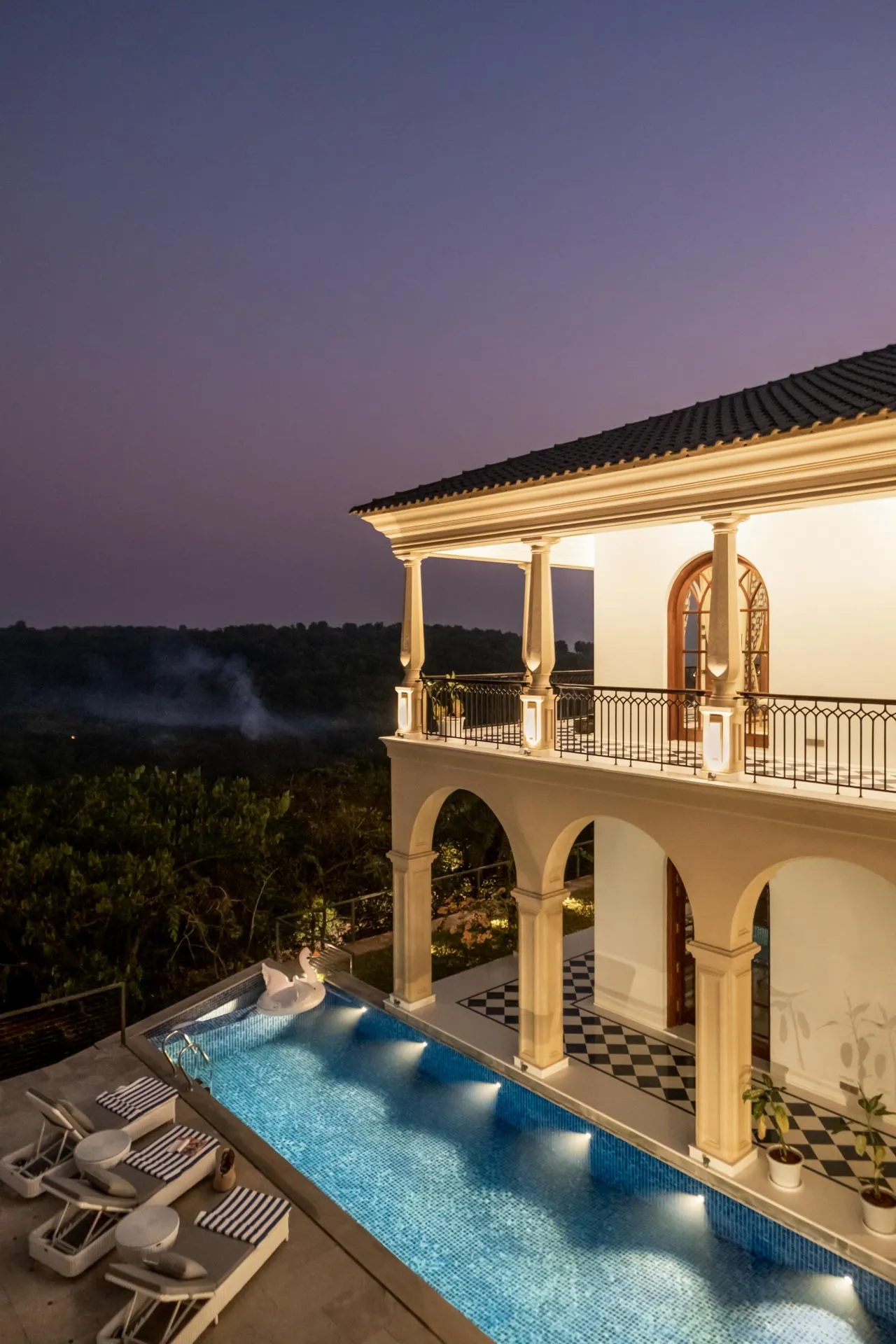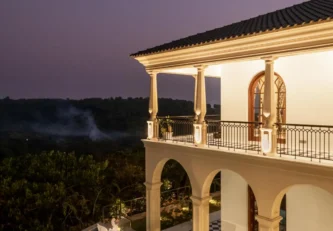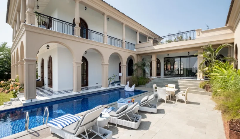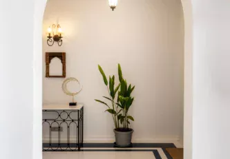 Set atop the hills of Mandrem, Sacri Borod Hill 6 is part of an exclusive villa community in Goa. Boasting majestic Mediterranean architecture and ethereal views of the surrounding vegetation, the villa is an idyllic getaway for large groups. Find a cosy corner in one of the 5 ensuite bedrooms or gather with your friends and family in the elegant living room. Enjoy a playful match in the games room or watch the sunset from one of the balcony sit-outs overlooking the Ashwem sea. Dip in the private pool or take a stroll in the luscious green gardens.