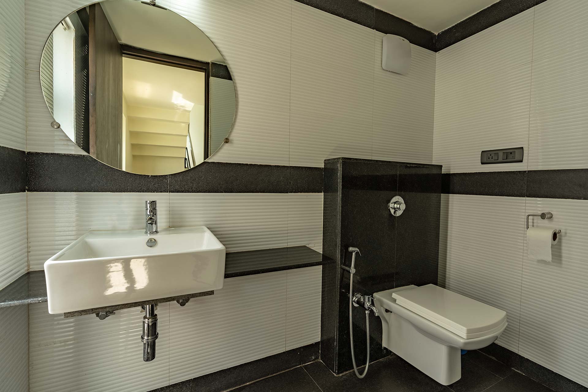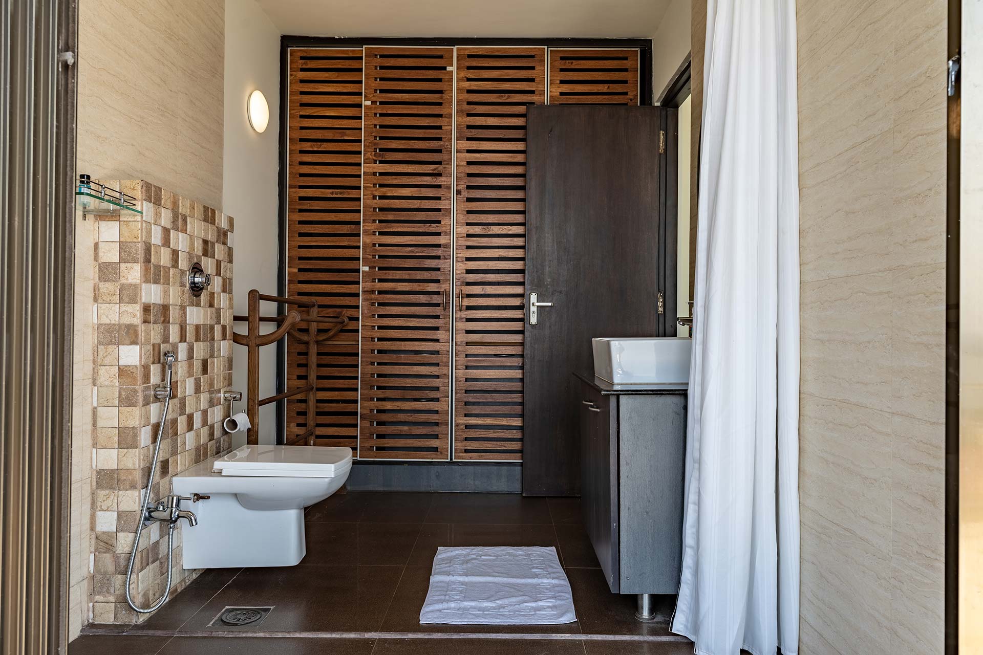– There are 5 bathrooms in the villa – 4 attached, 1 common bathroom on the lower ground floor.
