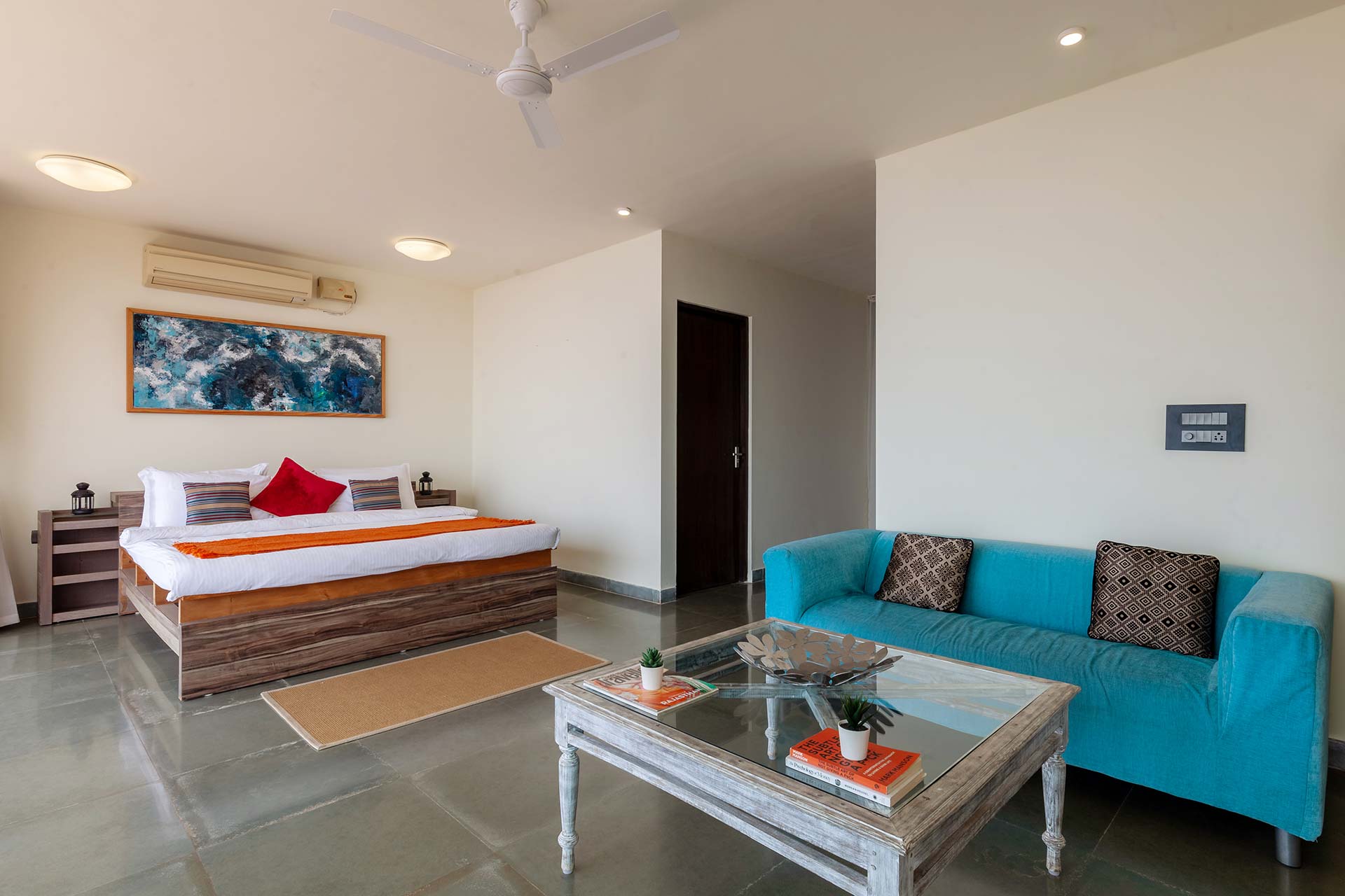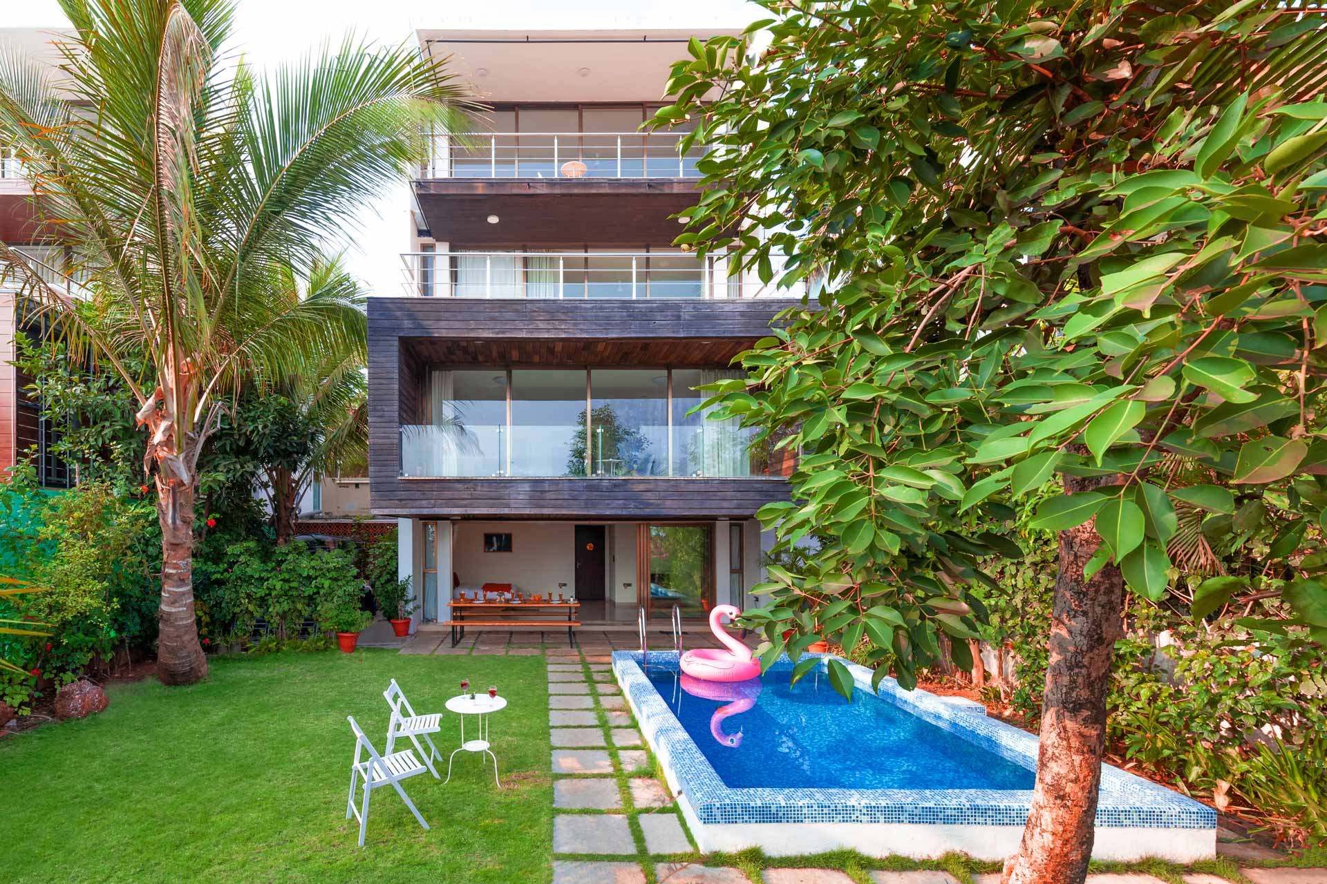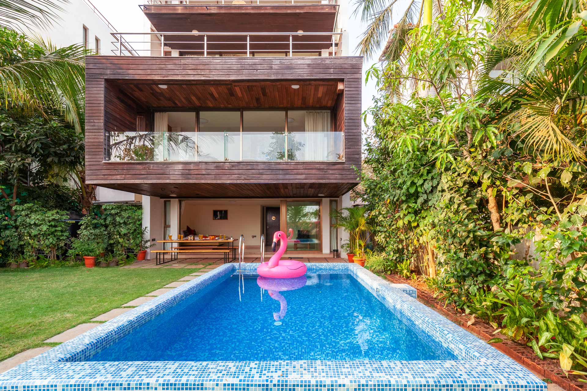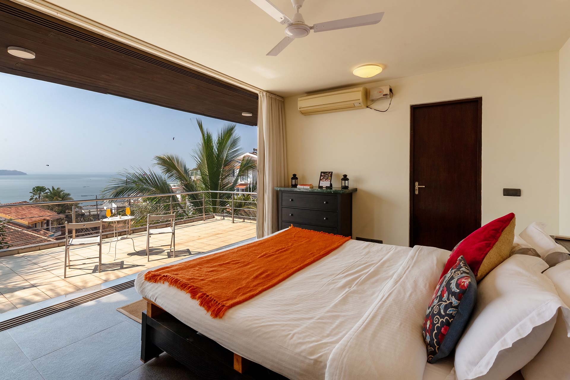 Ready to experience the best of Goa? This vibrant seaside home is a perfect treat for your family. The gorgeous, picture-perfect view, swimming pool and private garden are few of the many things you will love about this villa. The spacious indoor and outdoor space gives you ample room to move around freely. Make the most of the attached balconies to enjoy panoramic views of the sea, and gather around a bonfire in the evening to enjoy Goa’s beautiful weather.