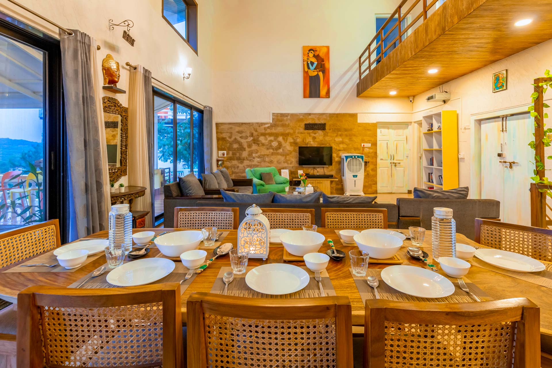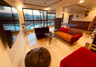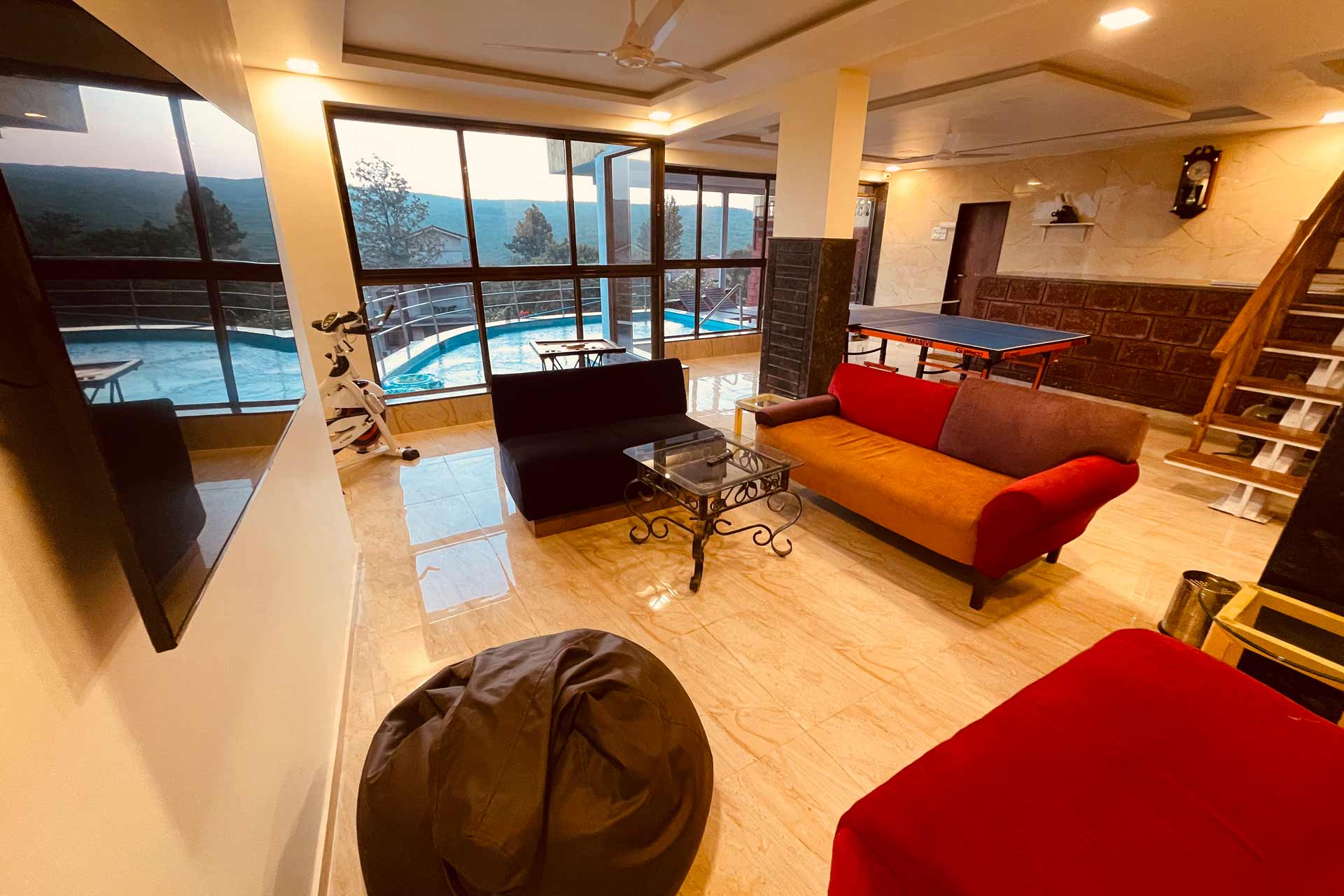 Within the property, guests can enjoy the beautiful 180-degree view of the valleys. There are three lawns at this property where guests can meditate in peace or take a long, relaxing walk while soaking in the mind blowing view of the mountains covered with mist. Guests can also take a swim in the curved-shaped swimming pool or play indoor games like cards and ludo & relax on the sun deck. Playden area provides indoor games such as carrom, table tennis, TV, guitar, foosball, & board games. They can also request for a bonfire to be lit up or relish a delicious barbeque meal while sipping on drinks of their choice. Guests can enjoy playing badminton & cricket with their family & friends. Experiences like karaoke set with 2 mics, tent stay, couples’ hammock, cafe style dining, viewing deck, and star gazing can also be availed.