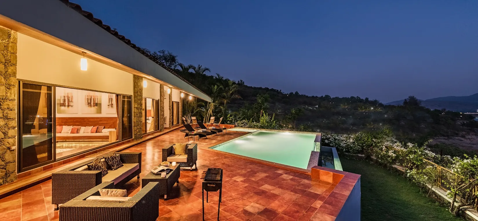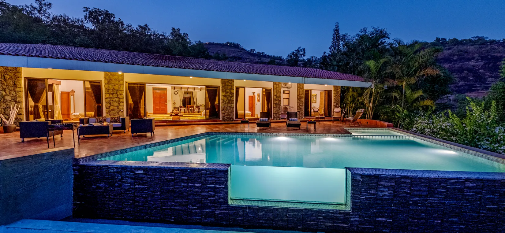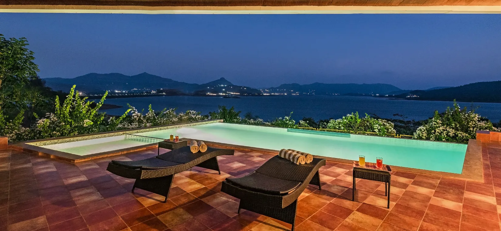 - The villa has a vast open deck with an infinity pool stretching out to the skies that are perfect for stargazing, or quite literally, sleeping under the stars. The monsoons are prefixed with fireflies glowing all around, rainbows, mists and the best view that Pawna can provide.