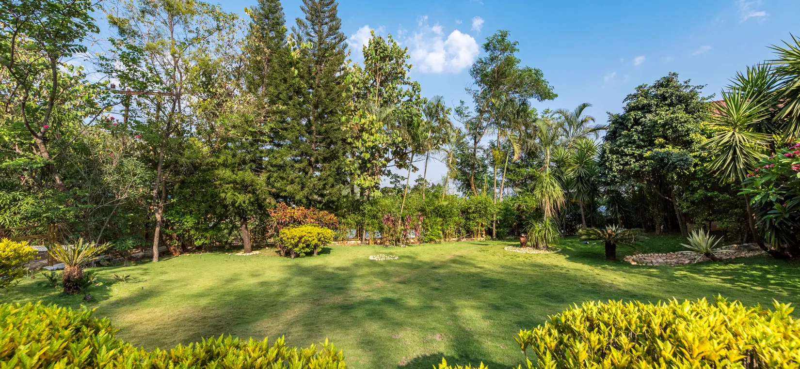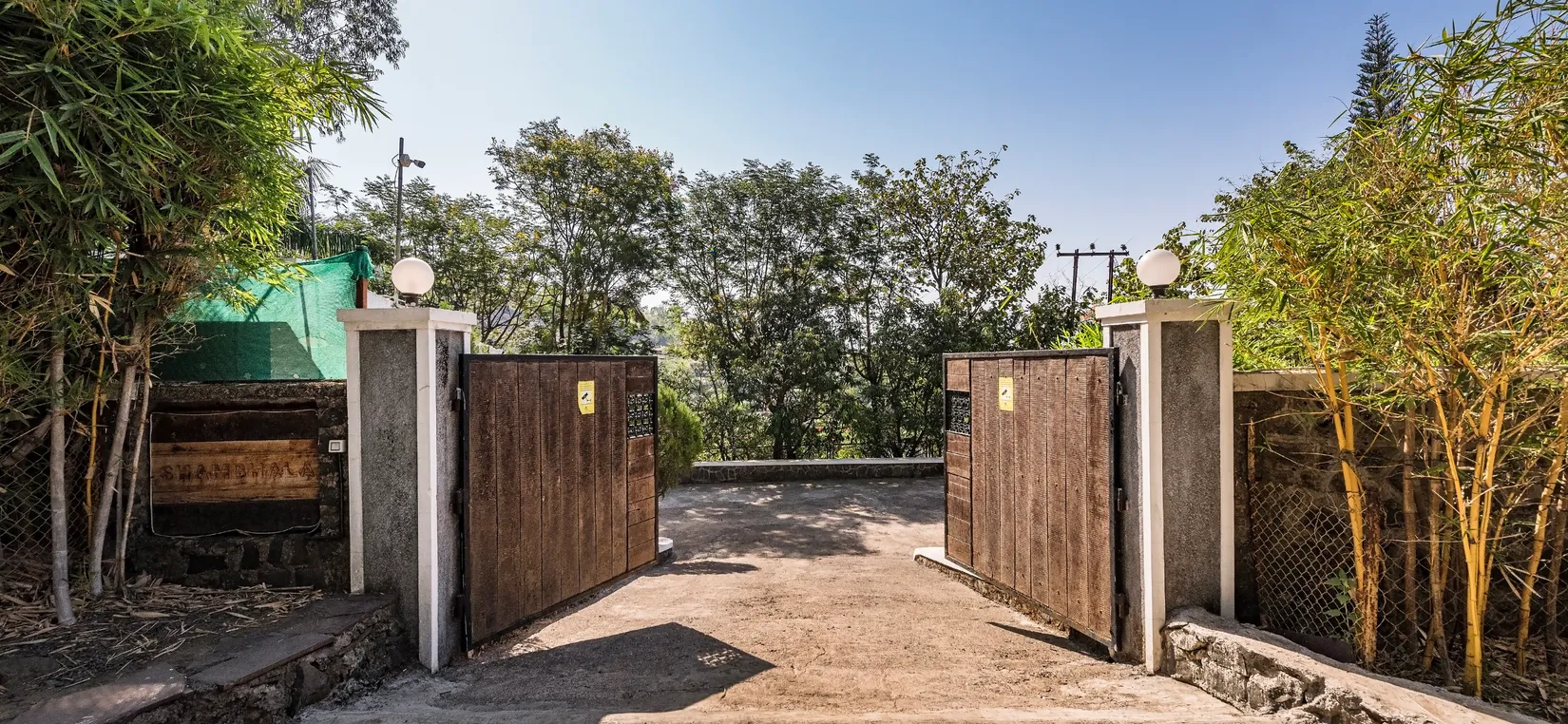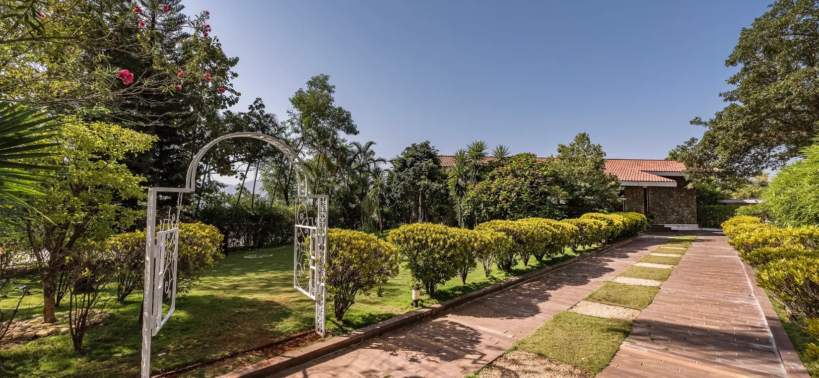 - Enter the gates to a large garden that leads you to the home located in a quaint corner of the vast premises.