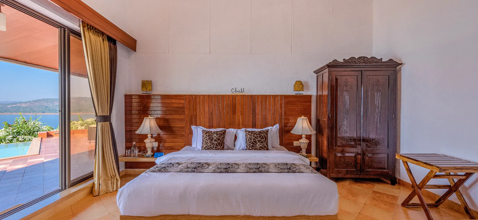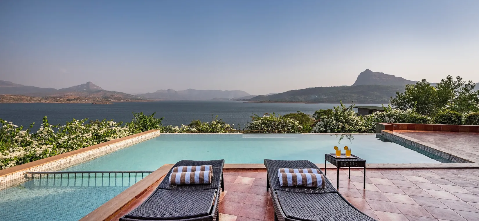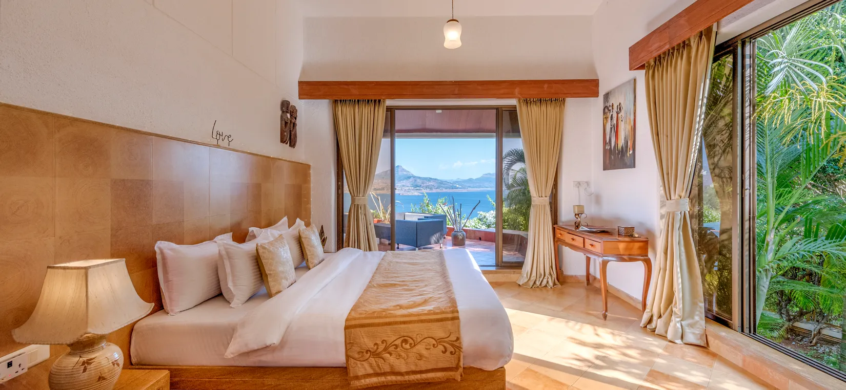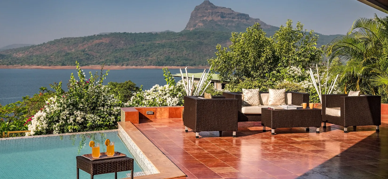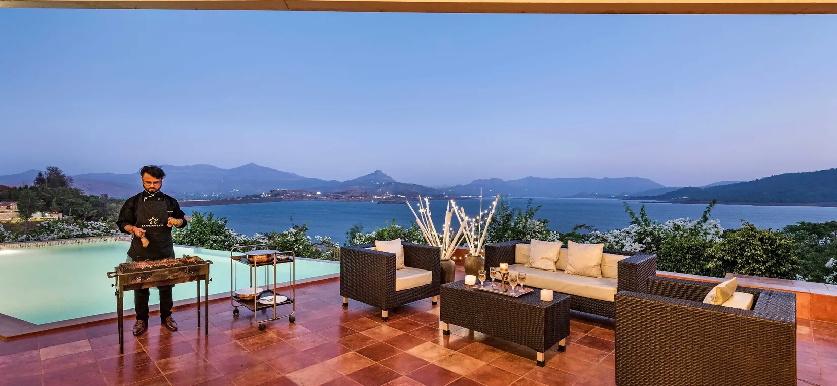 - With the most breathtaking view of Pawna Lake for as far as the eyes can see, SaffronStays Shambhala Lakeside is a luxurious 3-bedroom villa with an infinity pool nestled amidst nature on a lush, sprawling property.