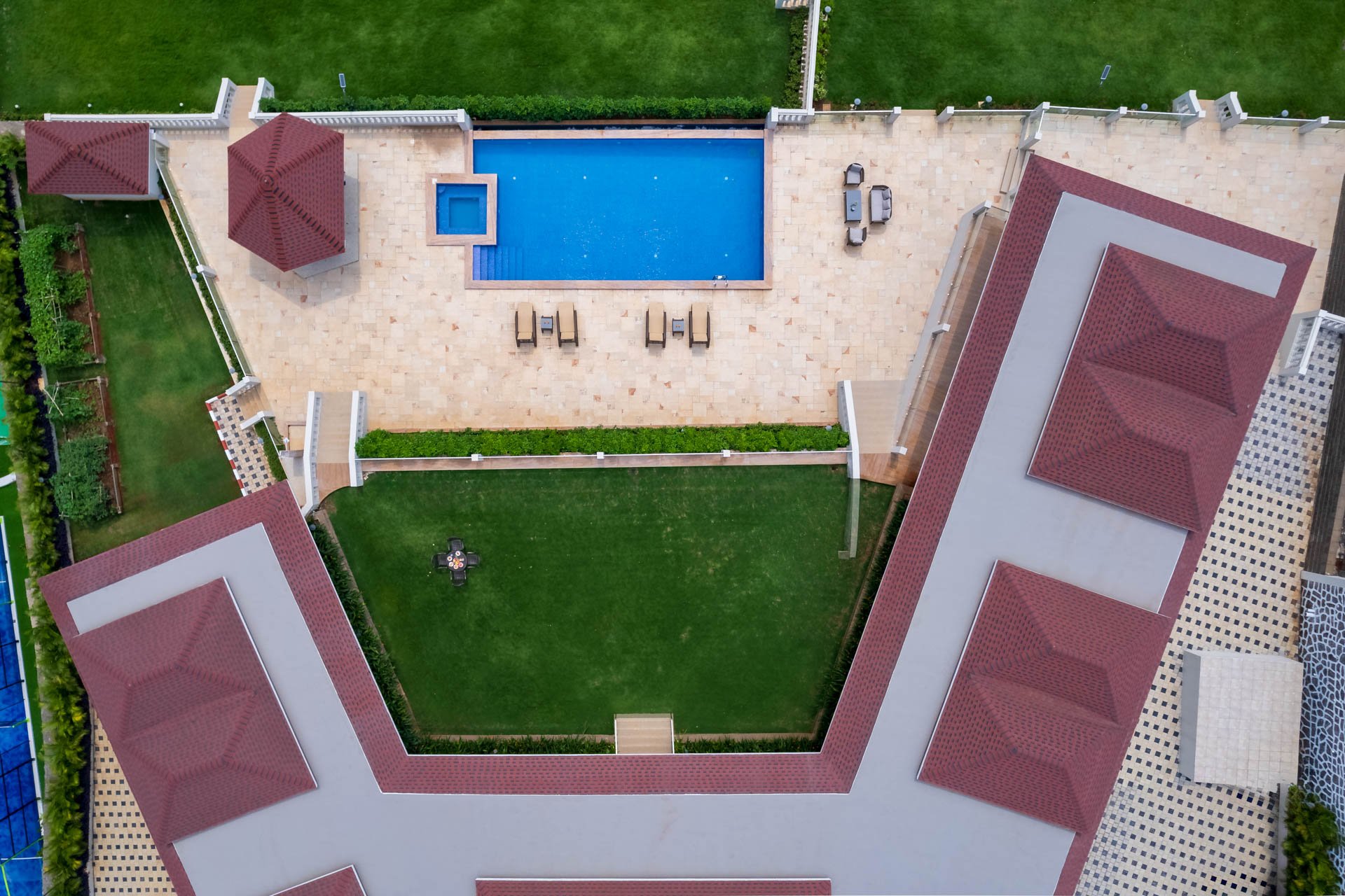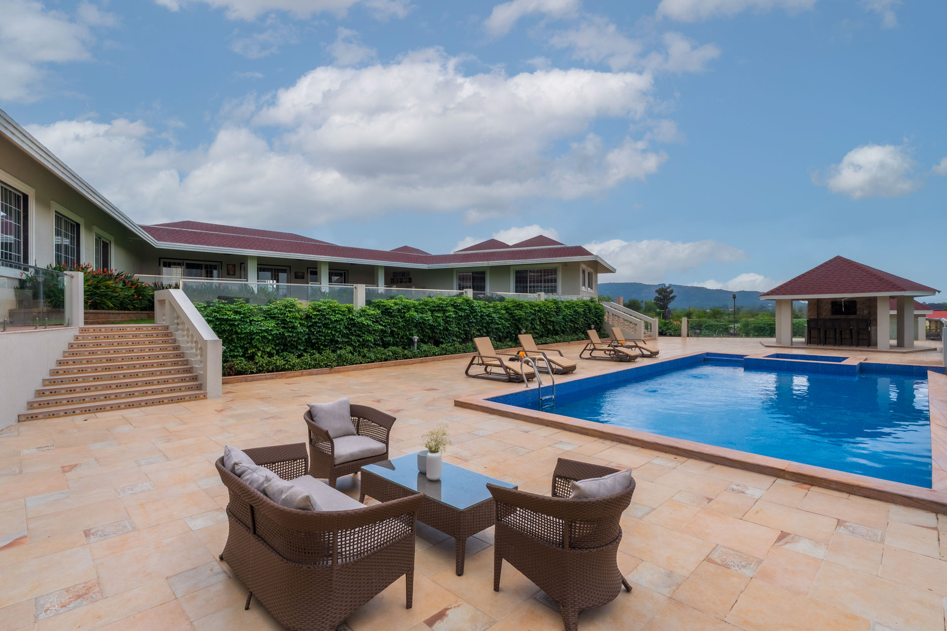 – Private outdoor pool with a jacuzzi, a haven for lazy lounging and refreshing dips