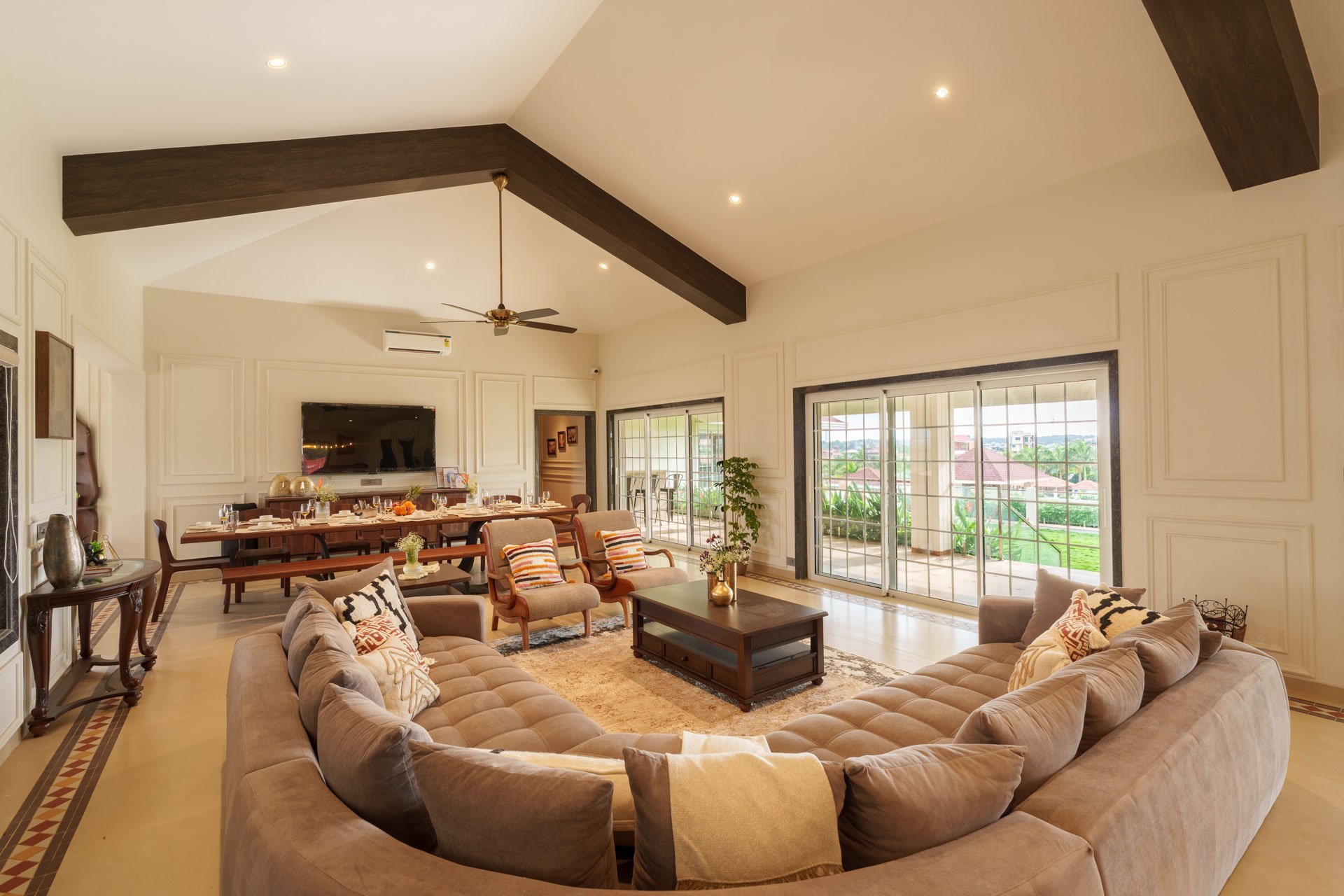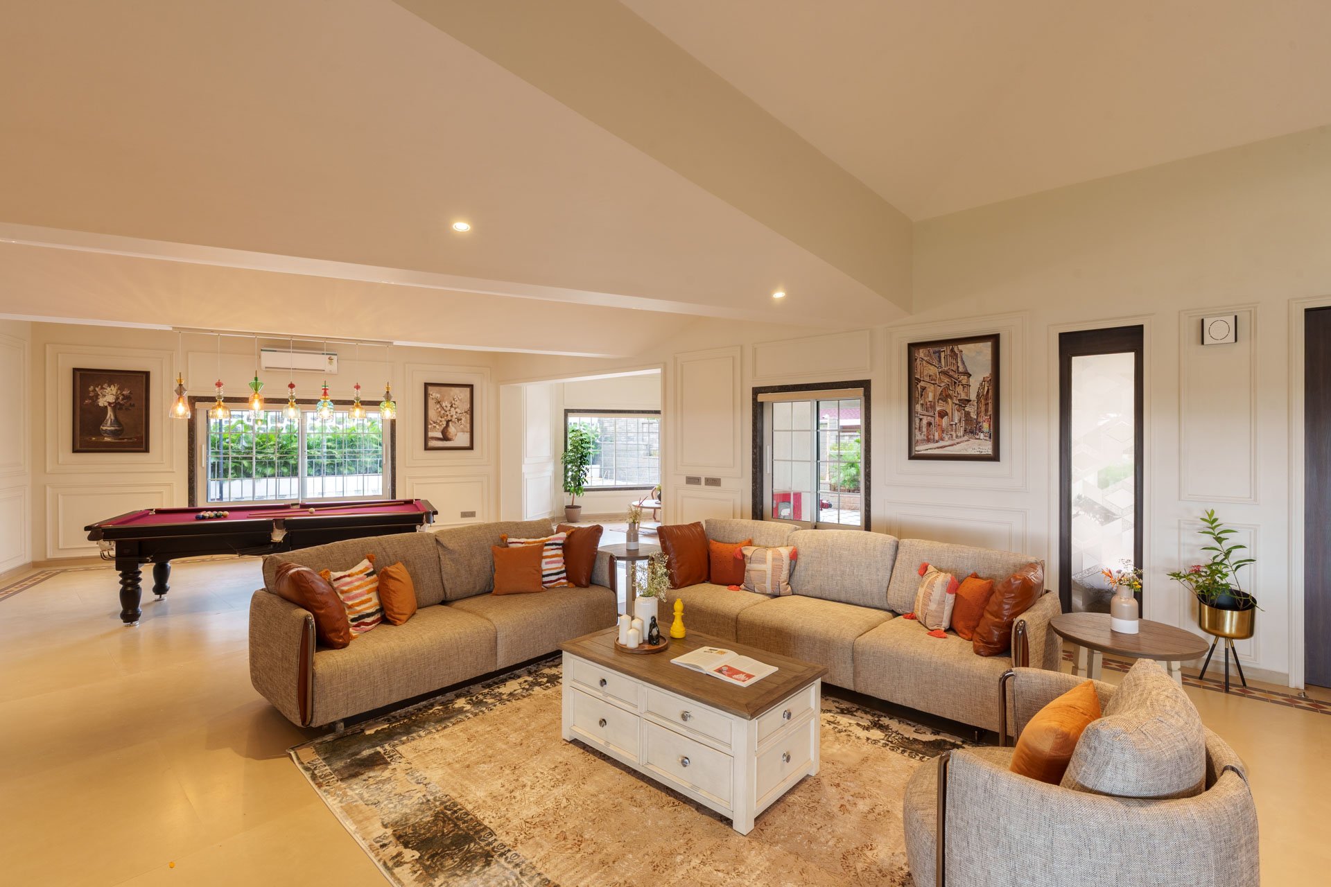 Bigger, bolder, and brimming with luxury— Sicily is not just a villa; it’s an experience. With seven sprawling bedrooms, this majestic retreat in Lonavala is perfect for big families, corporate getaways, or intimate celebrations. From the outside, it exudes grandeur; from the inside, it’s a masterclass in sophistication. Think neutral-toned elegance, high-end furnishings, and luxe amenities that make every stay unforgettable. Whether you’re lounging by the shimmering pool (yes, there’s a jacuzzi, too!), unwinding on the lush lawn, or even squeezing in a quick workout at the in-house gym, there’s never a dull moment here. And the best part? It’s a quick escape for both Mumbai and Pune folks, making it the staycation you didn’t know you needed. So pack your bags, bring your crew, and get ready to live the luxe life at Sicily.