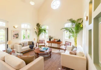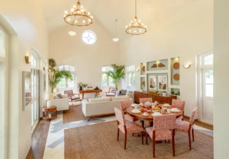 With a Greek inspired spatial language, Silvio Villa A is the perfect blend of old-world elegance and modern comfort. Part of an Isprava -built gated community in the heart of Assagaon, the two-storied home comprises 3 ensuite bedrooms, a living and dining room, a terrace and a private pool. The minimalist palettes and silhouettes, cane finishes, botanical murals and coloured prints bring to life the balance between the tropical colonial style interiors and boho chic aesthetics. Get away with family or friends for intimate celebrations, relaxing vacations or the perfect workation.