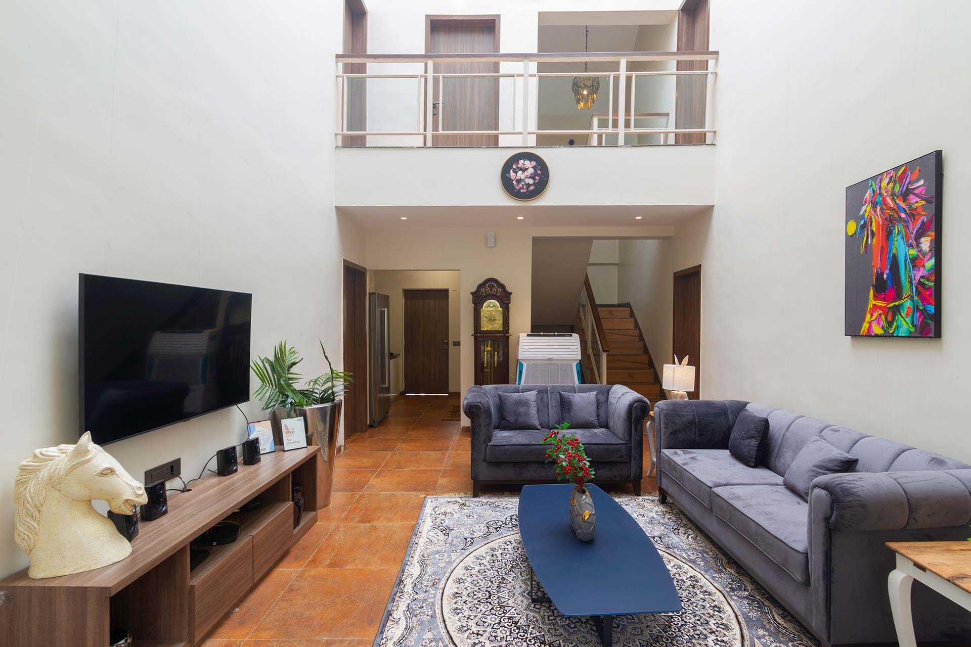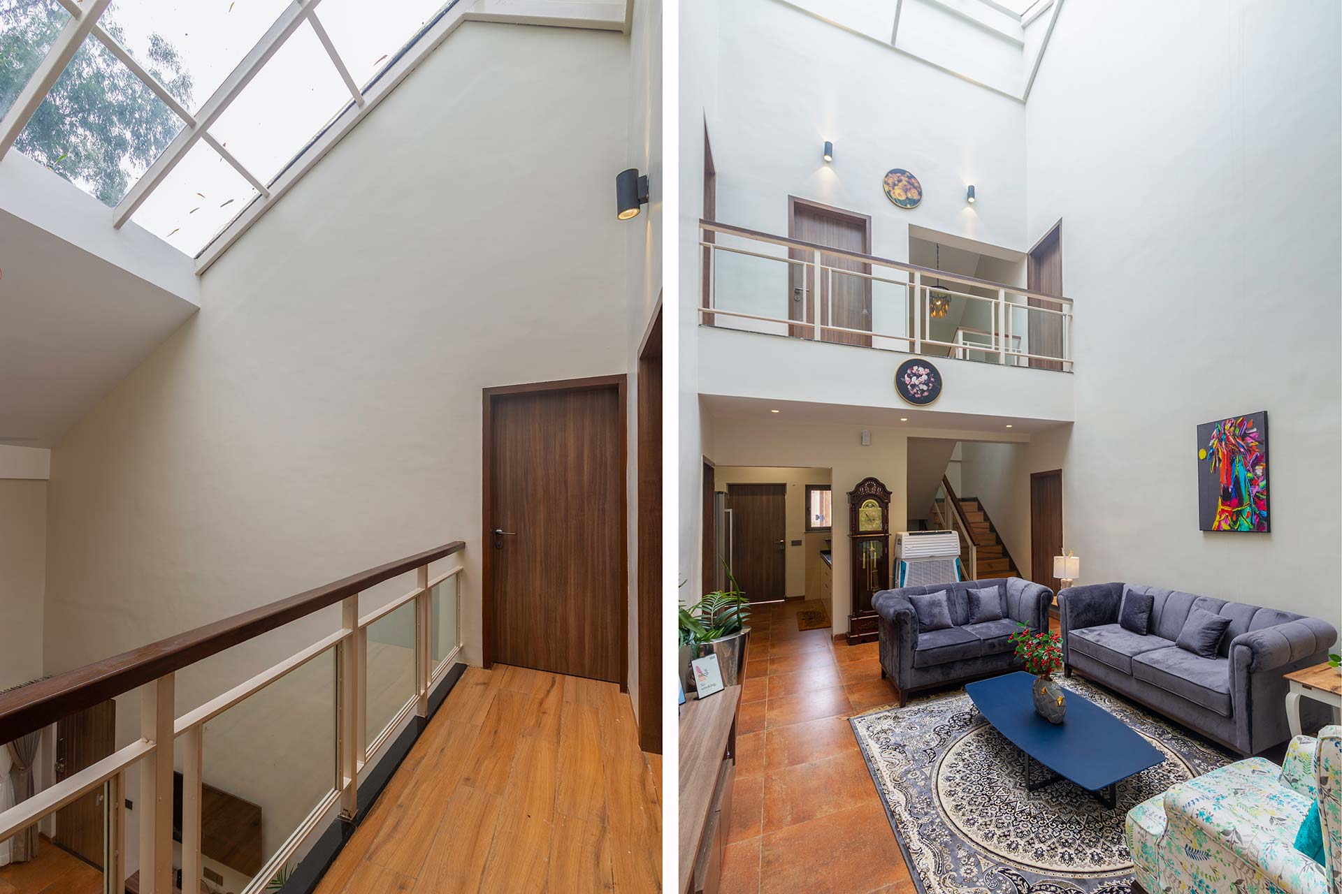 – Both the bedrooms on the first floor also feature an attached balcony overlooking the viridescent surroundings.