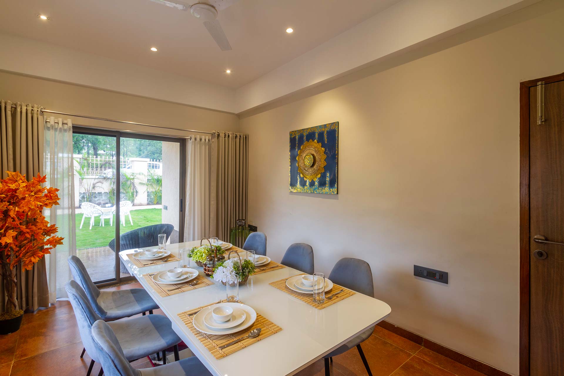 – The lawns cover an area of about 800 sq.ft. and 1400 sq.ft each. Guests can also choose to stroll along its peaceful trails or have a fun time playing a bunch of outdoor games while letting out their inner child.