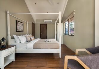– This luxe villa features a total of 3 bedrooms – 1 on the ground floor and 2 on the first floor.