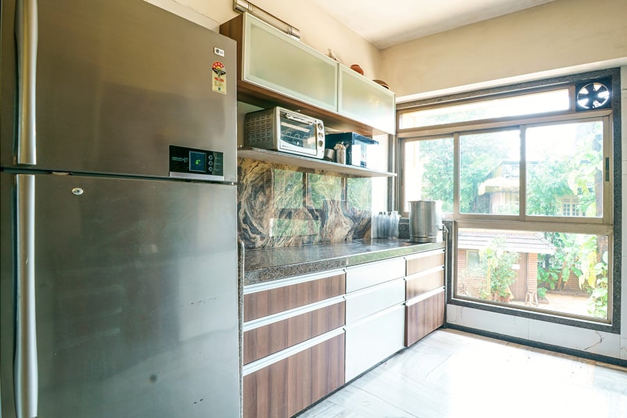 – The dining area is a part of the living room, and can seat upto 6 people comfortably.