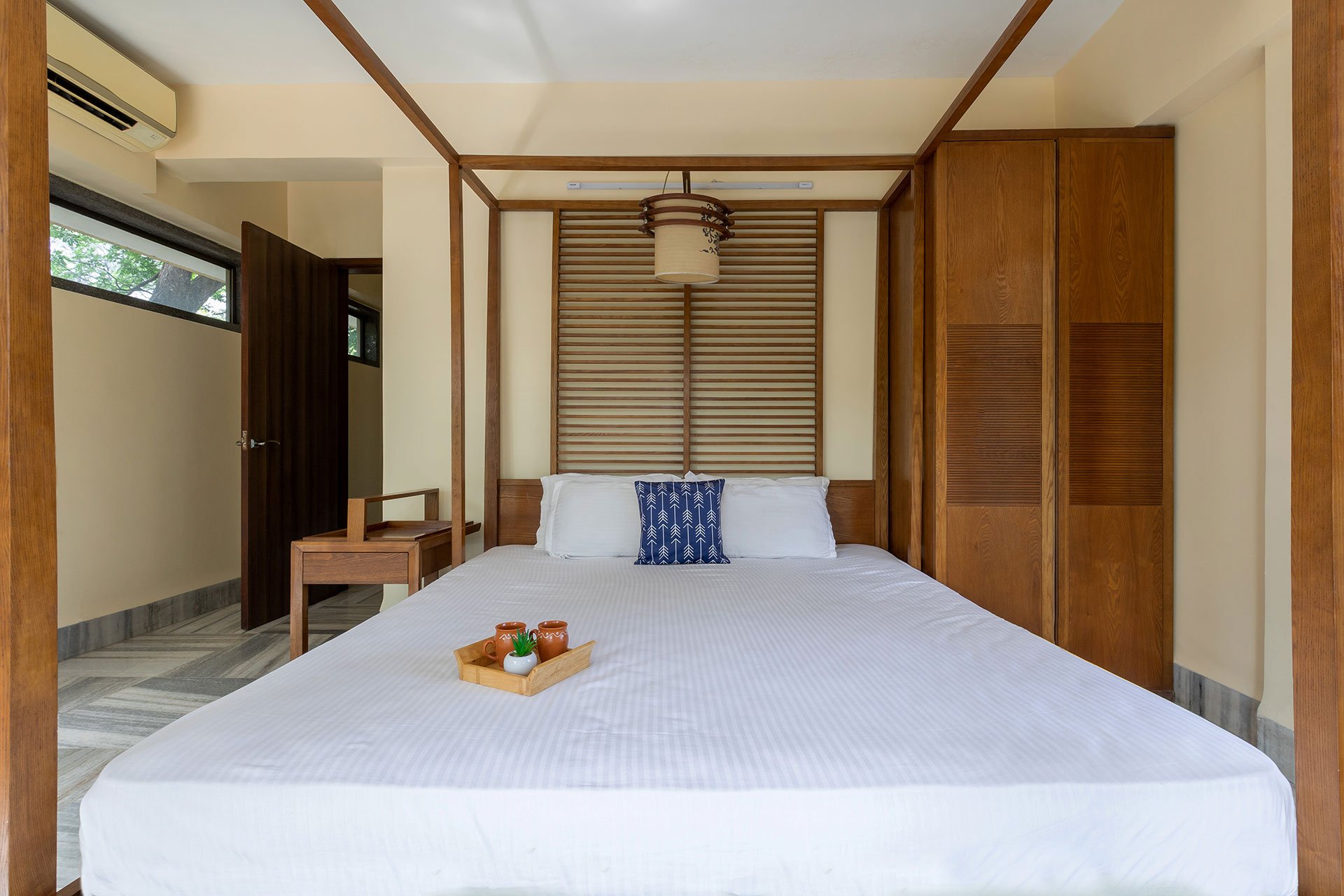 – All bedrooms offer a variety of amenities including an AC, double beds, and attached bathrooms.