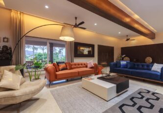 – The exteriors of this modern villa boast sprawling green lawn that covers an area of about 6000 sq. ft., along with a gazebo that offers comfortable seating for up to 12 people.