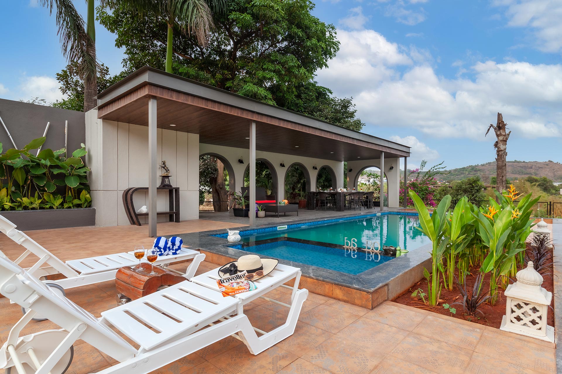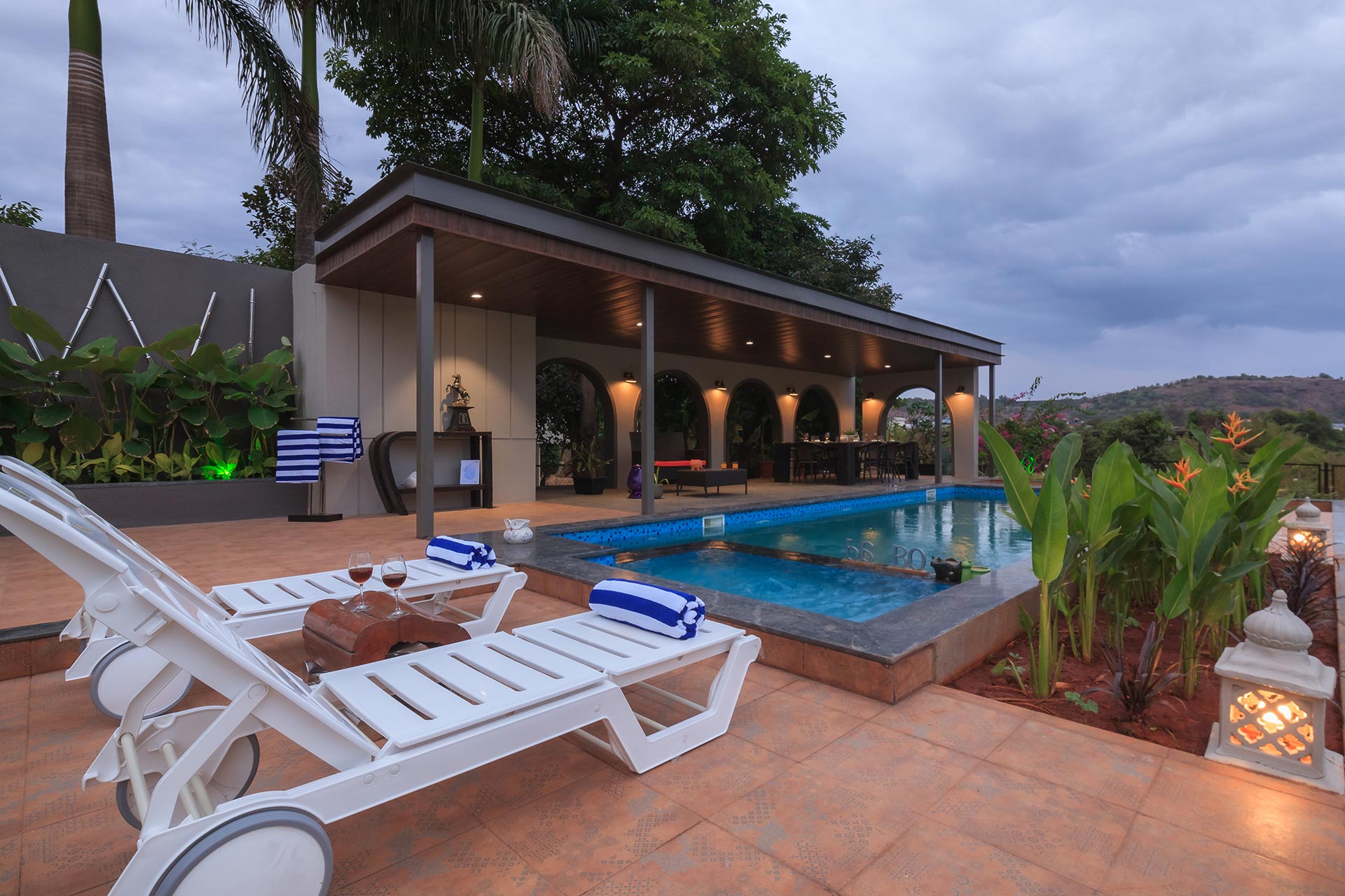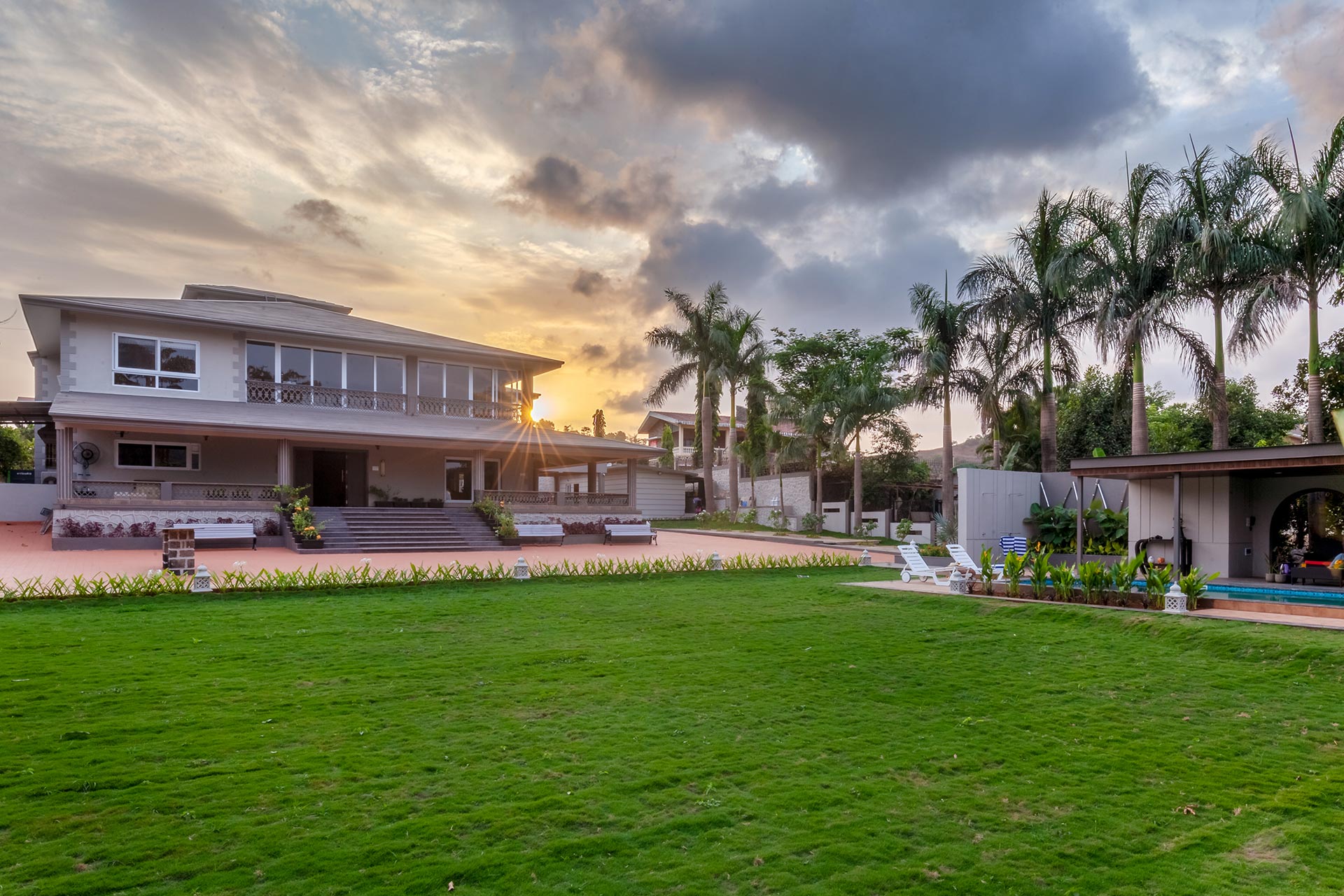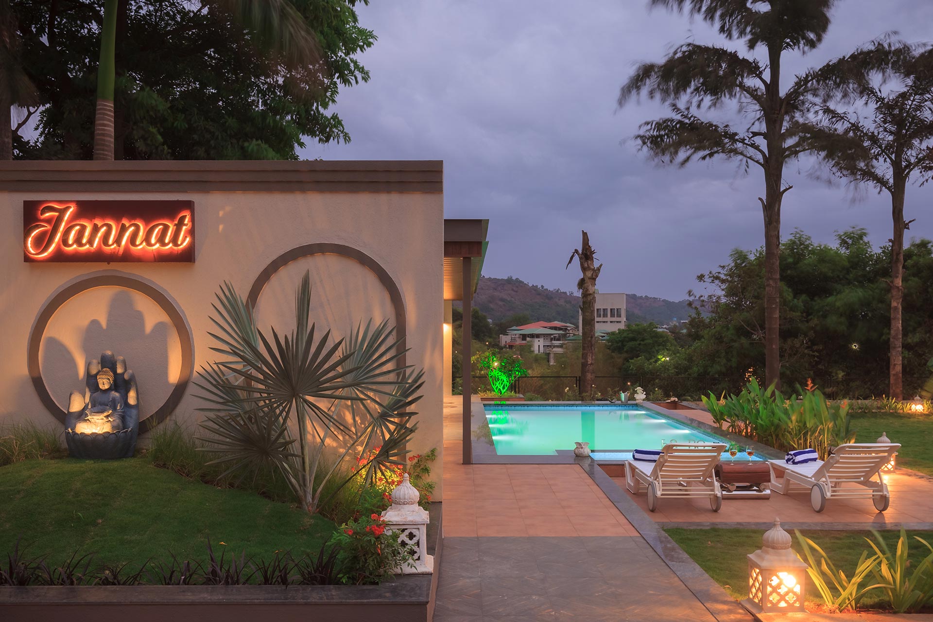 A modern masterpiece just a hop away from Mumbai with astonishing views and an awe-inspiring built, The CinCin offers a myriad of handpicked experiences for everyone. Enjoy balmy evenings at the sun deck on the first floor, with a scrumptious barbeque set up in the background. The expansive, lush lawn is perfect for events or large gatherings. Kick back and lose yourself in the first floor lounge where guests can play pool, compete at foosball or dance and party away on the dance floor! When looking to refresh and relax, pamper yourself in the luxurious jacuzzi on the first floor. In the evenings, you can sit by the quintessential bar area overlooking the pool on one side and verdency on the other.