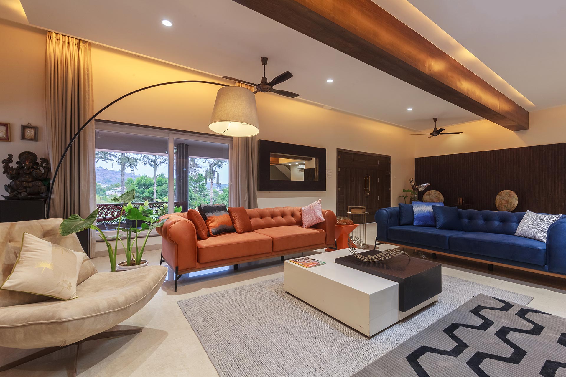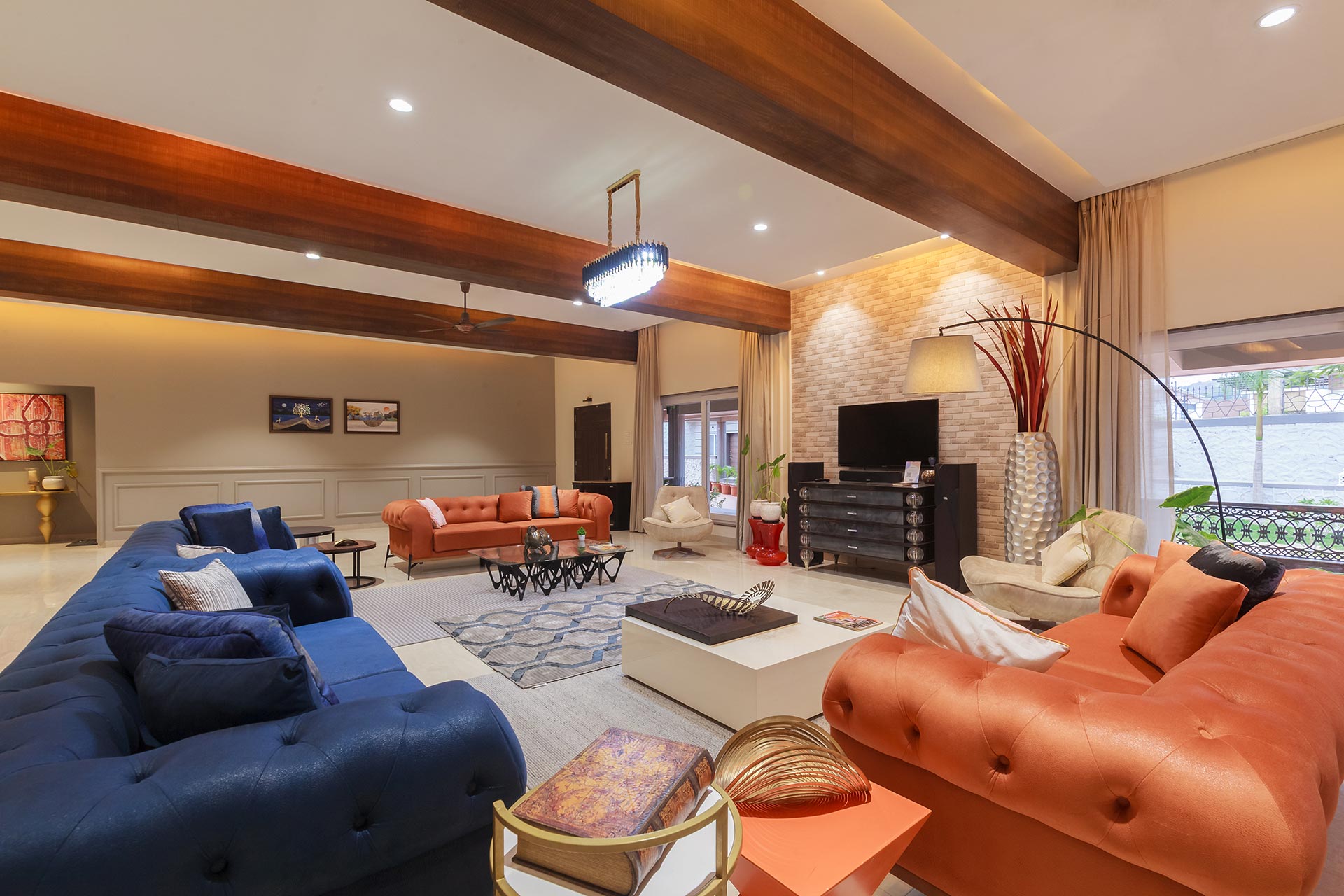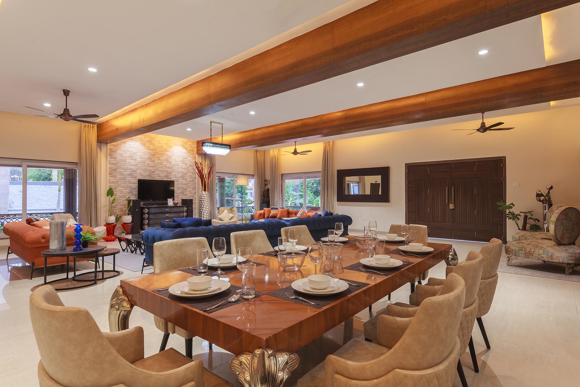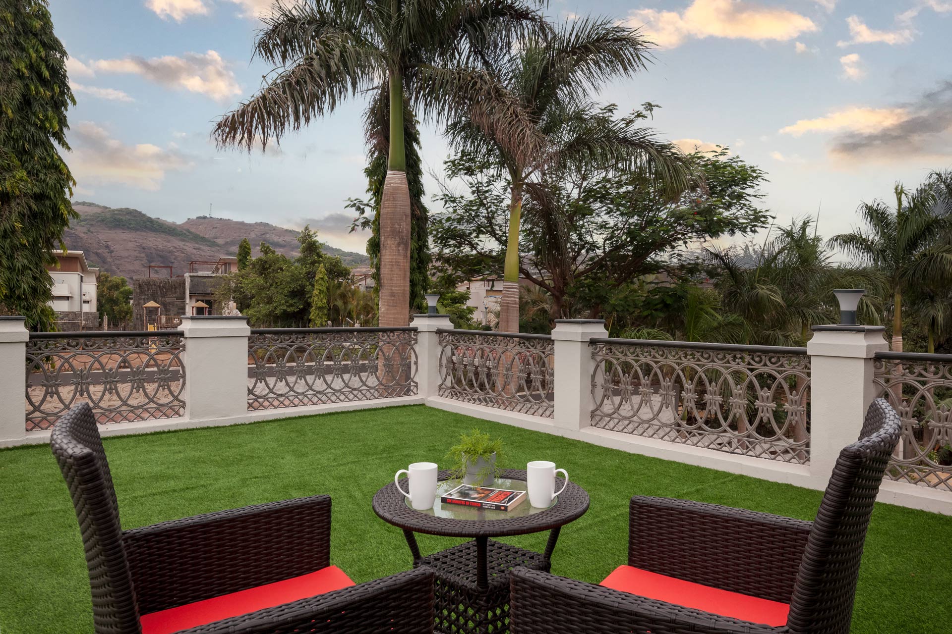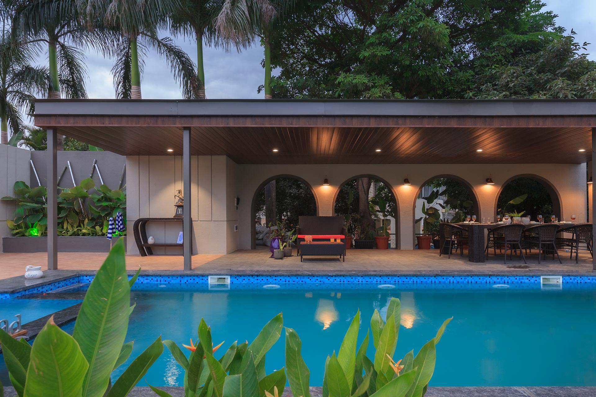 – The exteriors of this modern villa boast sprawling green lawn that covers an area of about 6000 sq. ft., along with a gazebo that offers comfortable seating for up to 12 people.